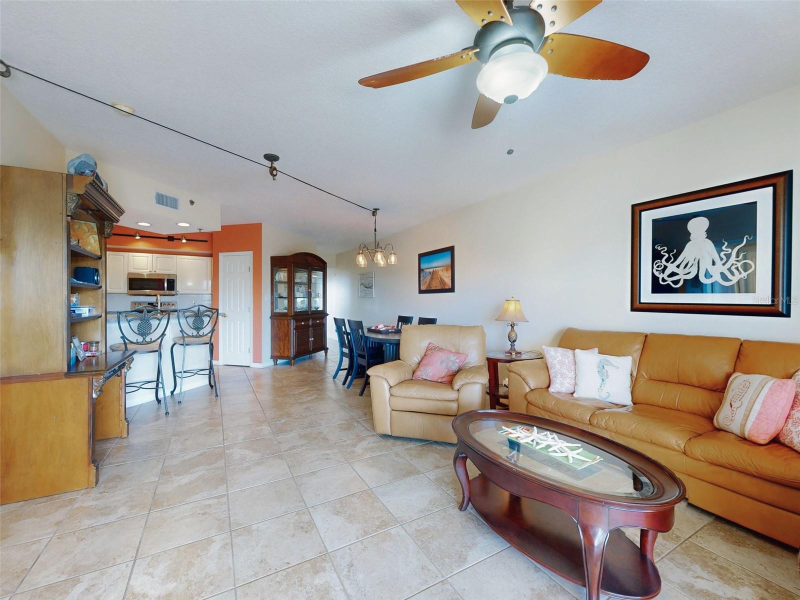 NEW PRICE - SEE IT TODAY! BEACH ACCESS!! This IMMACULATE, Furnished, Two-Bedroom, Two-Bathroom Condo in Ocean Walk is Move-In Ready! ** With the beautiful NSB beach across the street (Private Ocean Walk access) and a large tiled balcony with a park-like view of the walking trails and estuary, LIFE IS GOOD HERE!** Building 6 is located near entry gate for quick access to the beach or a short drive to the many unique NSB shops, amazing restaurants, and the Canaveral National Seashore** Building 6 boasts the lowest HOA fees in the community which include Spectrum TV & Internet, trash & water. ** In 2022 the stucco was repaired and repainted.** Roof repairs were made in 2024. All assessments for this condo have been paid.** The Large Open Floor Plan and the Comfy Furnishings in this condo will immediately feel like you are home!** The breakfast bar and large dining area provide ample space for family or guest dinners & parties.** The spacious kitchen with pantry make the chef happy with lots of cabinet and work space for meal preparation.**The laundry room with washer and dryer is near the kitchen . ** The light bright living room opens to the balcony where you enjoy fantastic daytime views, a gentle ocean breeze and the evening splendor of amazing Florida sunsets.** The oversized ensuite Primary Bedroom features a large walk-in closet, double vanities, large soaking tub, walk-in shower and slider access to the balcony.**The Second Bedroom with walk-in closet is large enough for King size bed or could also serve as an office.** Sellers have updated the AC in 2019 and the Appliances were updated in 2020. The Dining Table with 6 Chairs new in 2024 ** **This unit includes the convenience of deeded under-building garage for parking with elevator to unit. A deeded 39x58 storage closet near the entrance of 6-206 is included. ** Building 6 has a 3-day minimum rental.**The Beach is Always Yours here - simply cross the street at the Ocean Walk private access to the serene, no drive beach, featuring a convenient shower station.** Ocean Walk amenities include 2 Private Pools, 2 Club Houses, Fitness Centers, Tennis Courts, Walking Trails, Car Wash stations (great for rinsing off your beach bikes), and much more.** Information deemed accurate but not guaranteed. All measurements are approximate. Buyer responsible to verify all dimensions and any information that is pertinent to them.