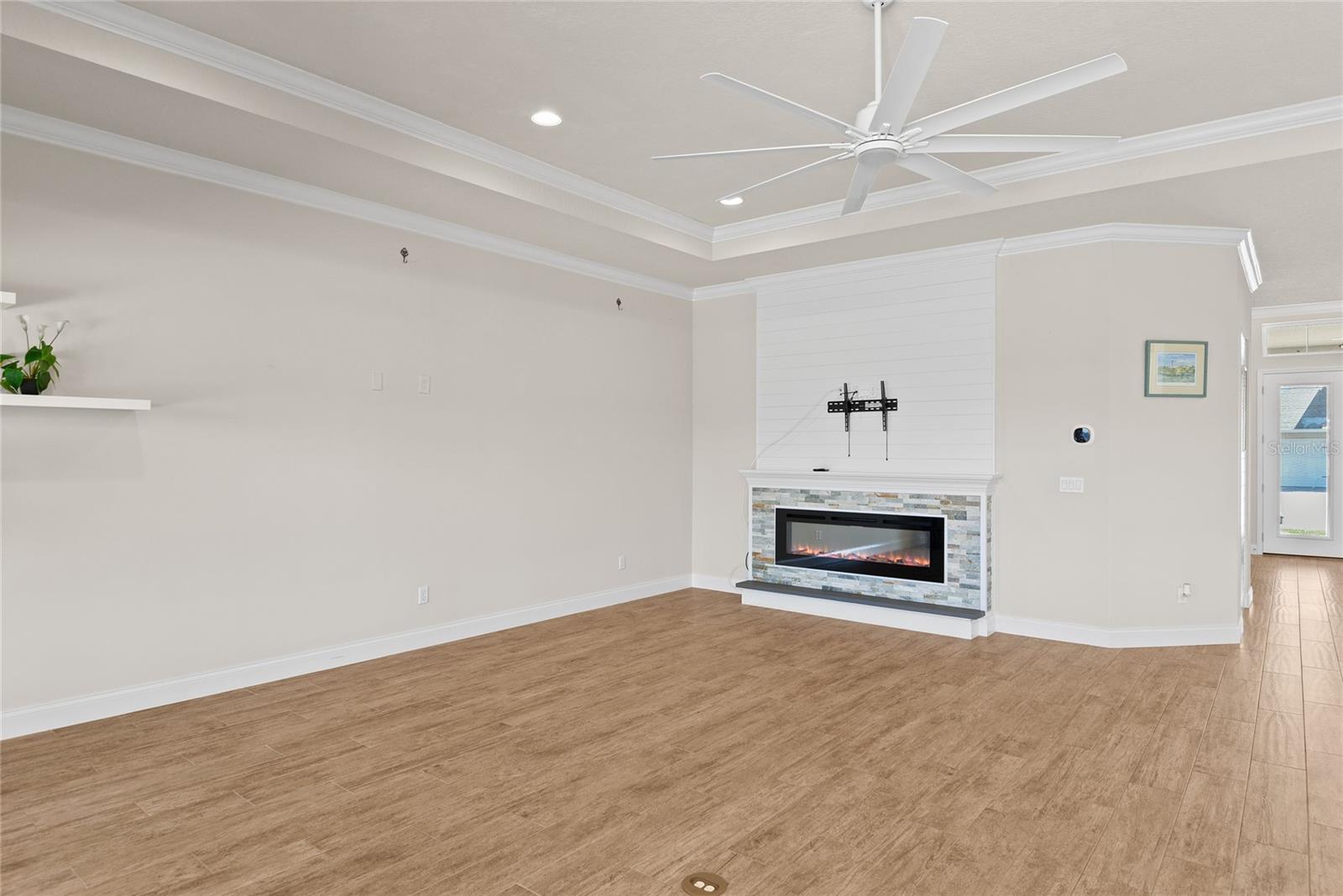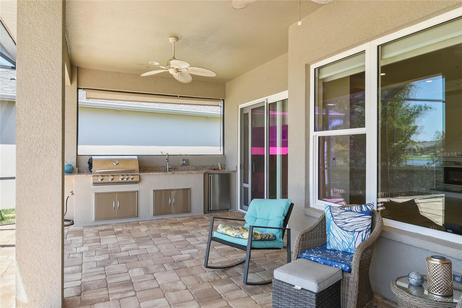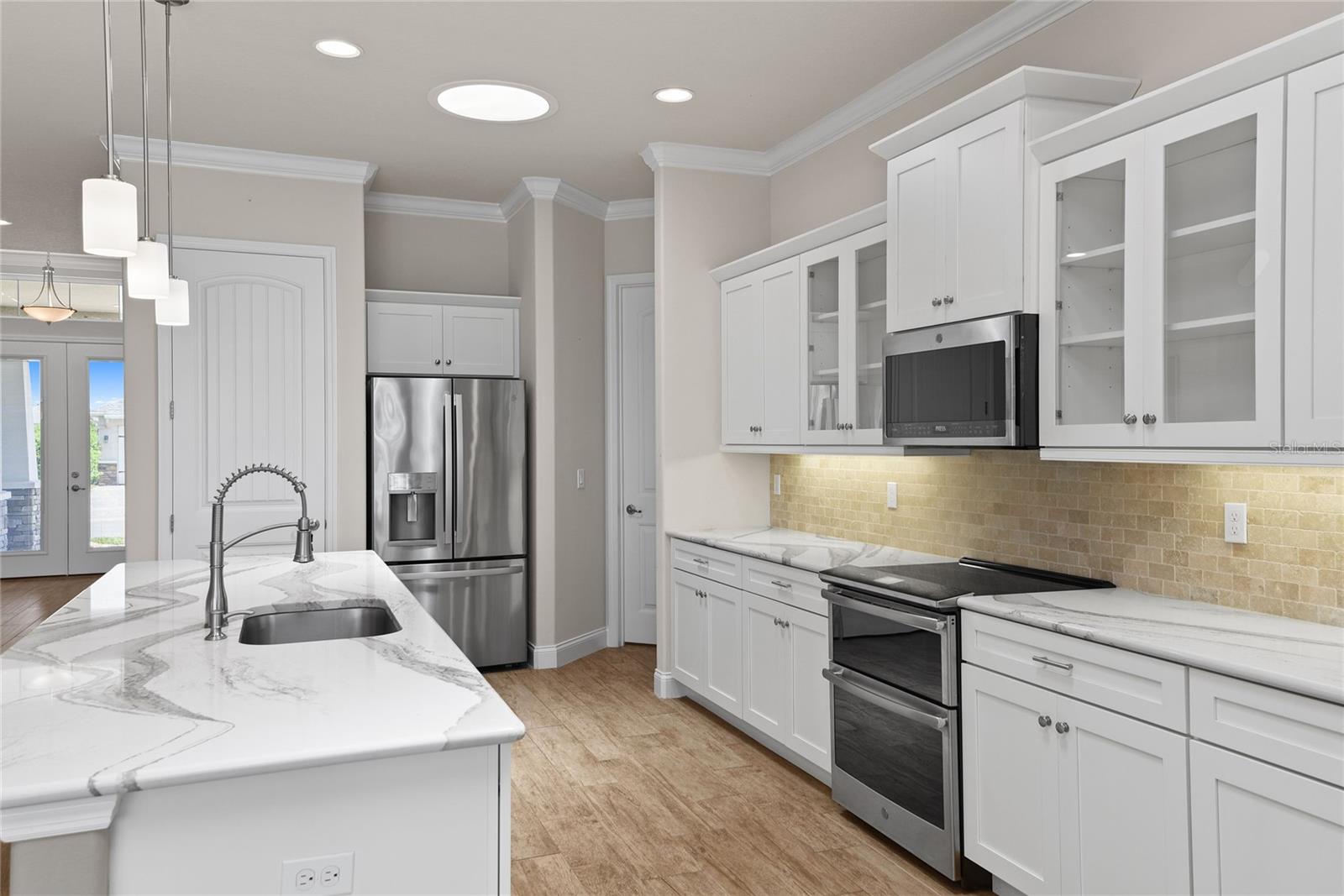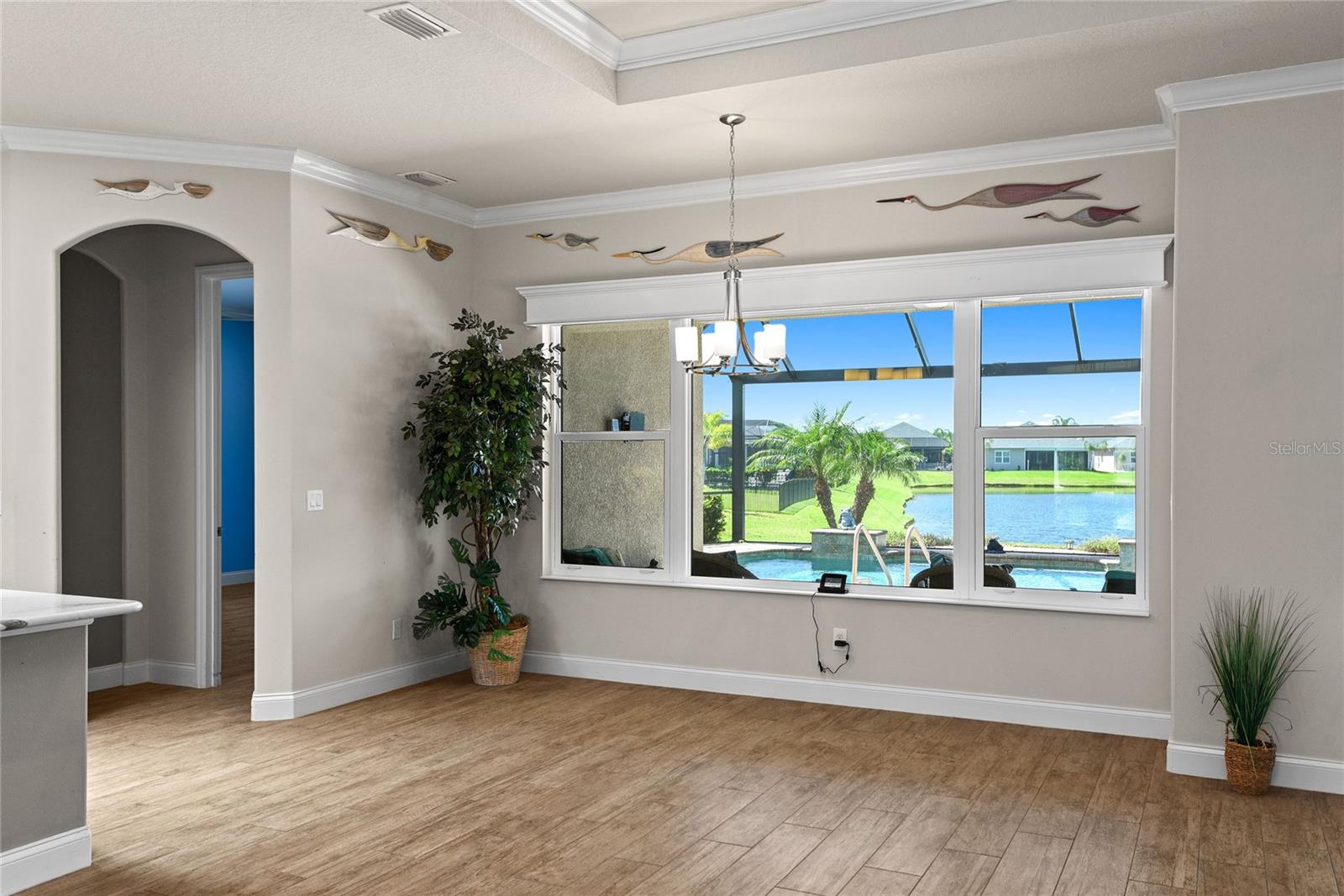 BEAUTIFUL WATERFRONT HOME IN THE PALMS AT VENETIAN BAY! This gorgeous residence features a sprawling 2,100 SF, single-story layout, with a hard to find 3-car garage! Set on nearly a ¼ acre lot, this residence offers a large, screened lanai, heated pool, and tranquil water views. The interior of the home boasts wide hallways, elevated ceilings, and a open-concept floorplan with a kitchen/great room, and split bedroom design. Wood-grain tile floors flow throughout the home and are complimented by elevated ceilings, crown moldings, plantation shutters, electric blinds, recessed lighting, and lots of natural light! The kitchen features a large island with sink, Quartz counters, stainless steel appliances, closet pantry, under cabinet lighting, and a great amount of storage. The living room/great room is open to the kitchen and features an accent wall with fireplace. Glass sliders off the great room open to the screened lanai where you’ll find panoramic views, a heated pool, and outdoor kitchen. Set at the back of the home, to optimize those water views, the primary bedroom is spacious and has a private en suite with large walk-in closet, double sink vanity, and walk-in shower. Two guest rooms, generously sized, sit at the front of the home and share a hall bath. Located in the coveted community of Venetian Bay, residences enjoy convenient access to world famous beaches, shops, and dining, as well as community amenities such as a Town Center with a spa, deli, and fitness center, as well as a resident only Beach and Swim Club. The Venetian Golf Course, an 18-hold semi-private championship course, is also located within walking or golf cart distance. This stunning residence will not last long, schedule your showing today!