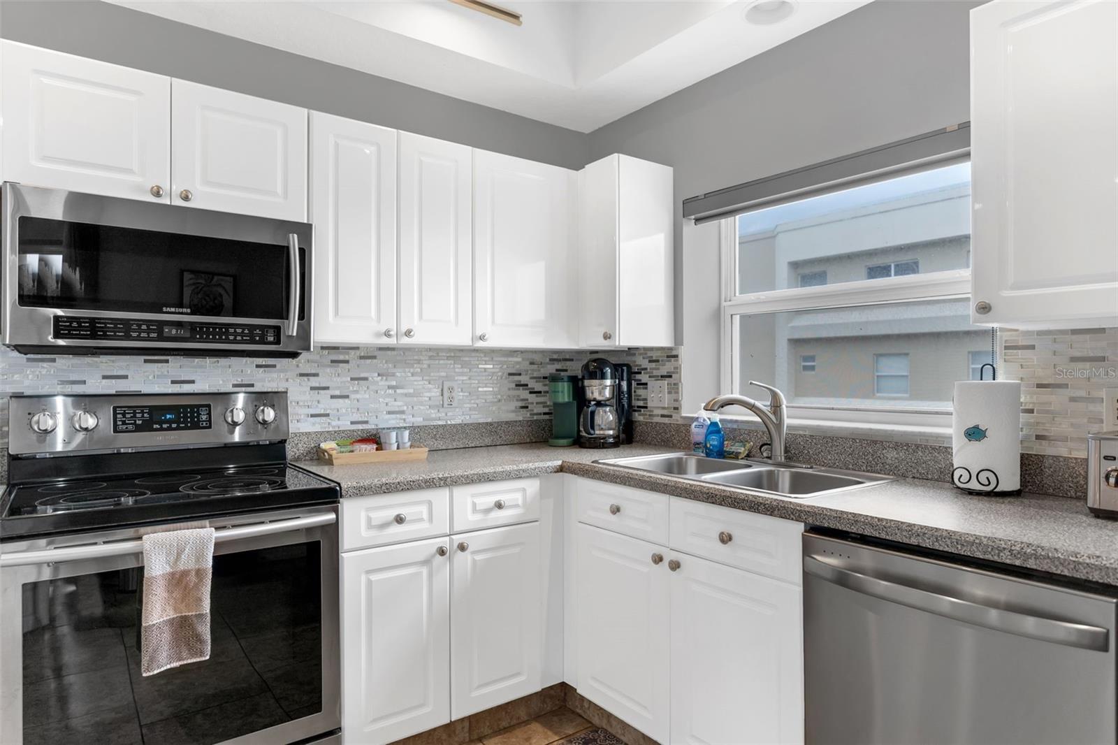 Welcome to your coastal retreat at Oceanwalk Condominiums! This beautifully maintained 3-bedroom, 2-bath condo offers the perfect blend of comfort and beach living. Located on the 5th floor, this spacious, fully furnished corner unit features two private balconies—one off the living room and another exclusively off the primary bedroom—ideal for enjoying ocean breezes and Florida sunsets. This building backs up to a lush conservation area with no rear neighbors, providing added tranquility and privacy. The open-concept layout includes tile flooring in the main areas, a modern kitchen with breakfast bar, and a generously sized primary suite complete with a sitting area and a spa-like bathroom with soaking tub and separate shower. Two additional bedrooms are perfect for guests or family, conveniently located next to a second full bathroom for added privacy. Oceanwalk is a gated, resort-style community located directly across from the no-drive area of New Smyrna Beach. Amenities include two clubhouses, two heated pools and spas, fitness centers, tennis and shuffleboard courts, nature trails, BBQ areas, and a private movie theater. Rentals are allowed, making this an excellent opportunity for a primary residence, vacation getaway, or income-producing investment. Don’t miss your chance to own a fully furnished slice of paradise in one of Florida’s most beloved beach towns!