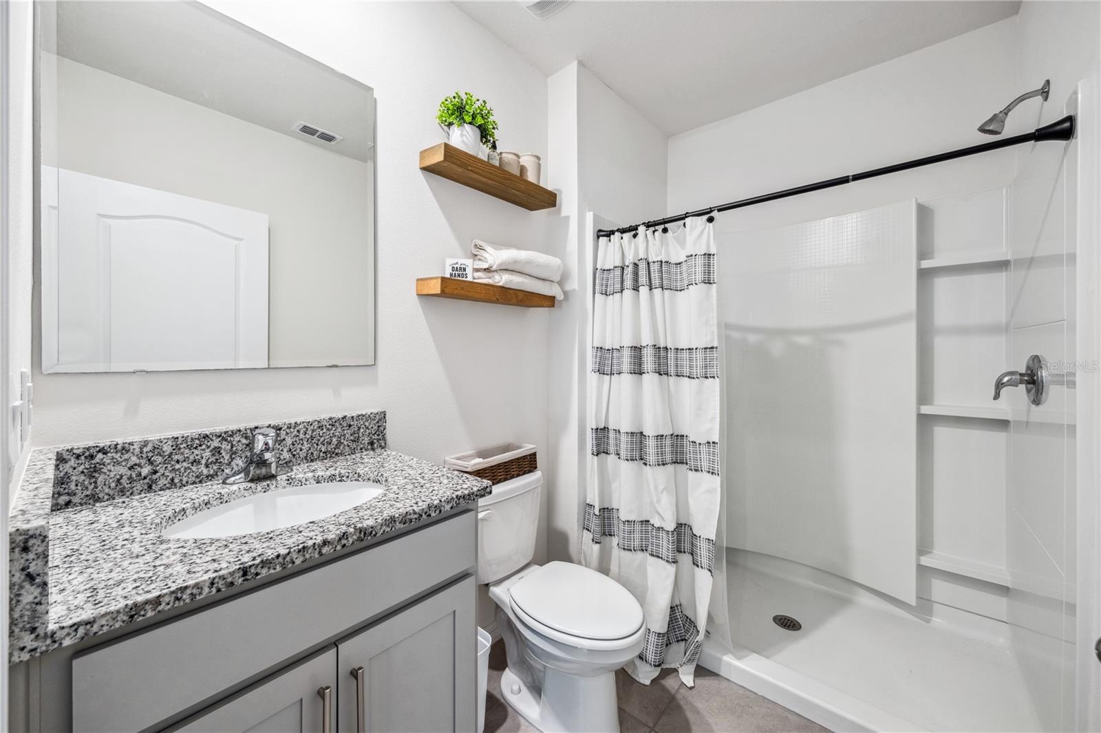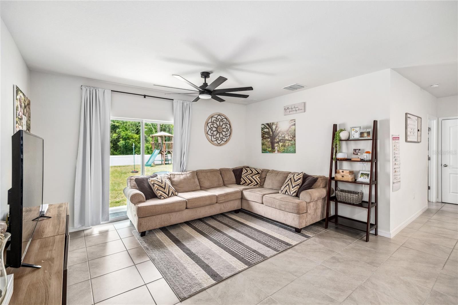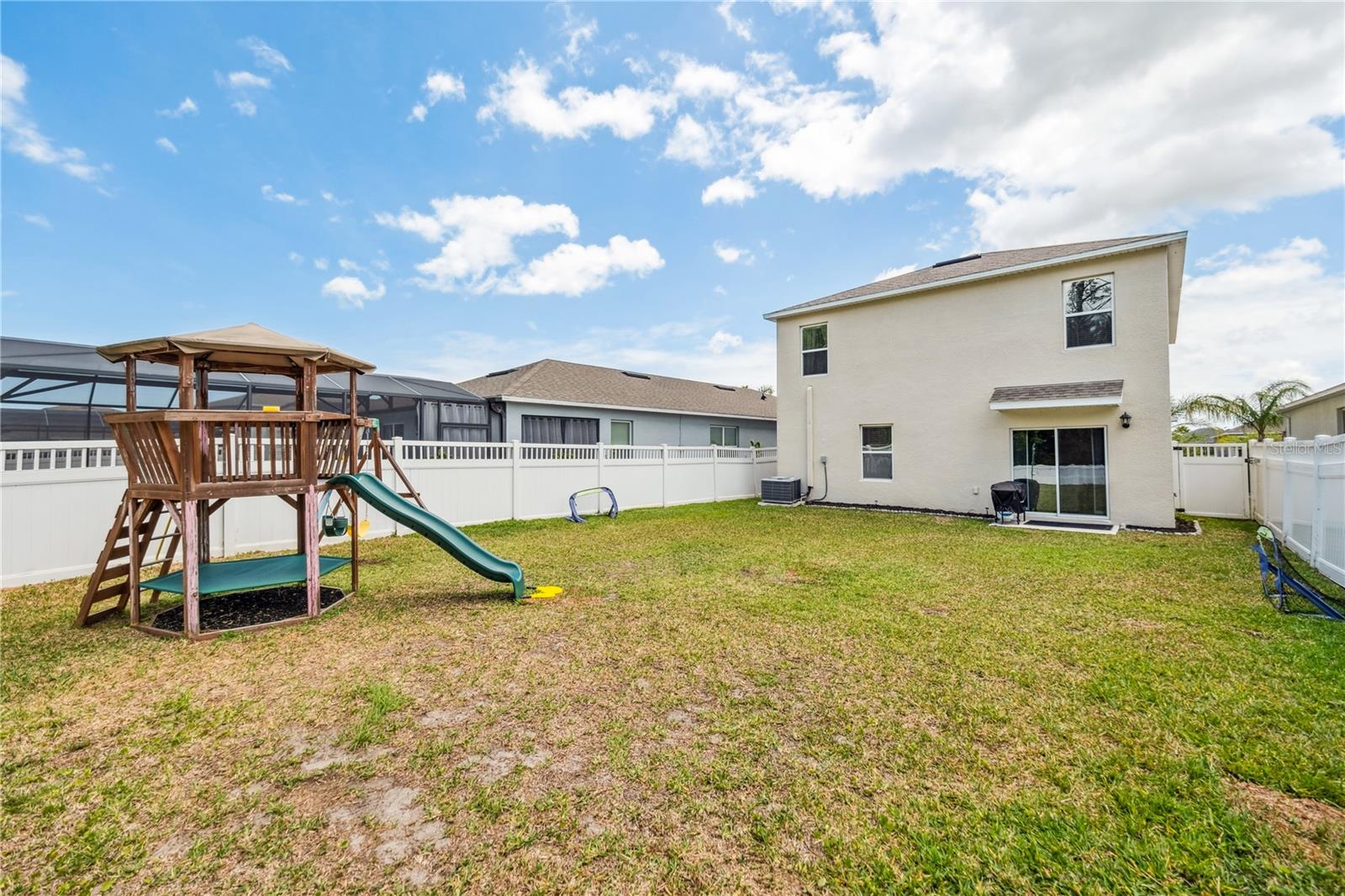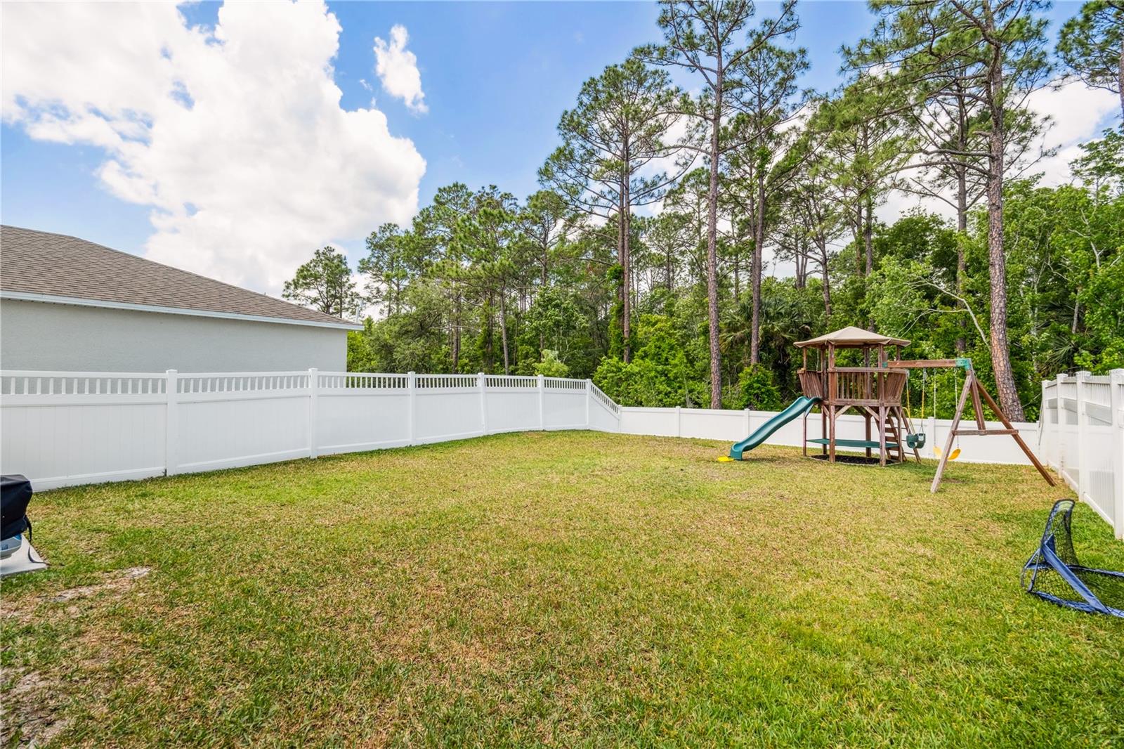 Welcome to this beautifully maintained 5-bedroom, 3-bathroom, 2-car garage concrete block home in the highly desirable Palms at Venetian Bay community of New Smyrna Beach, FL. Built in 2022, this over 2,500 sq ft two-story residence sits on the perfect lot offering a blend of modern comfort, thoughtful upgrades, and easy Florida living—just minutes from 17 miles of New Smyrna’s pristine beaches. Enjoy wooded Privavy in the backyard with no rear neighbors! Step inside to an open-concept floor plan filled with natural light and a modern coastal color palette that sets a warm and inviting tone. The main living area flows seamlessly into the dining space and kitchen, making it ideal for everyday living or entertaining. The kitchen features granite countertops, stainless steel appliances, a large island with seating, and walk-in pantry! Downstairs also includes a versatile 5th bedroom, office space or play room, perfect for guests, working from home, or a cozy den. Upstairs, the primary suite offers a spacious layout with dual walk-in closets, double vanities, and a private water closet. Three additional bedrooms, a full guest bathroom, and a laundry room complete the second floor. Venetian Bay is one of the area’s most sought-after communities, offering walking trails, a charming town center, restaurants, shops, clubhouse, and optional golf memberships.