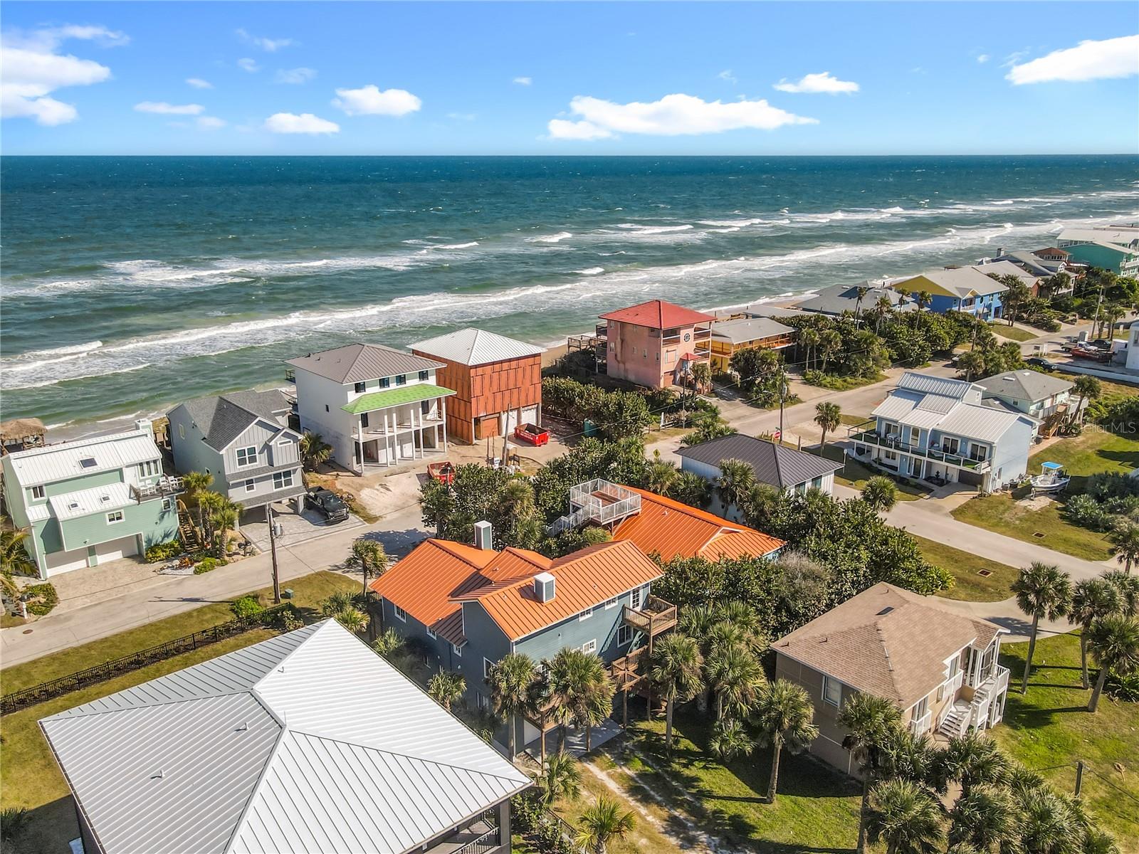 Tucked away just steps from the pristine, no-drive stretch of Bethune Beach, this exceptional captivating coastal residence offers a rare blend of privacy, versatility, and timeless coastal elegance. Set within one of New Smyrna Beach’s most coveted enclaves, this home presents a true beachside footprint with endless memories. Open and airy this beach house is designed for elevated coastal living; the residence features a thoughtfully layered floor plan that seamlessly balances open-concept living with private retreats. The main living level showcases sunlit interiors, a welcoming living room with instant fireplace, dining area, and kitchen—perfectly positioned to capture ocean breezes and partial Atlantic views. A balcony off the living space invites relaxed mornings and tranquil evenings overlooking the surrounding coastal landscape. The primary suite, perched on the upper level, is a serene sanctuary complete with its own instant fireplace—an intimate space to unwind after days spent by the sea. Expansive east- and west-facing decks provide both ocean and river views, offering spectacular sunrises and unforgettable sunsets. The ground-level private suite functions as a refined guest residence or mother-in-law apartment, complete with its own living area, kitchen, bedrooms, and bath—ideal for extended family, visiting guests, or rental income while maintaining owner privacy. This RARE double lot is 150 ft deep and can easily house a pool/recreational area! Simplicity meets elegance at this impeccable beach hideaway!