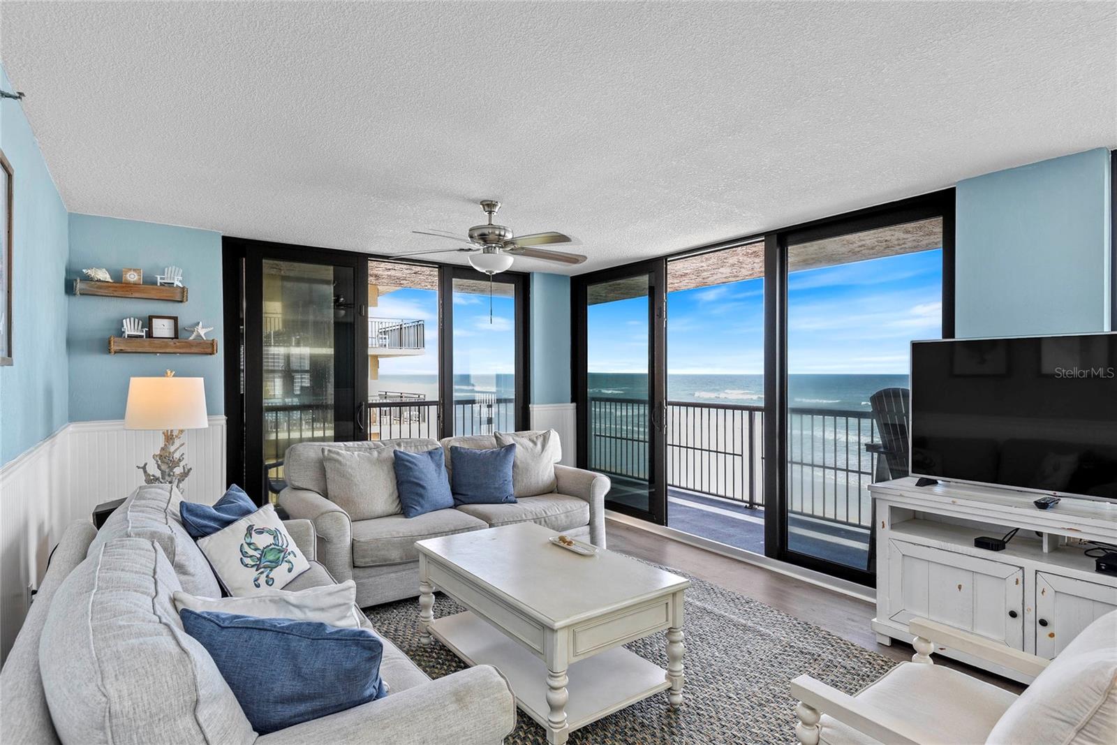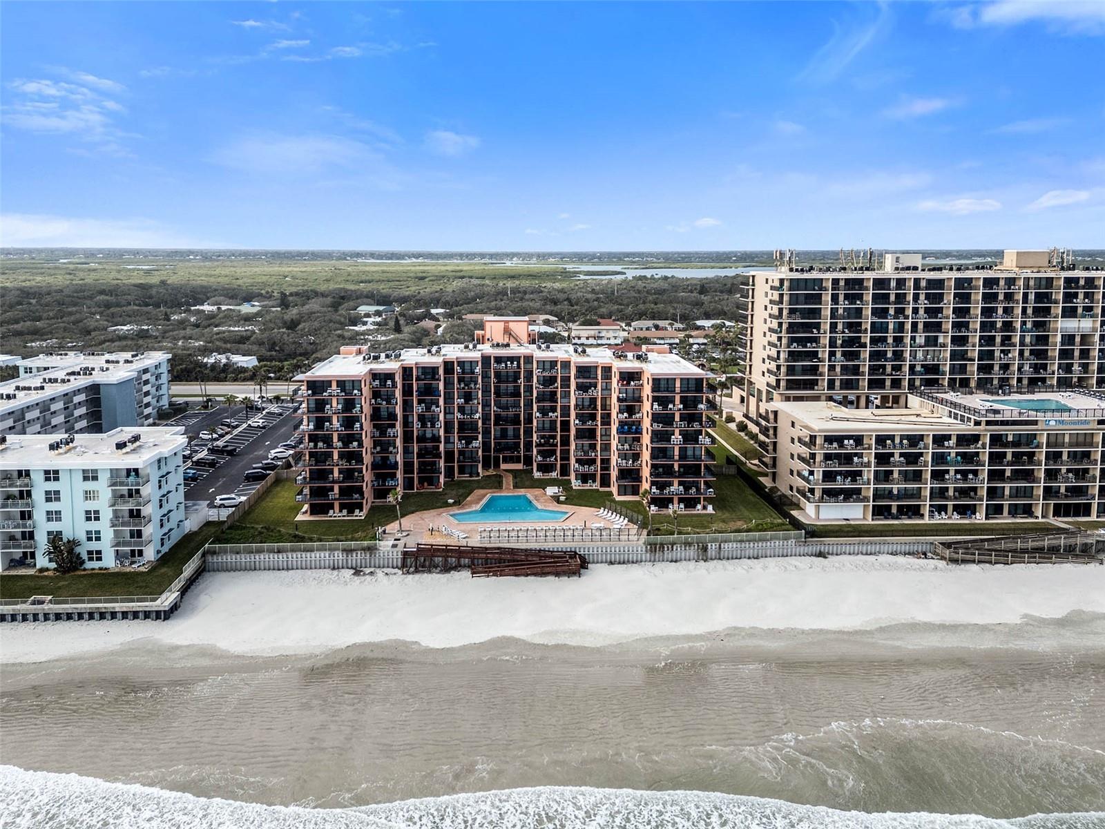 SUNRISE COMPLEX: Complete Exterior Restoration Complete; All Assessments Paid; No More Pending! Very Special Third Floor, Direct Ocean Front End Unit. Three Bedrooms and Two Full Bathrooms. 309 Offers the Perfect Perspective/Viewpoint for pool, beach and ocean views from this spacious, open floor plan residence on No Drive Beach! The restoration includes a new garage with tennis and pickle ball courts and a multi-sports court on the roof of the garage. Residence 309 offers the security of Impact Rated Sliding Glass Doors opening onto two separate balconies. The main living space/great room is approx. 35' wide, drenched with sunlight and graced with incredible beach and ocean views from kitchen, living and dining areas. The Primary Suite enjoys its own ocean view balcony and a large ensuite bathroom with dual sinks, large walk-in shower and a walk-in closet. The kitchen and bathrooms all offer solid wood cabinets and granite counter tops. The spacious kitchen includes a large island, tons of storage and stainless appliances. Adjacent to the kitchen is the ocean front great room with gracious dining and living spaces opening directly onto the wrap-around balcony. Residence 309 also offers the convenience of a laundry room and a separate "Owner's Closet" for additional storage. Each owner enjoys two parking spaces in the garage plus additional guest parking. The Ocean Front Pool and sundeck allows for easy and secure beach access. This beach home has been beautifully furnished and provides a true "turn key" opportunity to own in a complex where all the work has already been completed! Of course, all measurements are approximate and Buyer is responsible for verifying all dimensions. Check out the Virtual Tour and Photos to fully appreciate Sunrise 309.