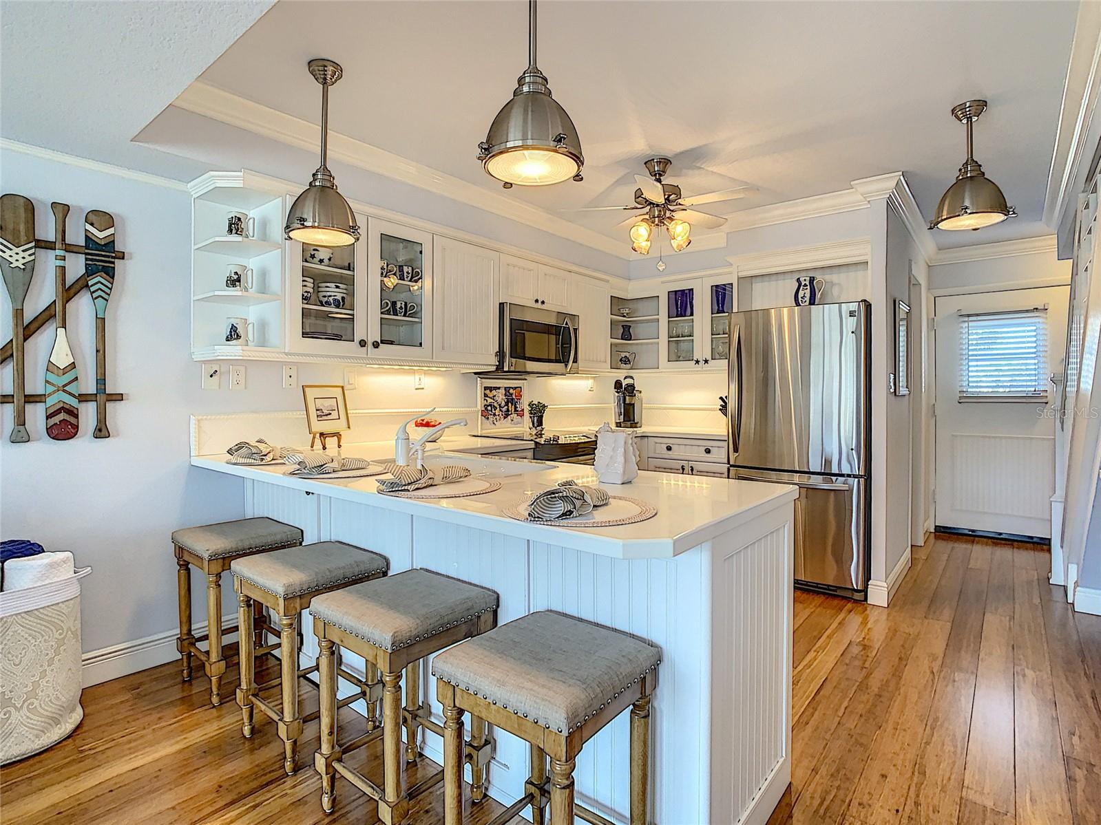 Adorable professionally remodeled townhome in the highly sought-after Surfside Condominium which is directly on the no drive beach. Pride of ownership shines throughout with only 2 prior owners. Welcome to Paradise! Residence offers two-bedrooms and two full bathrooms which are in mint condition, turnkey ready. The main level includes a spacious great room with adjacent ocean view balcony. Fully furnished, complete with updated beachy décor, just waiting for you to bring your bathing suit. Amazing ocean views from the living room, kitchen, dining area, and primary suite which also overlooks the beautiful courtyard and pools. Recent interior updates include custom wood stair banister, paint, Bamboo flooring, deep baseboards, and the ceilings lifted and insulated. All electrical and plumbing including light fixtures and fans have been updated. New AC 2019 with maintenance contract. Expanded kitchen with stainless-steel appliances including newer dishwasher and disposal. Great use of space with built in pantry off kitchen. Primary retreat is very spacious and offers a tongue and groove wall. Crown molding throughout. Plantation shutters and built in closets in both bedrooms. FULL SIZE WASHER AND DRYER located INSIDE THE UNIT on the second level along with the two bedrooms and one bath. Upstairs bath has a newer shower and enclosure. Full bath on main level of living has Honed marble walls, pebble stone flooring and granite counter tops. Updated beadboard interior doors and hardware. Bring your boat and trailer, parking is available. Lounge by the ocean front pool and you won’t miss a sunrise! Clubroom, shuffleboard and private storage cage. Note: Sellers have 3 month renters (January - March) who would like to continue renting, so you have "snowbird" rental income already in place. Located just four miles to the Canaveral National Seashore. Exterior of building recently completed $1.7M renovation in 2021.