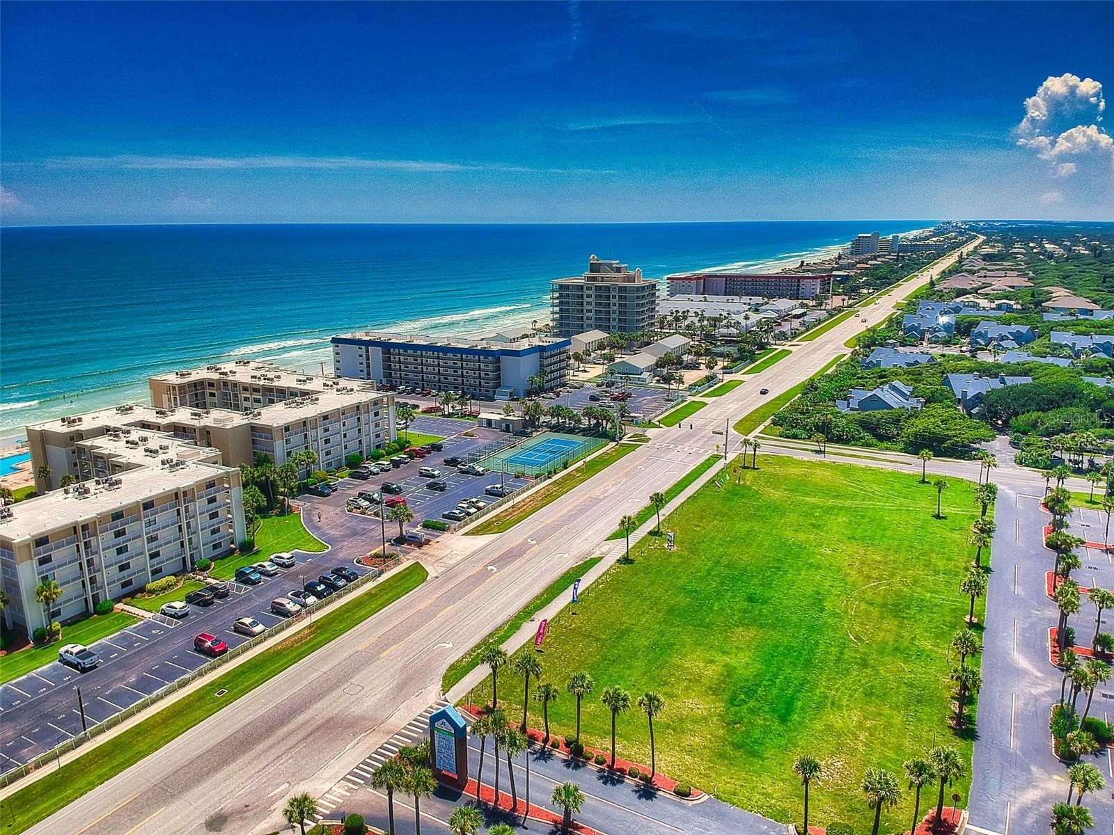 Resort style living awaits you in this cozy 2/2.5 Townhome just across from the sparkling sands of New Smyrna Beach. Located within the beachside community of Bahamian Club where you can enjoy tennis, pickleball, community pool and clubhouse OR just across the street, take in the salt air and sunny shores of the Atlantic Ocean. Featuring a split-level layout, the second story is home to the 2nd full bath, the master suite w/full bath, and guest room, each with access to a cozy balcony where you can bask in warm salt air from the Ocean or revel in romantic sunsets on the Indian River horizon while the main floor features the easy to work in kitchen, dining area, half bath and living areas including a cozy screened in porch with access from the dining area or living room, ideal for entertaining or relaxing after a fun-in-the sun adventure packed day. Zoned for short term rentals, this opens up a multitude of ownership options including full time, part time, or vacation with income opportunity. So, Whether you're lounging by the pool, reading a book in your enclosed front patio, strolling along the beach, or exploring the vibrant local scene of Flagler Ave or historical Canal St, there's never a shortage of things to do, see or indulge in.