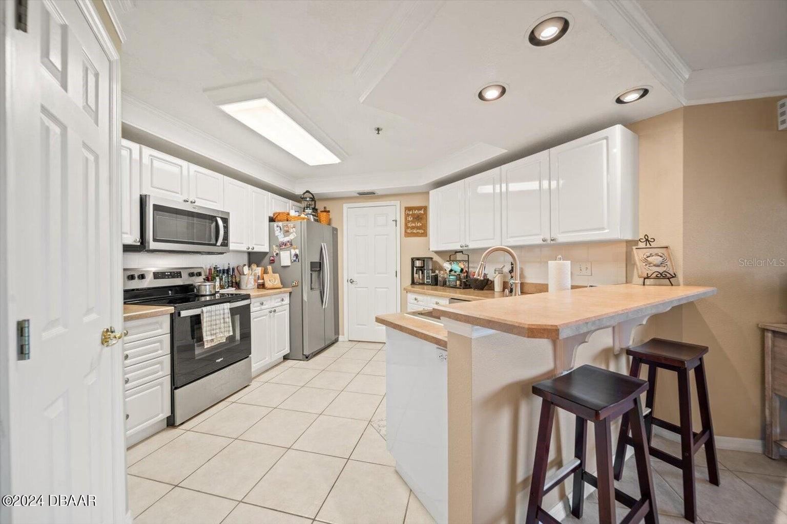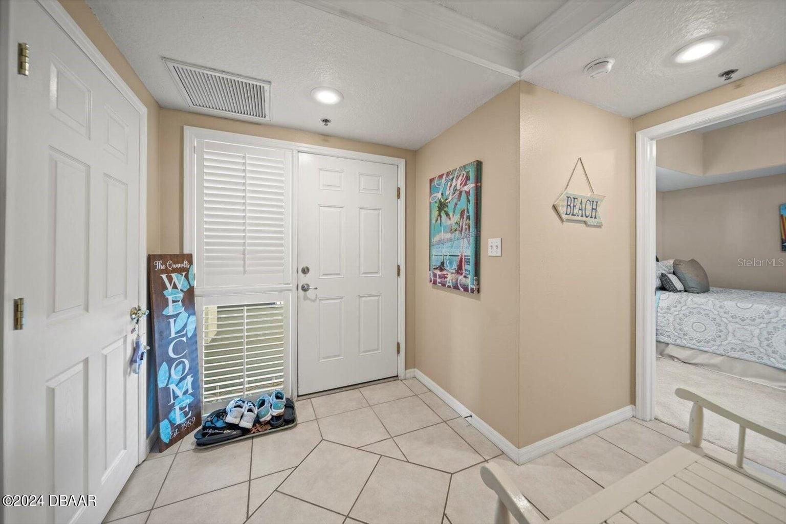 Welcome to your coastal haven at OceanWalk! This exquisite 2-bedroom, 2-bath condo effortlessly combines modern comfort with beachside serenity. As you step inside, the open layout welcomes you, with the kitchen seamlessly connecting to the dining room and living room, creating a perfect space for both relaxation and entertaining. The guest bedroom and bath at the front of the unit offer privacy and convenience for visitors, while the master bedroom towards the back provides a tranquil retreat. The primary suite comes complete with its own access to the balcony. Pamper yourself in the en-suite bathroom and revel in the convenience of ample walk-in closet space. The kitchen is a chef's delight, boasting ample white cabinetry and new stainless appliances. This well-appointed space is perfect for culinary enthusiasts and casual cooks alike. Step onto the screened balcony and enjoy views of the preservation area, offering a peaceful and private outdoor space. OceanWalk condos are renowned for their exceptional amenities, and this unit is no exception. This community includes a private walkover to the pristine, no-drive beach, ensuring uncrowded shores with no public beach parking nearby. Enjoy two pools, two clubhouses, tennis courts, basketball courts, fitness center, and a tree-covered walk along the Mosquito Lagoon for activities such as paddleboarding, kayaking, fishing, and surfing - all just across the street. The coastal paradise of OceanWalk is not only beautiful but also quiet, gated, and super secure, with dedicated security providing peace of mind. Whether you're seeking a permanent residence, a vacation getaway, or an investment opportunity, this condo is the perfect fit. Embrace the added bonus of being short-term rental friendly, opening the door to potential income while not in use. Being sold mostly furnished. All information taken from the tax record, and while deemed reliable, cannot be guaranteed!