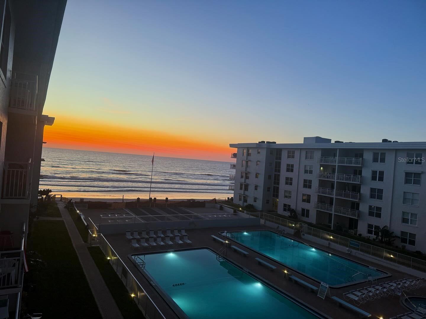 This lovely two-bedroom, two-bathroom ocean view condo overlooking the two pools of Sea Coast Gardens 2 is waiting for you. Located directly on the no drive area of the beach, minutes from shopping and restaurants! This fully furnished condo is turn key, just bring your bathing suits and clothes. Large primary bedroom opens to a private balcony with an ocean view. 2 elevators on each floor, assigned parking and locked exterior storage that's located just across the hall for added convenience. The inside storage room can be used as a pantry or storage for beach chairs etc. Recreation area includes 2 large pools,2 kiddie pools, shuffleboard courts, clubhouse and a sun deck overlooking the ocean with access to the no drive beach. Enjoy this unit as a second home or an income producing property. Recent upgrades at Sea Coast Gardens II condominium, includes a new seawall in 2024, and roof and concrete restoration work completed in 2022 add to the property's value and stability.