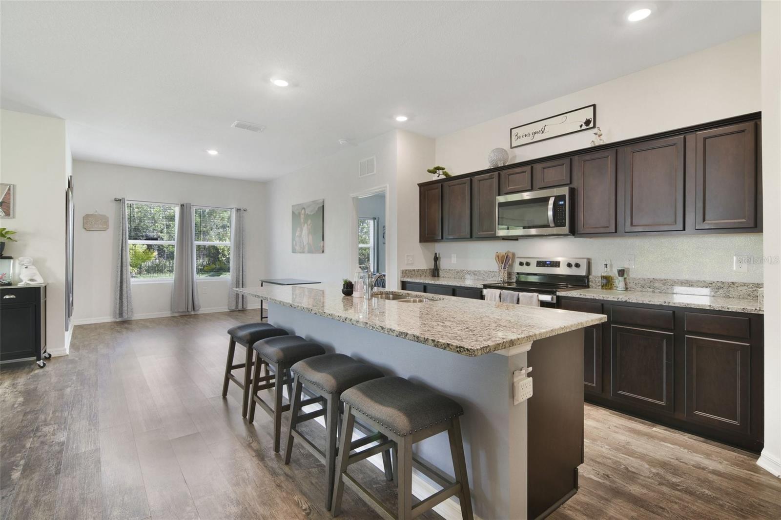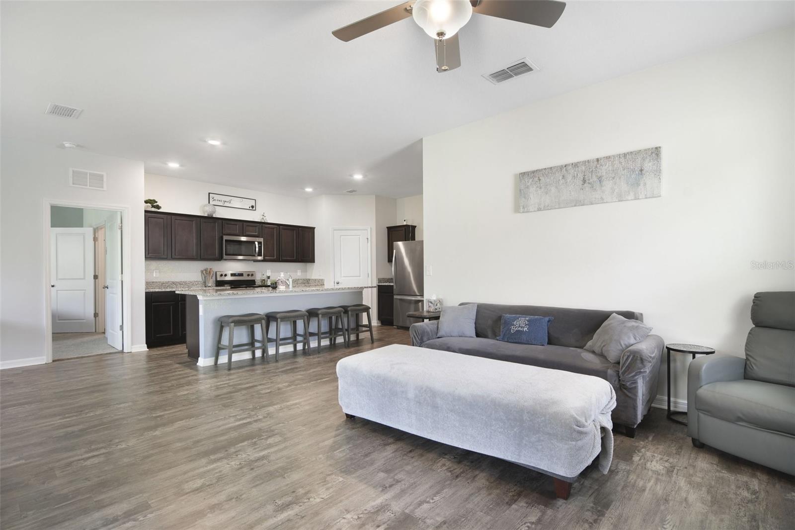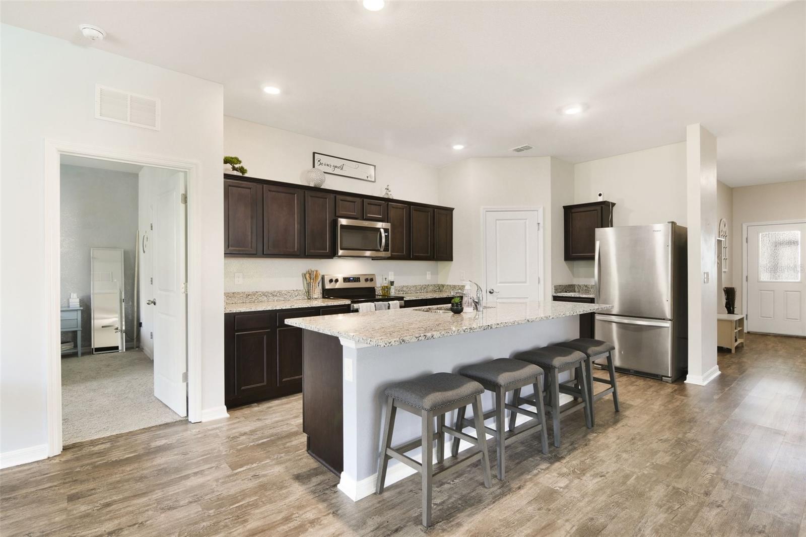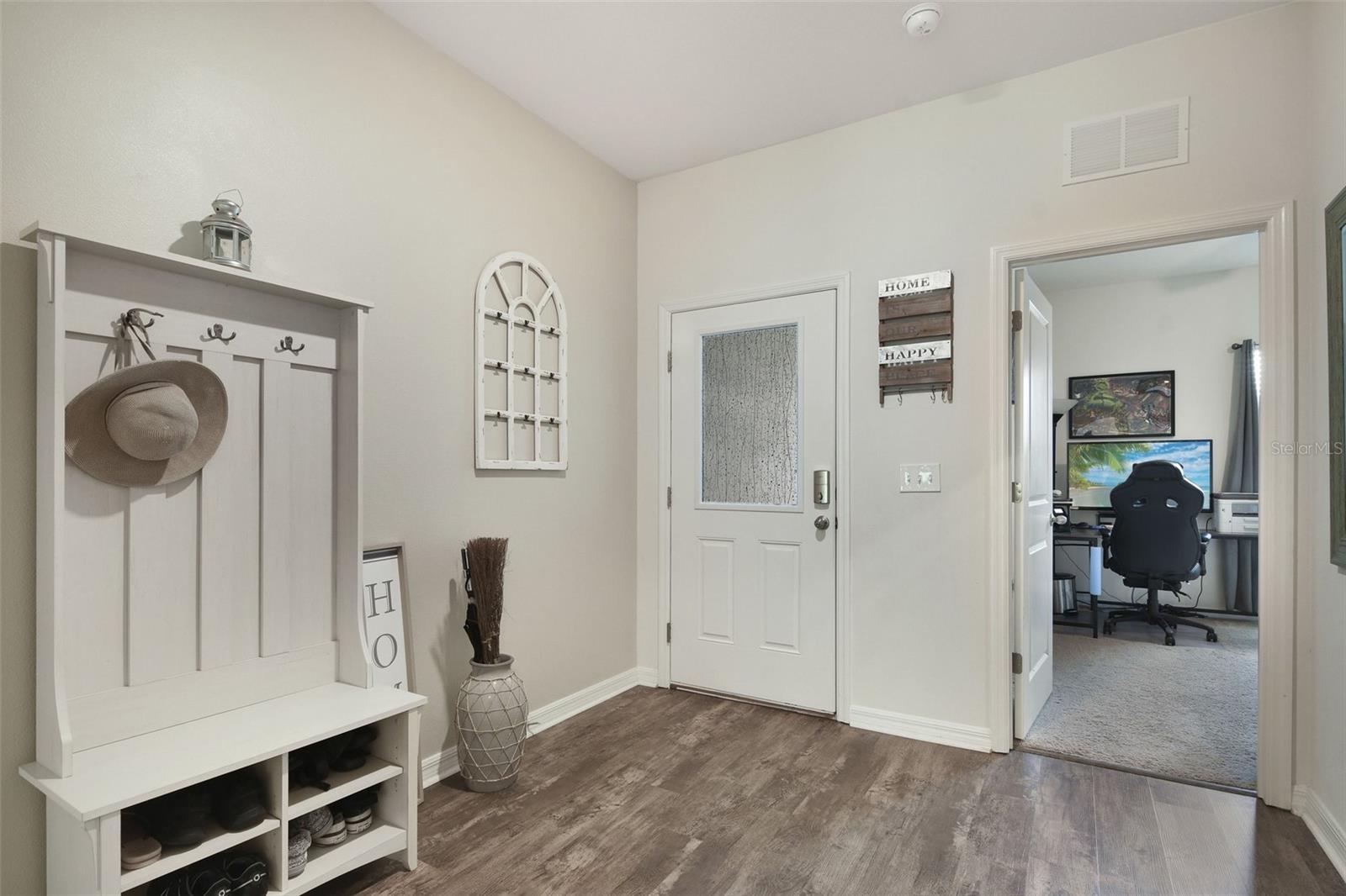 This 4 bedroom, 2 bath home was built by Starlight homes in the Coastal Woods subdivision in 2021. Upon entering you will notice the large foyer, split floorplan with beautiful vinyl plank floors throughout the main living areas. The kitchen will be admired by the chef of the home offering an open concept for entertaining, stainless-steel appliances, granite countertops, 9 ft island, walk-in pantry and plenty of cabinets for storage. The front and back porch are screened in, fenced back yard that backs up to the lush FL preserves ensuring privacy. There is an HOA maintained community pool, park and pickle ball court for your pleasure (turn right from Stowers, turn right on Blue Shores way and you will see the pool) Roof, AC, Water heater (original 2021), Rainsoft water softener (installed 2021), Wyze Security system. Coastal Woods is close to shopping, amazing restaurants, and only 20 minutes from the beach. Call to schedule a showing today!!