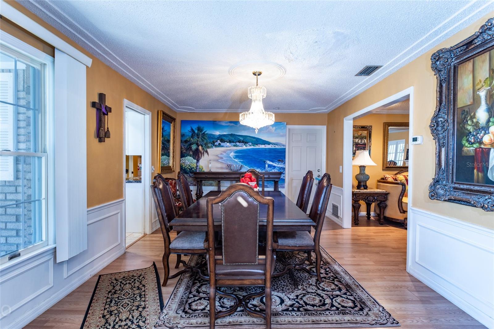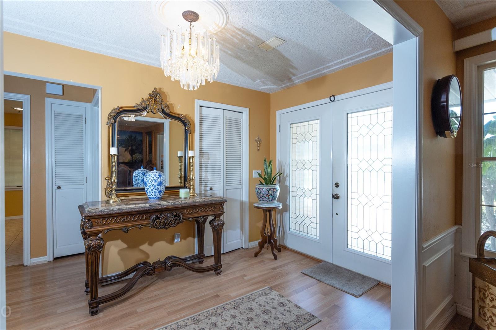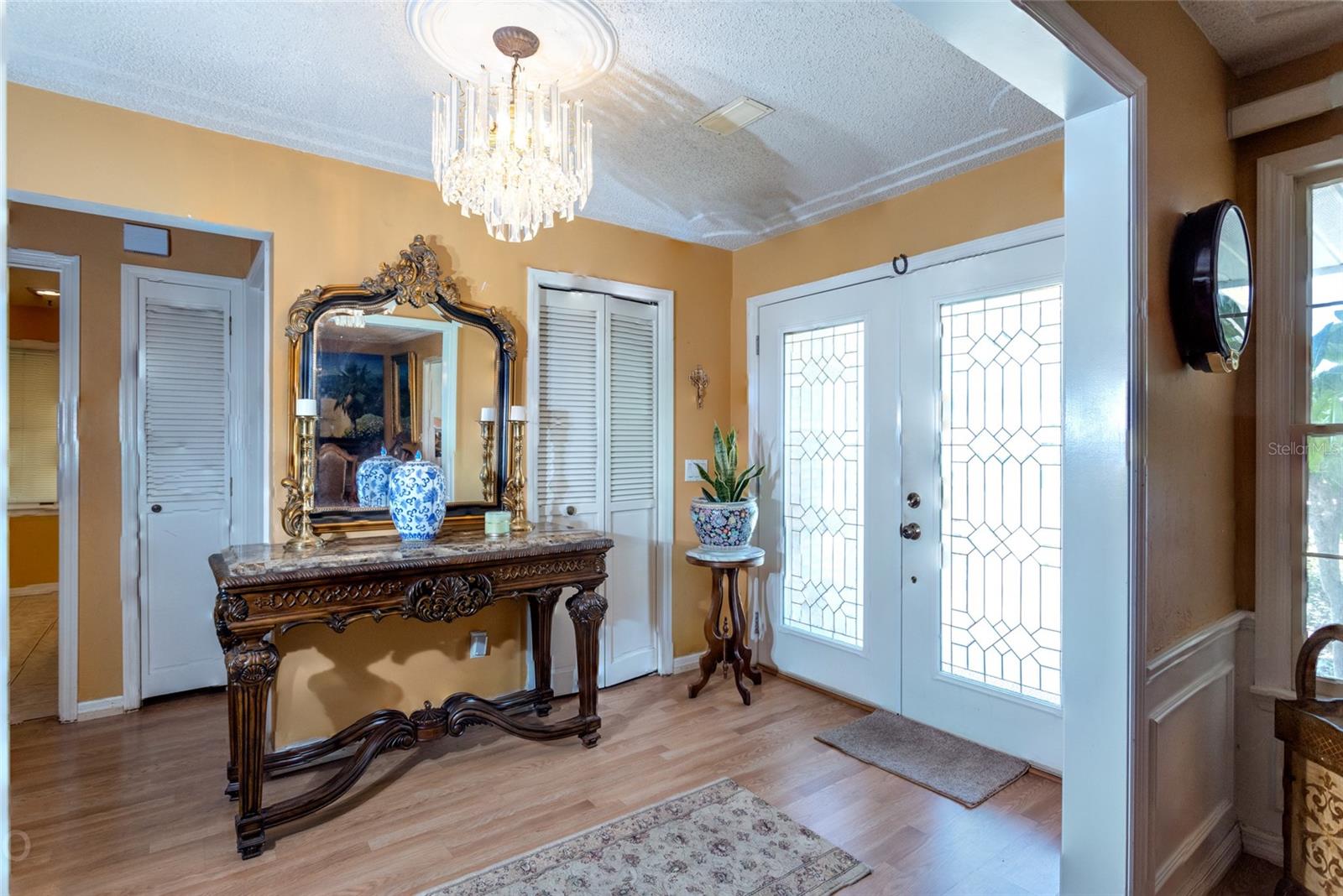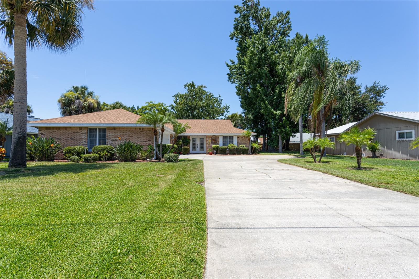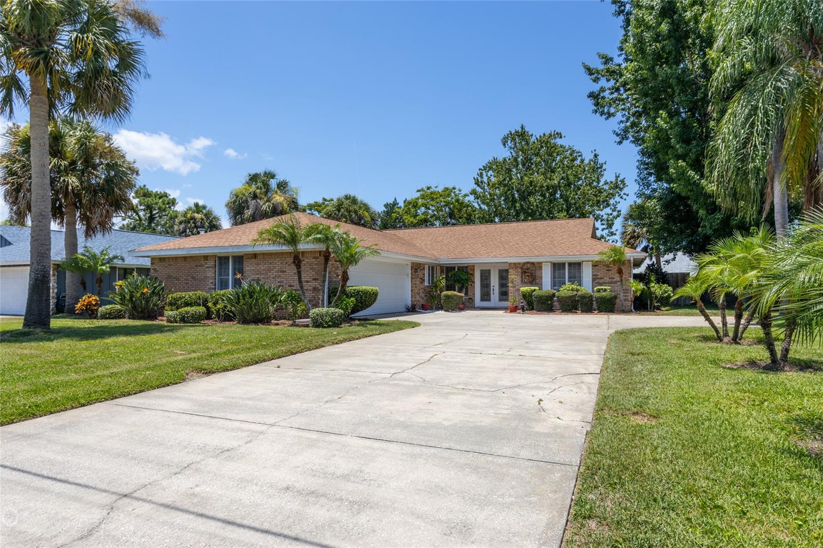 Beautiful home for an entertaining lifestyle! Sought after excellent location between two golf courses, minutes to the beach, river, downtown restaurants and shopping, Highway 44 and I95. No HOA. Home sits on an oversized lot with a private rear view. Enter the foyer and you are welcomed by the formal dining room on the left and a formal living room straight ahead. Large wood burning fireplace in the living room. Master suite with tray ceilings and an ensuite bathroom, a large soaking tub, a walk-in shower, and a toilet behind a private wall. Large walk-in closet and linen closet for storage. Room for two chefs in the kitchen, adjacent to convenient laundry room and half bath. Garage off the kitchen for ease with groceries; split large bedrooms. French double doors leading to spacious Florida room surrounded by tropical foliage in the back yard. Roof 2021; A/C 2021