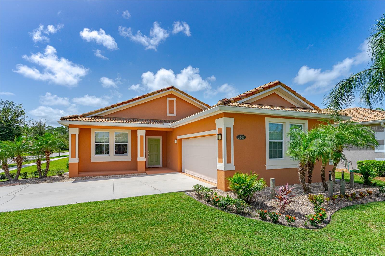 Welcome to your dream home in the heart of Venetian Bay. This 3-bedroom, 2.5-bathroom home, built in 2015, boasts a prime corner lot location. Step inside and enjoy the spacious open floor plan that seamlessly connects the living, dining, and kitchen areas, perfect for hosting gatherings or relaxing with family. The kitchen features granite countertops, stainless steel appliances, ample cabinet space, and a convenient breakfast bar. The generous master suite is a true retreat, complete with a walk-in closet and an en-suite bathroom with a soaking tub, separate shower, and dual sinks. The split bedroom floor plan offers the perfect separation for family and guests. Enjoy Florida's beautiful weather in your screened lanai while melting your cares away in your private hot tub or explore the possibilities of your fenced-in corner lot, which offers plenty of space for outdoor activities, gardening, or even a pool. A spacious two-car garage provides ample room for your vehicles and storage needs. Venetian Bay offers a range of community amenities, including parks, walking trails, golf courses, and social events for residents to enjoy. Enjoy easy access to pristine beaches, schools, shopping, dining, and more. Schedule your private showing today and make this beautiful property your own. All measurments are approximate and should be verified by buyer.