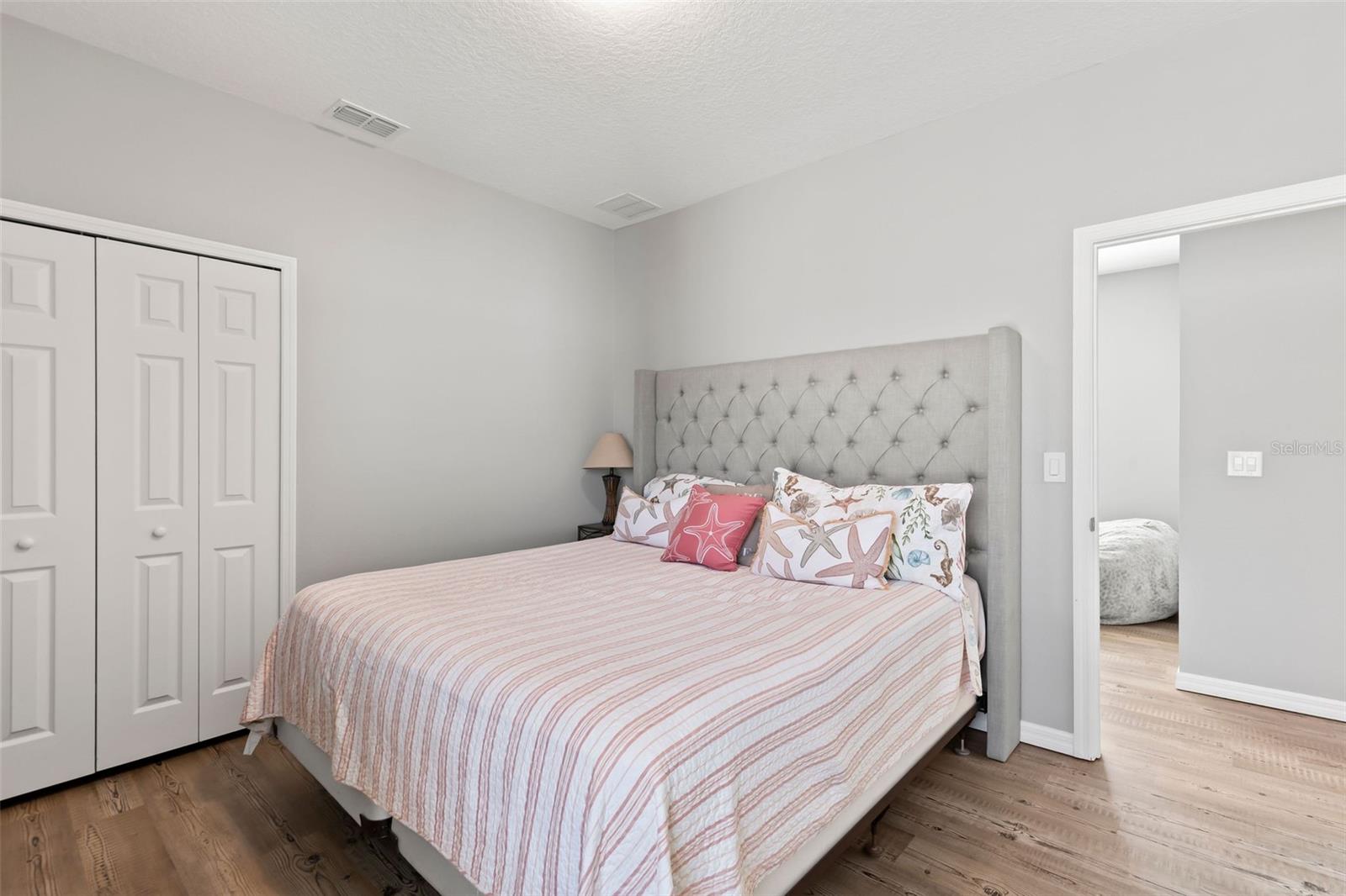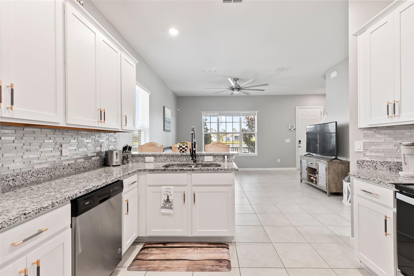Waterfront meticulously maintained 4-bedroom, den, 2.5 bath, oversized 2-car garage 2070 sf 2-story home that offers a peaceful pond front view making every day serene. This home is situated on one of few premium lots with extra side yard and great views of community fireworks and rocket launches. Boasting an array of upgrades, the home features luxury pro series 20 ML plank floors upstairs, upgraded hardware, faucets and backsplash, fresh interior paint, new light fixtures, fans, ring alarm system, and so much more. You have to love a worry-free home that has landscaping and irrigation included by HOA. Home was high & dry after all the storms. Main level features formal dining room, living room, fully equipped kitchen with SS appliances and granite, 1/2 bath and storage under the stairs. Upstairs you will find 4 spacious bedrooms and a den that can easily be a living room, office or craft room. Venetian Bay offers an unmatched lifestyle with a top-rated golf course, fantastic restaurant, coffee shop, spa, pet grooming, fitness center, to name a few as well as amenities such as tennis and pickleball courts, 20 miles of walking trails. Whether you're relaxing by the water or enjoying the community's extensive amenities, this home offers something for everyone. Don't miss the opportunity to live in luxury with resort-style living! All information taken from the tax record, and while deemed reliable, cannot be guaranteed.