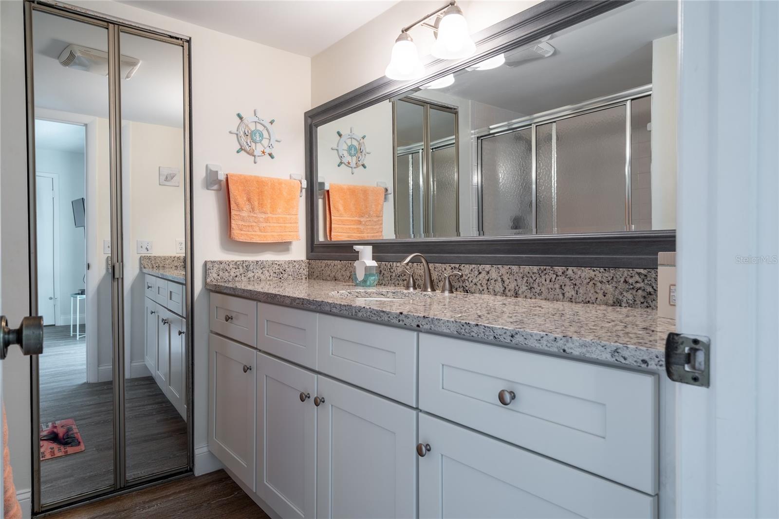 Meticulously kept, secluded paradise by the beach! This remodeled 2/2 New Smyrna Beach home with 1,298 square feet tucked away in the rear of Bahamian Club condos has numerous updates. The front entrance area has been tactfully opened to air conditioning and boasts all newer storm windows. Glass front door and upstairs sliders are new and hurricane resistant. The kitchen was remodeled with soft-close cabinetry, numerous undercabinet space-saving slide outs, and all appliances stay with your new home. The large primary suite includes a walk-in closet, a private bath with walk-in shower, and access to the private patio that is perfect for catching the most beautiful sunrises. The second bedroom is even larger than the primary and has a full bath right next to it. All three bathrooms have matching granite and newer vanities with soft-close cabinets. The current owner installed gorgeous pavers at front entrance area, the air conditioning system was installed in 2020 and has been serviced every 6 months, and the washer and dryer stay. This little community offers a pool, community activities, a clubhouse, shuffleboard and pickleball courts. The condo fee includes cable TV, internet, insurance, grounds, trash and exterior maintenance. If you’re out of town, you could potentially even rent your home out as a vacation rental. This home’s beautiful furnishings are negotiable. Just a short ride to all the quaint restaurants of New Smyrna Beach, but Daytona and Ormond Beaches, Deland, and Orlando are all easily accessible from New Smyrna Beach. All measurements are approximate and should be independently verified.
