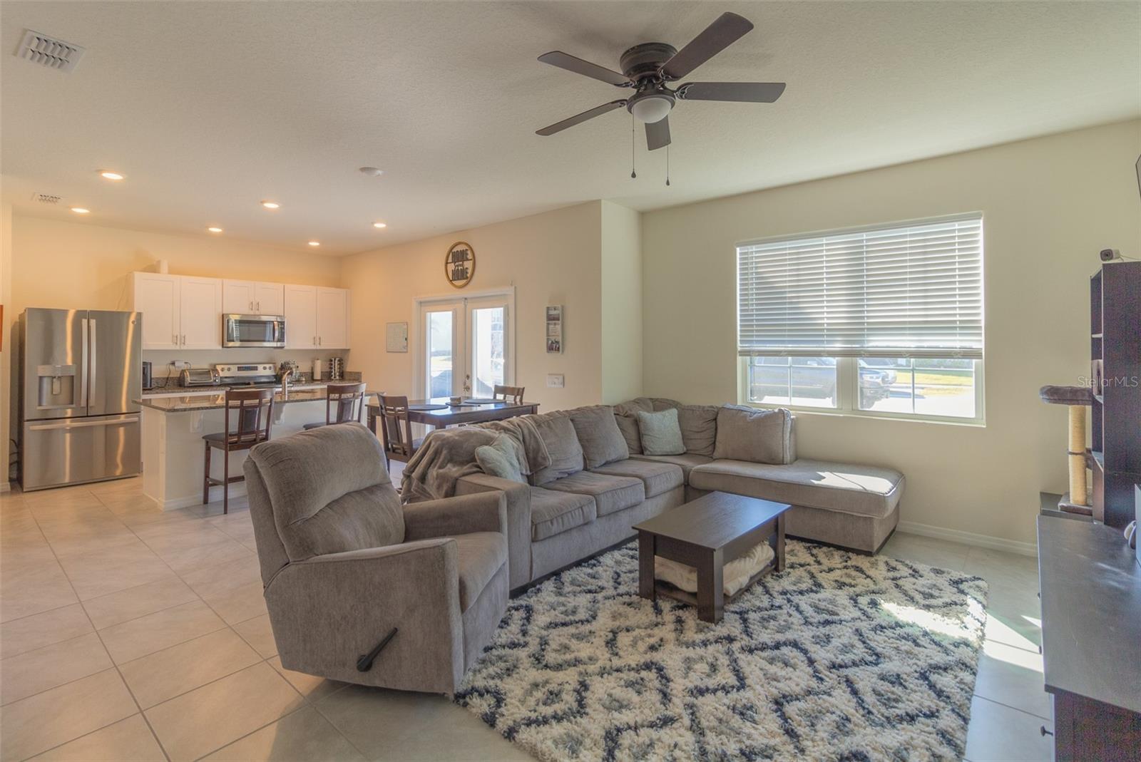 This beautiful home in Venetian Bay offers a spacious kitchen with granite counters, stainless appliances and upgraded large pantry. Built in 2022, It features a two-story layout with 3 BR, 2.5 BA 2-car garage, all block construction and is still under warranty. The main floor offers 18x18 tile flooring throughout, including all wet areas. Upstairs laundry room that comes equipped with a washer and dryer. This home is also equipped with Smart Home Technology. Community gives you access to the tennis and pickleball courts. Just up the street, you'll find an 18-hole public golf course and Towne Center Plaza featuring restaurants, gym and pool. All measurements are approximate but not guaranteed.