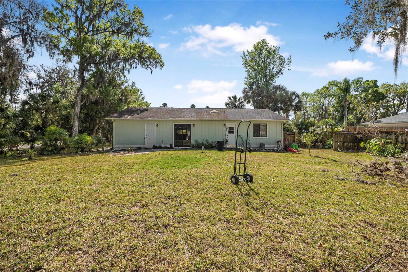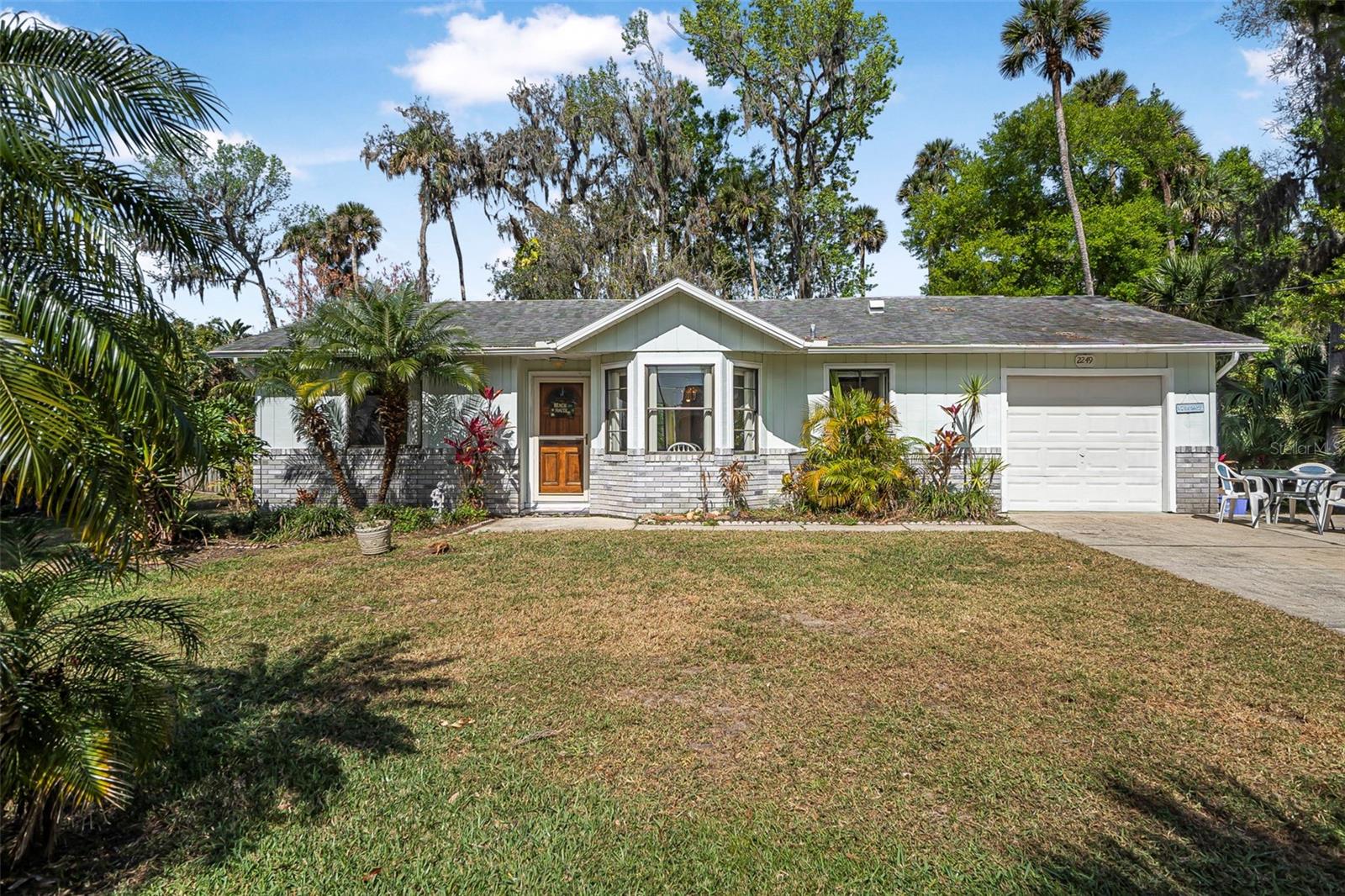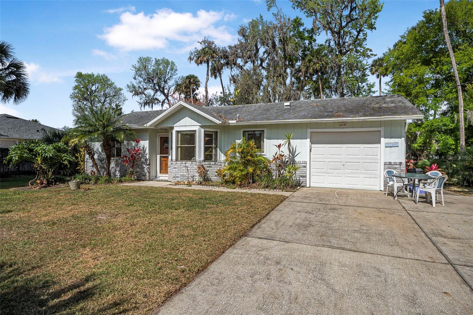 Welcome to Corbin Park, where coastal living meets comfort and convenience! This delightful 2-bedroom, 2-bathroom home sits on a spacious lot, plenty of room to enjoy the laid-back New Smyrna Beach lifestyle. Step inside to discover parquet laminate flooring throughout and vaulted ceilings in the living room, creating an airy and inviting atmosphere. The open-concept kitchen seamlessly flows into the living and dining areas, making it perfect for entertaining or simply enjoying everyday living. Large sliding glass doors with a beautiful view of the backyard, bringing in natural light and a touch of the outdoors. Both bedrooms are generously sized, providing comfort and flexibility, while the one-car garage for additional storage space for all your beach gear and more. Located just minutes from pristine beaches, charming shops, and local dining, this home is a fantastic opportunity to enjoy the best of New Smyrna Beach living. Don’t miss out—schedule your showing today!