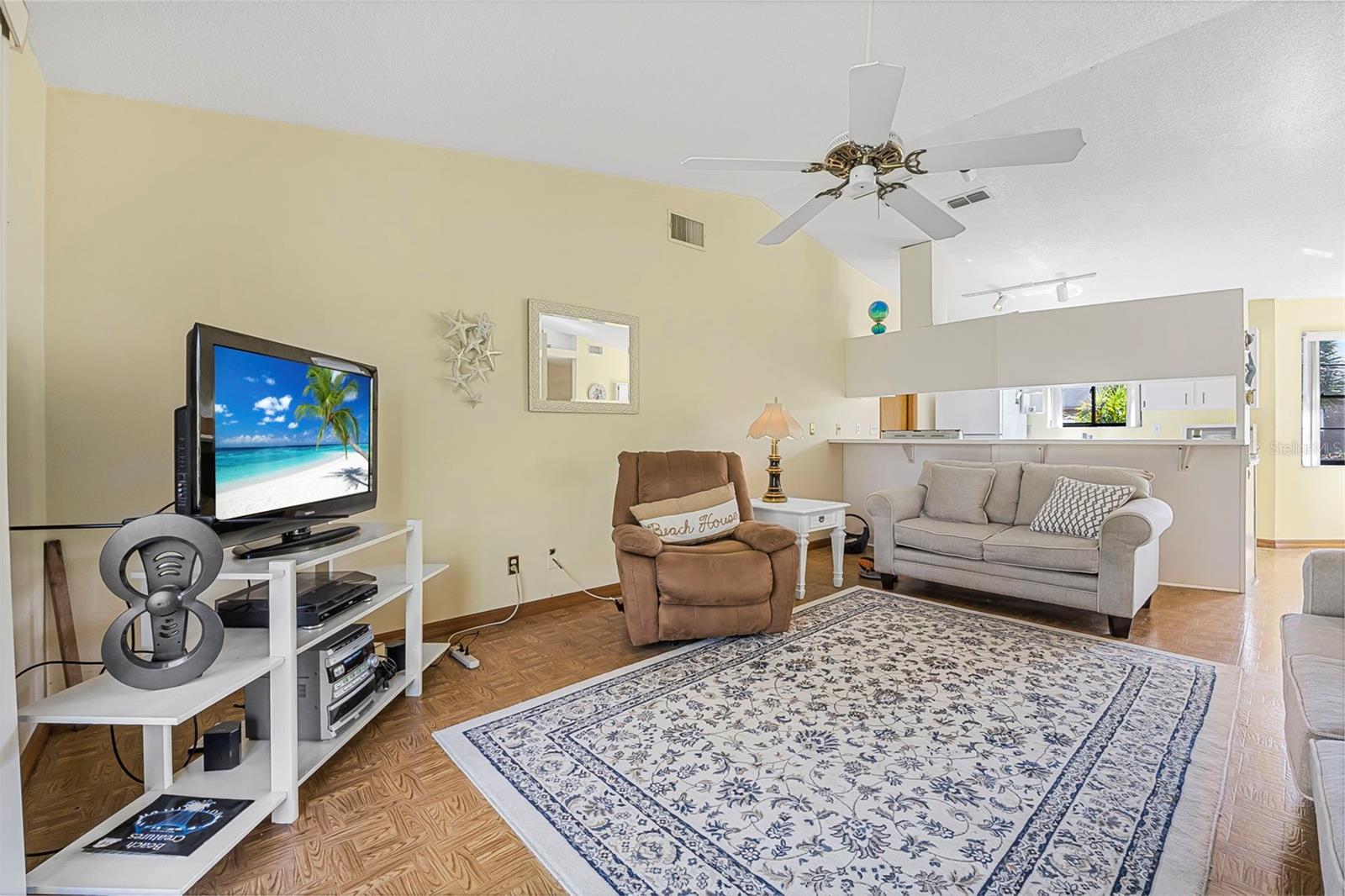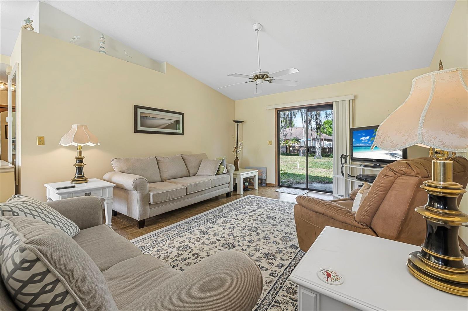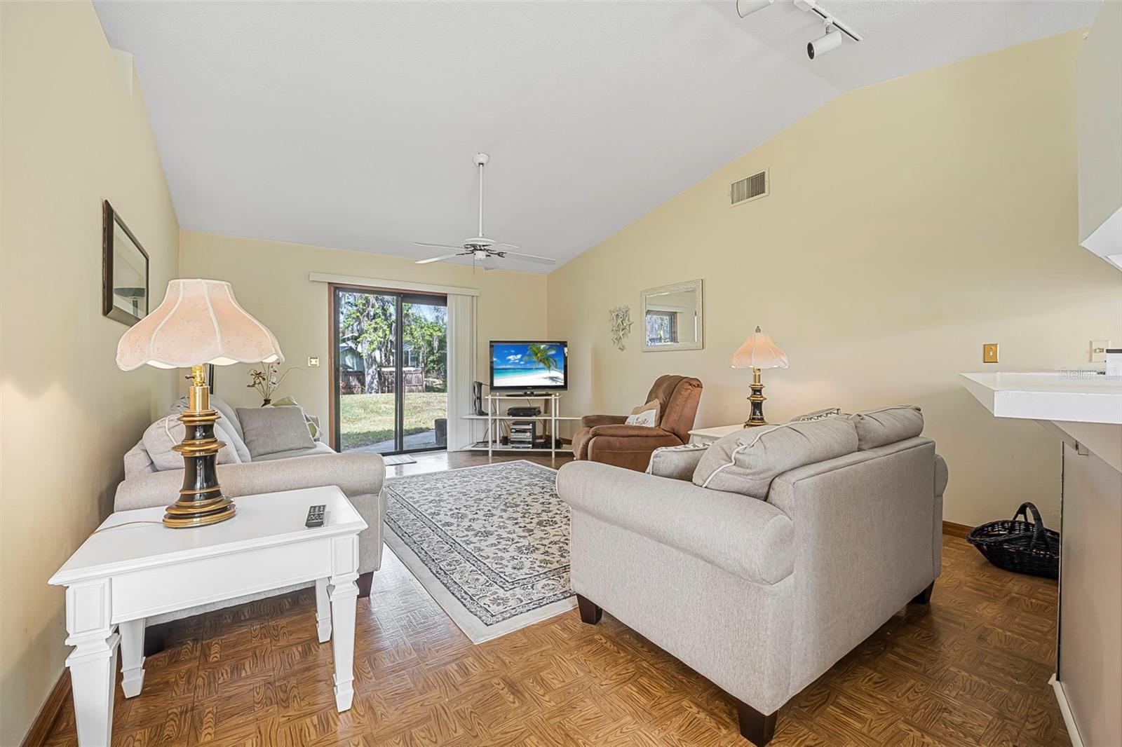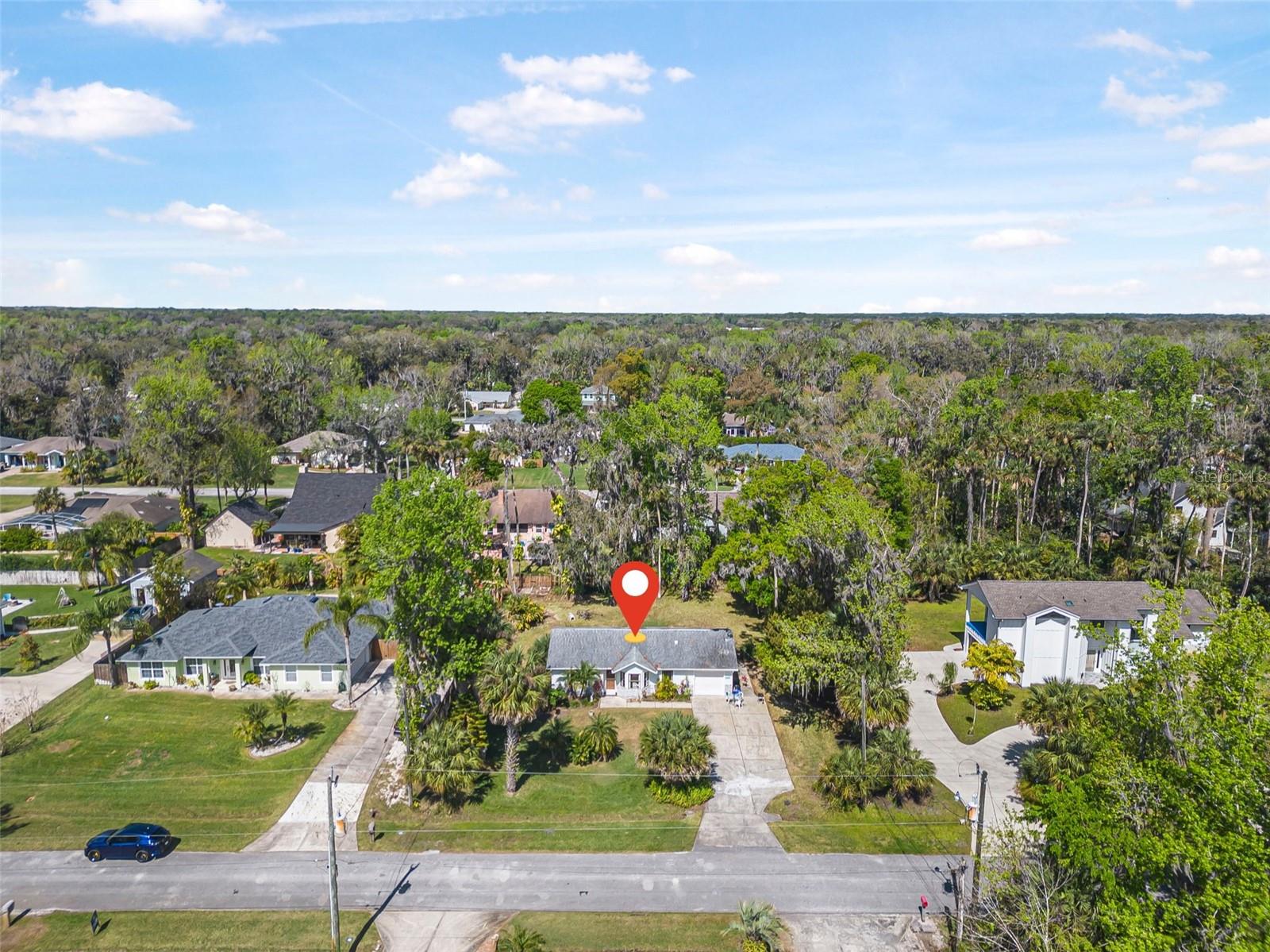 Welcome to Corbin Park, where coastal living meets comfort and convenience! This delightful 2-bedroom, 2-bathroom home sits on a spacious lot, plenty of room to enjoy the laid-back New Smyrna Beach lifestyle. Step inside to discover parquet laminate flooring throughout and vaulted ceilings in the living room, creating an airy and inviting atmosphere. The open-concept kitchen seamlessly flows into the living and dining areas, making it perfect for entertaining or simply enjoying everyday living. Large sliding glass doors with a beautiful view of the backyard, bringing in natural light and a touch of the outdoors. Both bedrooms are generously sized, providing comfort and flexibility, while the one-car garage for additional storage space for all your beach gear and more. Located just minutes from pristine beaches, charming shops, and local dining, this home is a fantastic opportunity to enjoy the best of New Smyrna Beach living. Don’t miss out—schedule your showing today!