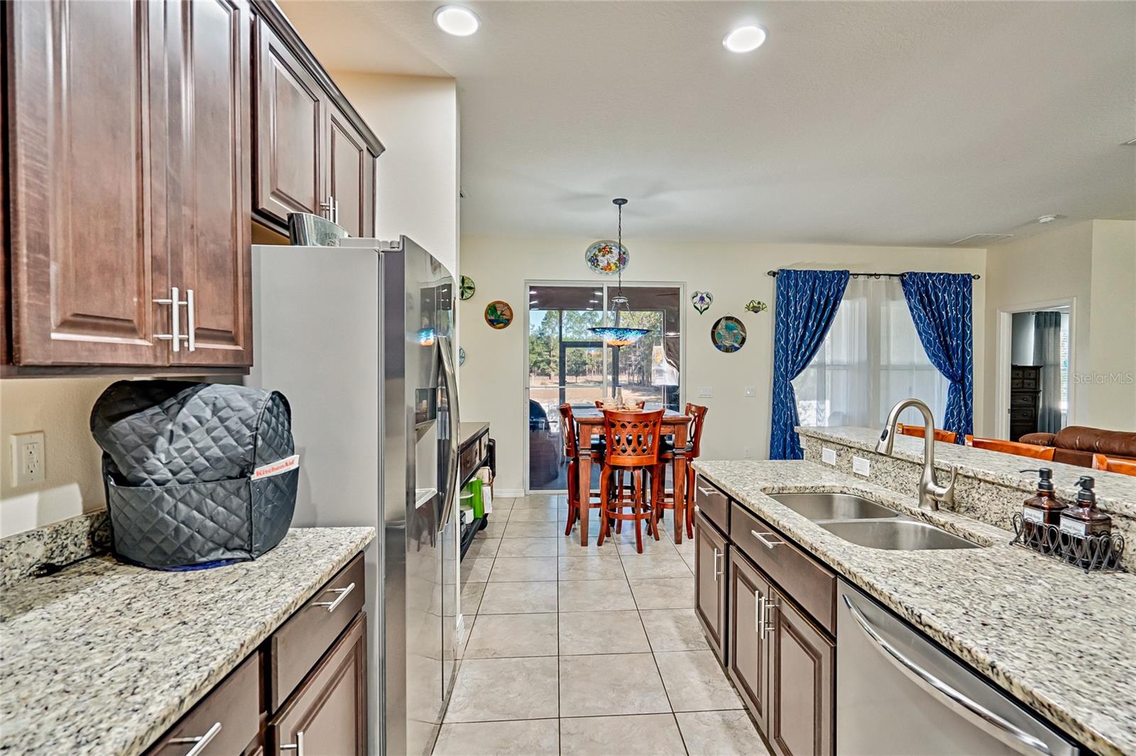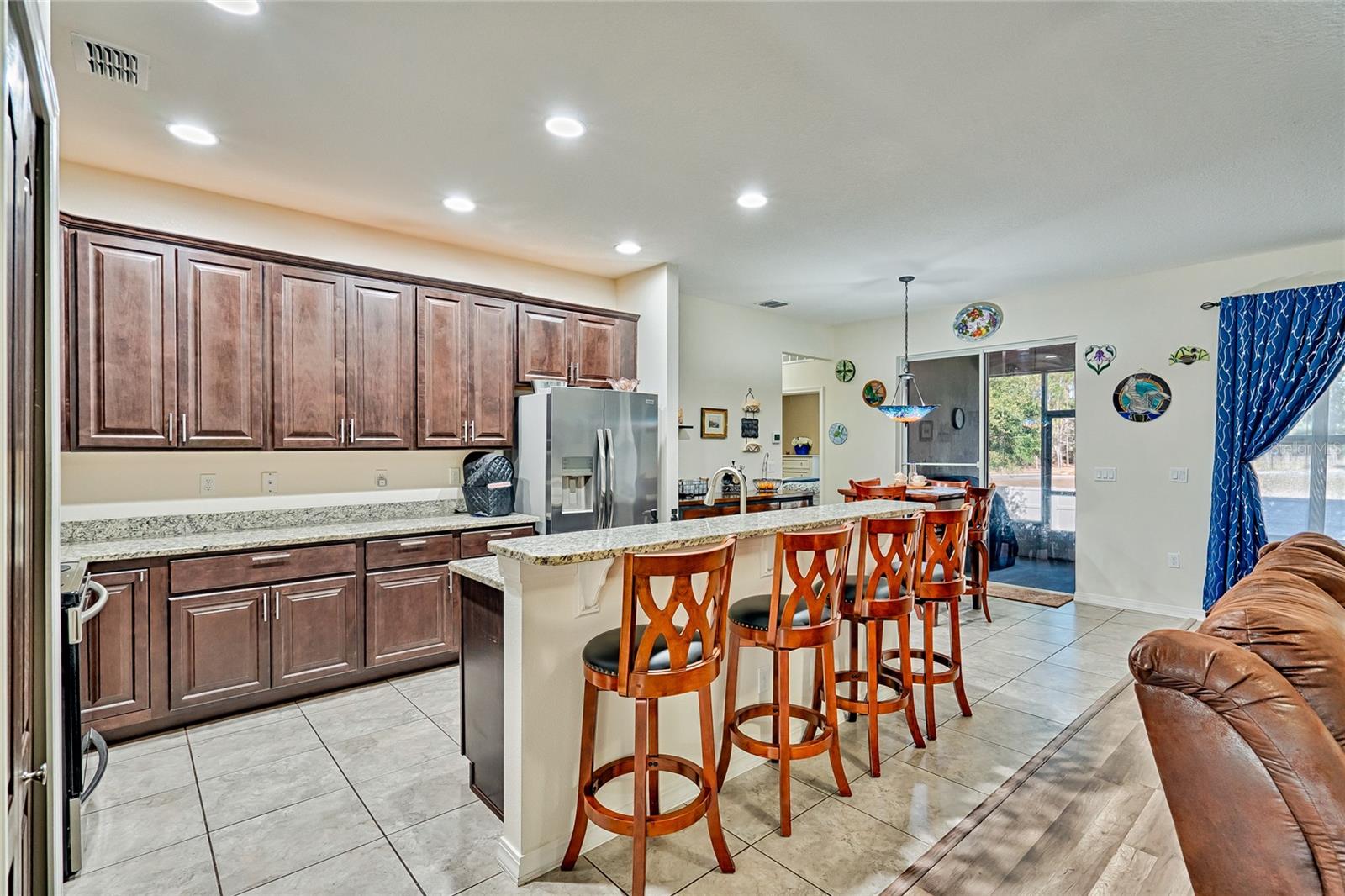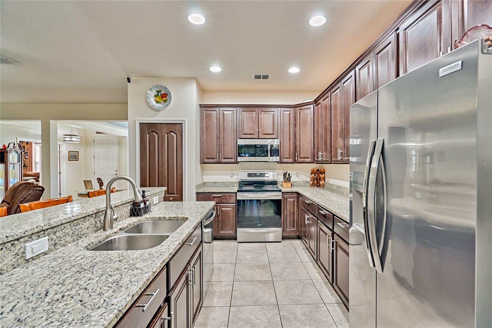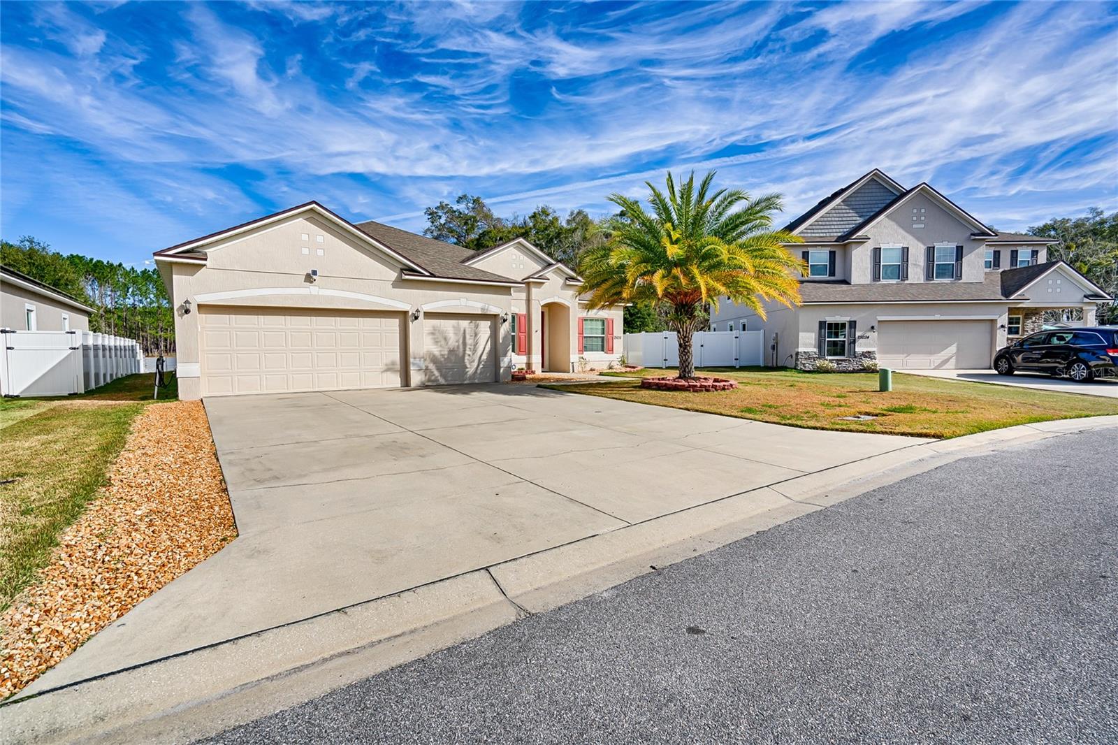 This 4 bedroom/3 bathroom turn-key, move in ready home w/ mother-in-law suite has been immaculately maintained and features a functional open floor plan! Upon entering the home you are welcomed into the foyer. The foyer is flanked by the formal living room/office with French doors and the dining area/flex space. The eat-in kitchen opens to the family room and features beautiful granite counter tops, wood cabinets, large island/breakfast bar, induction oven, SS Frigidaire Gallery appliances only 2-yrs old, built-in microwave, and pantry. The primary bedroom is very spacious and has en suite bath with a walk-in shower, dual vanities, built-in storage for linens, vanity area, and walk-in closet. The screened back patio opens to the fully fenced back yard which overlooks a retention/green space area that adds more privacy and assures no other homes would be built around you. The three-car garage is ideal for storage! This home is very low maintenance and move-in ready. Builder installed built-in pest control system which is maintained quarterly. Welcome HOME!