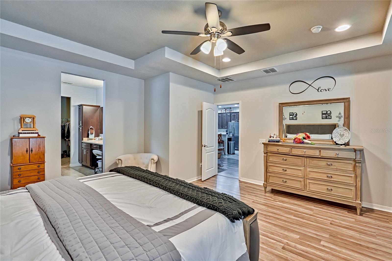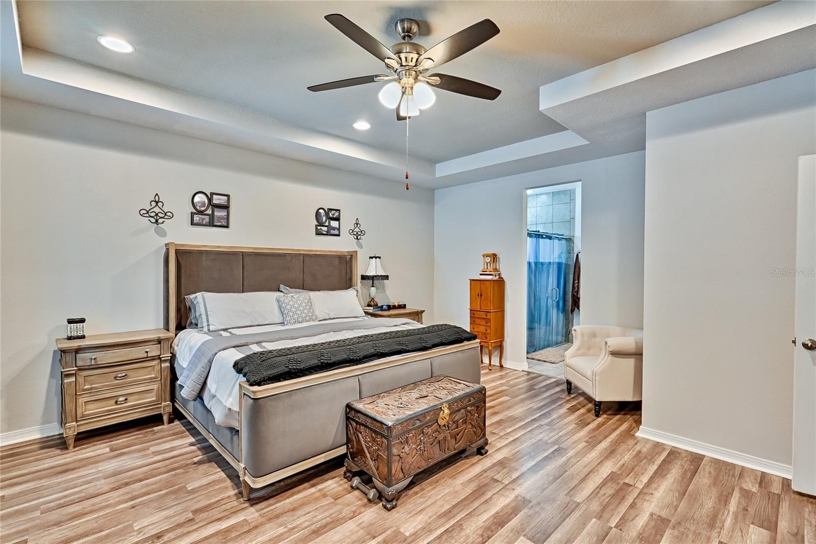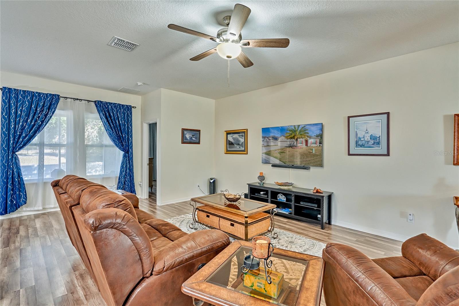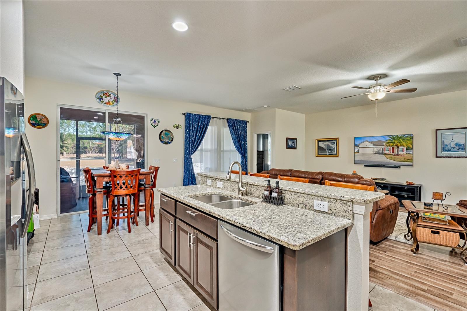 This 4 bedroom/3 bathroom turn-key, move in ready home w/ mother-in-law suite has been immaculately maintained and features a functional open floor plan! Upon entering the home you are welcomed into the foyer. The foyer is flanked by the formal living room/office with French doors and the dining area/flex space. The eat-in kitchen opens to the family room and features beautiful granite counter tops, wood cabinets, large island/breakfast bar, induction oven, SS Frigidaire Gallery appliances only 2-yrs old, built-in microwave, and pantry. The primary bedroom is very spacious and has en suite bath with a walk-in shower, dual vanities, built-in storage for linens, vanity area, and walk-in closet. The screened back patio opens to the fully fenced back yard which overlooks a retention/green space area that adds more privacy and assures no other homes would be built around you. The three-car garage is ideal for storage! This home is very low maintenance and move-in ready. Builder installed built-in pest control system which is maintained quarterly. Welcome HOME!