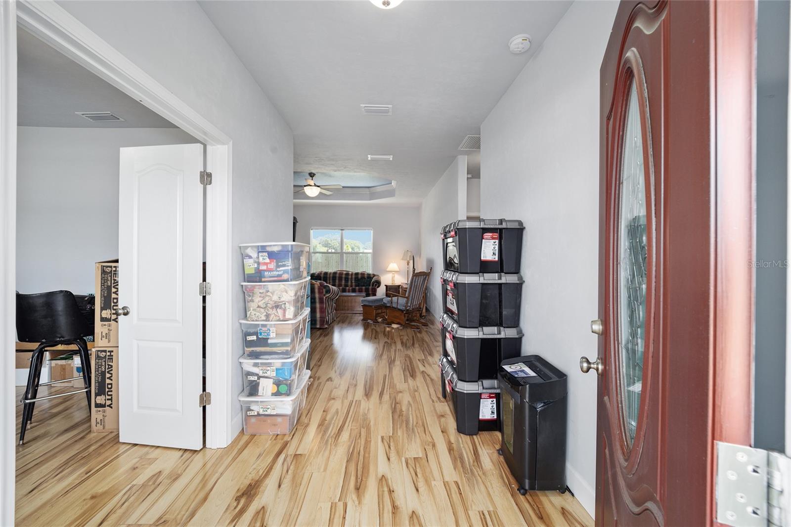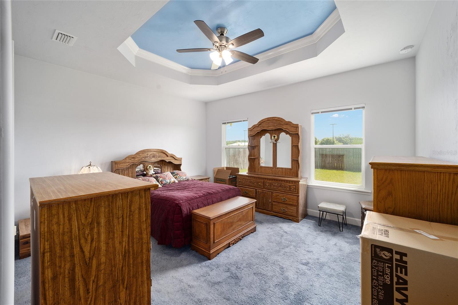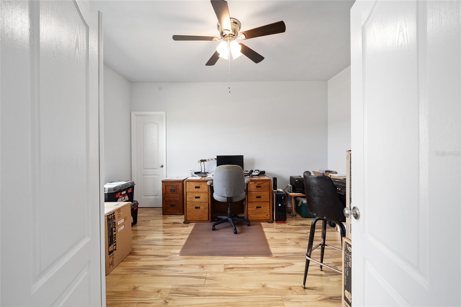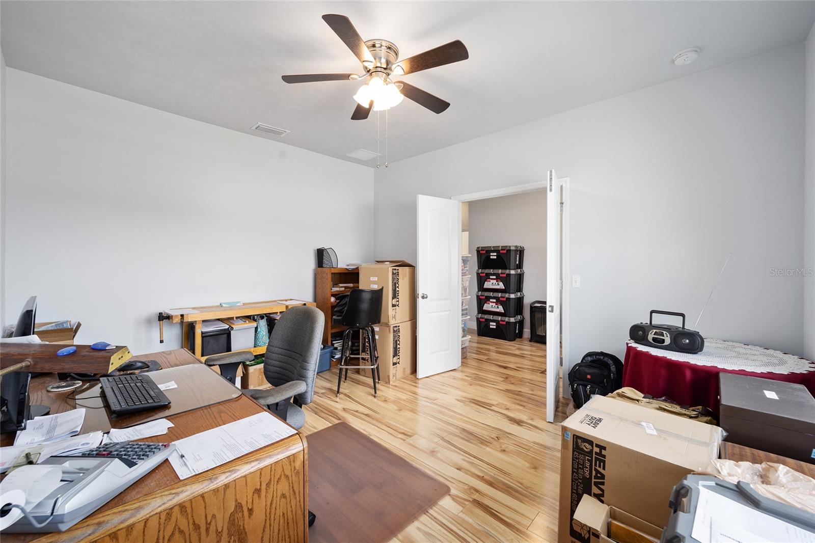 Welcome to the charming community of Newberry Oaks! This 4 bedroom/2 bathroom ranch style home was built in 2018 and is move-in ready. Open concept living/dining room area with 9ft ceilings in great room. Full of natural light! Upon entering the home you will notice French doors that lead into the 4th bedroom, which is perfect for an office/flex room. On the right side of home is two spacious bedrooms which share a full bathroom. Split living spaces with master bedroom on opposite side of home. Master bedroom features a two-way access into bedroom. Master bathroom has an enclosed walk-in shower and double vanities. The kitchen features granite countertops and ample cabinets/countertop space; perfect for entertaining! Large walk-in pantry for extra storage. You can enter the mudroom area off the kitchen as well as through the master closet. This home has never had anything hung on walls. Two car oversized garage was lengthened to 559ft and has 4 additional outlets that were added during construction. Garage can fit a full size pick-up truck with room on sides for storage. Fully fenced backyard with privacy fence. No homes built behind property for extra privacy. Enjoy the beautiful Florida weather off your back lanai! Backyard overlooks Equestrian activities and a beautiful, open landscape view. Home includes water softener system and 2024 tankless hot water heater supplied by natural gas. Call today to tour this gorgeous home in person! Great location and good proximity to Tioga Town Center and Newberry Town Square. Short drive to University of Florida, Santa Fe College, VA Medical Center, UF Health, HCA Florida North Florida Hospital, Butler Plaza and Celebration Point. This one will NOT last, call today to see! This information is deemed to be true and correct at time of entry but not guaranteed. Please verify details. Bedroom Closet Type: Walk-in Closet (Primary Bedroom).