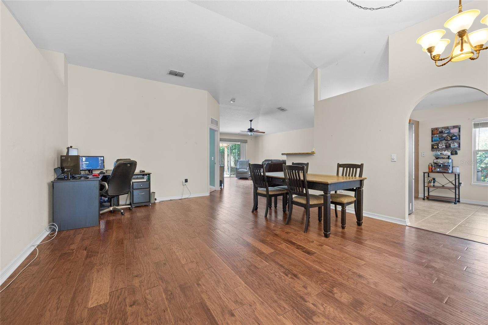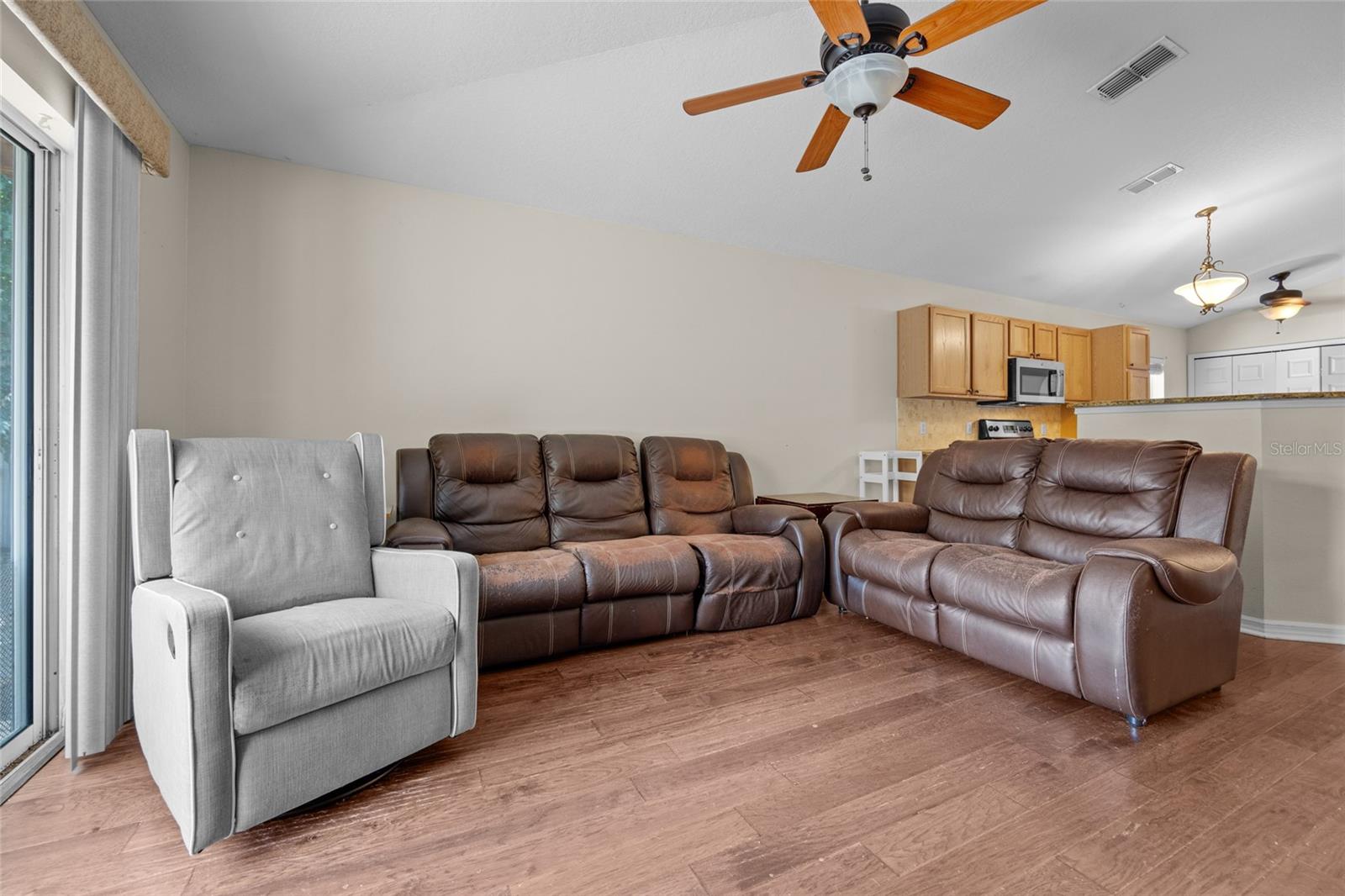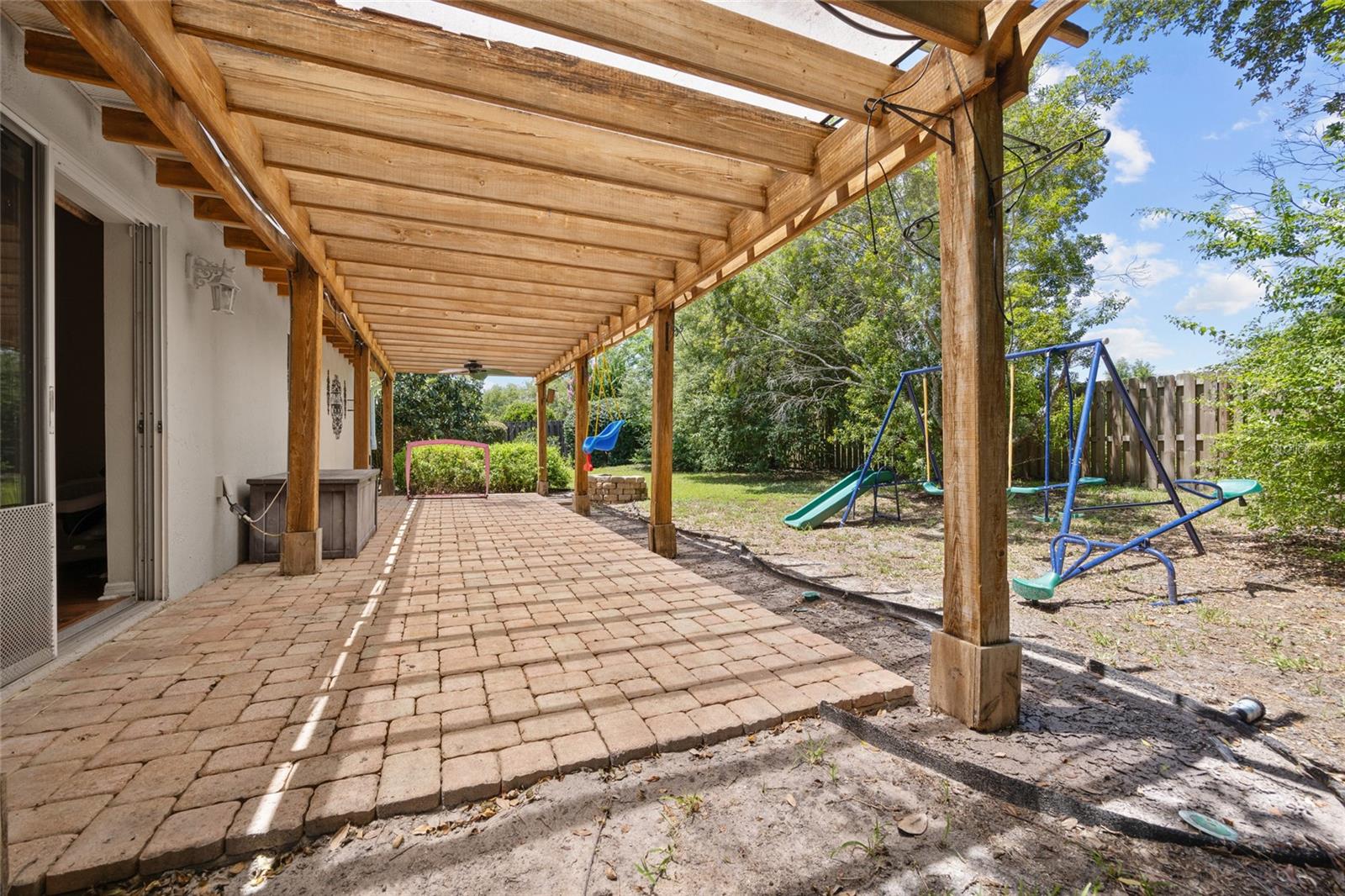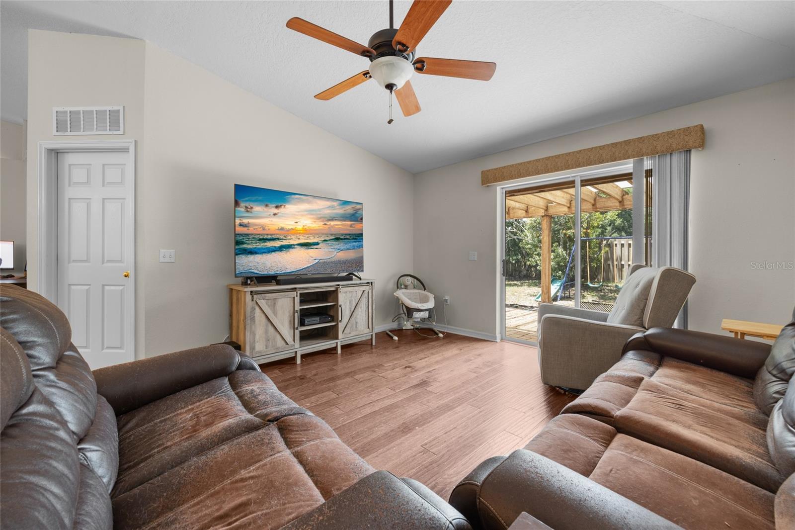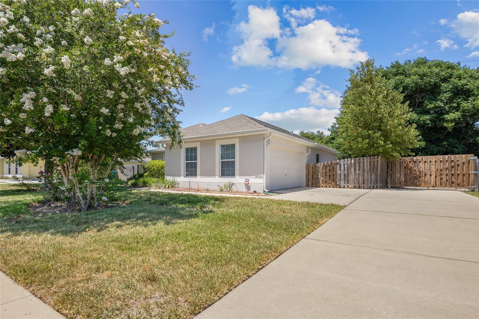 Contemporary and elegant describe this 1,616 3-bed/2-bath concrete block Maronda home in the much sought-after community of Newberry Oaks! Featuring lovely architectural details and high-quality finishes, this home is beautifully adorned with hardwood floors, vaulted ceiling, open concept floor plan, huge patio with pavers and 10 x 30 pergola, and a NEW ROOF coming soon! Entering the home, you will find yourself in a welcoming foyer that opens to the vast living space, which includes a formal dining room, living room, and family room with sliding glass doors leading to the backyard. Just beyond the formal dining room and overlooking the living room and family room is the large kitchen, perfect for culinary enthusiasts with its new stainless steel appliances, granite countertops, and breakfast nook. A split bedroom plan has the guest bedrooms and full guest bath to the left as you enter the home. Off the family room at the back of the house is the luxurious primary suite with walk-in closet, double vanities, walk-in shower, bathtub, and water closet. When entertaining guests, you will want to treat them to the shaded patio where you can comfortably host a large gathering while watching little ones play in the fenced backyard. The property includes a firepit, landscape lighting and an irrigation system in the front and back yards, and on the pergola. Additional bonuses include a parking pad for a boat or RV, newer hot water heater (2021), newer fence (2020), green space behind the property, and NO HOA FEE! Ideally located, the community of Newberry Oaks is about 10 miles from Gainesville and access to I-75, 7.5 miles from the Town of Tioga, 2 miles from Newberry, and just 1 mile from the popular Alachua County Agriculture and Equestrian Center. With such an appealing home, lot, and location, you won’t want to wait!