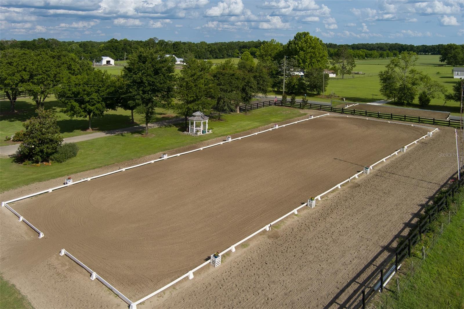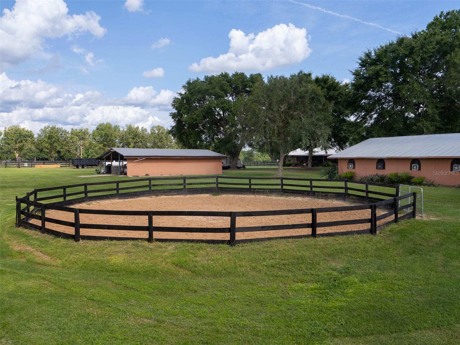 This exceptional equestrian facility offers a serene sanctuary spanning 15 meticulously maintained acres, nestled in a tranquil, picturesque setting. As you enter the property, a charming brick home awaits, boasting 3 bedrooms and 2 and a half baths. Its inviting open floor plan seamlessly integrates the custom kitchen, with granite countertops, stainless steel appliances, an island for extra seating and prep, dining area, and a large family room with a cozy gas fireplace, perfect for relaxing evenings. A large laundry room with connecting half bath conveniently opens into the back screen porch. The primary bedroom includes a large on-suite bathroom, dual vanities, shower, and walk in closet. With tile and wood floors throughout, every corner exudes warmth and sophistication. From the comfort of every room, beautiful views are enjoyed. Step onto the front porch, complete with a timeless swing, and enjoy the peaceful environment overlooking the front of the property. Alternatively, retreat to the enclosed back porch, offering tranquil views of horses grazing and beautiful pastures. The heart of this property lies in its state-of-the-art equestrian facilities. A 10-stall cement barn stands as a testament to luxury and functionality, featuring rubber mats for comfort and safety, an automatic watering system ensuring horses remain hydrated, and an air-conditioned tack and feed room for added convenience. Equipped with an automatic fly spray system and strategically placed fans, the barn ensures a comfortable environment for both horses and caretakers alike. Additional amenities include a wash rack and a dedicated laundry room with a convenient half bath. Outside, equestrian enthusiasts will find everything they need for optimal training and care. A 60-foot round pen provides ample space for groundwork and exercise, while four generously sized fenced paddocks offer plenty of grazing area, all interconnected by a central aisle for enhanced safety and accessibility. For storage and equipment needs, a large equipment barn stands ready to accommodate. Completing this remarkable facility is a regulation-size dressage arena, meticulously crafted with steel-encased mirrors to facilitate precise training and performance evaluation. Whether honing skills or simply enjoying a leisurely ride, this arena offers a premium experience for riders of all levels. A charming gazebo offers a cozy spot to enjoy the beauty of the surroundings. Positioned to overlook the dressage arena, it's the perfect place to watch riders and horses in action or simply unwind amidst the peaceful scenery. In essence, this turnkey equestrian facility is a haven for horse enthusiasts seeking a blend of luxury, functionality, and natural beauty—a place where every detail is thoughtfully designed to elevate the equestrian experience to new heights. Roof 13yrs Metal (2011) HVAC 5yrs (2019) New Hot water heater(2024) New windows, New Front doors, New Electric Gate. 20 minutes to Gainesville, UF, VA, Celebration Pointe, Shopping and 40 minutes to the Beautiful World Equestrian Center in Ocala.