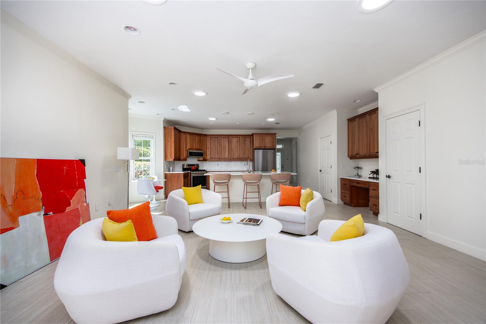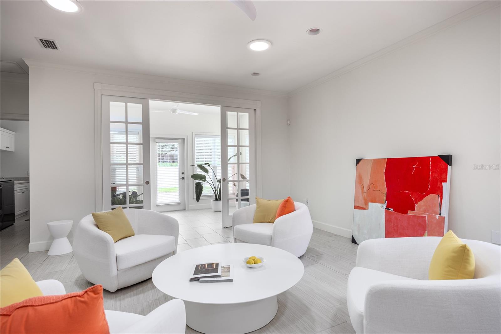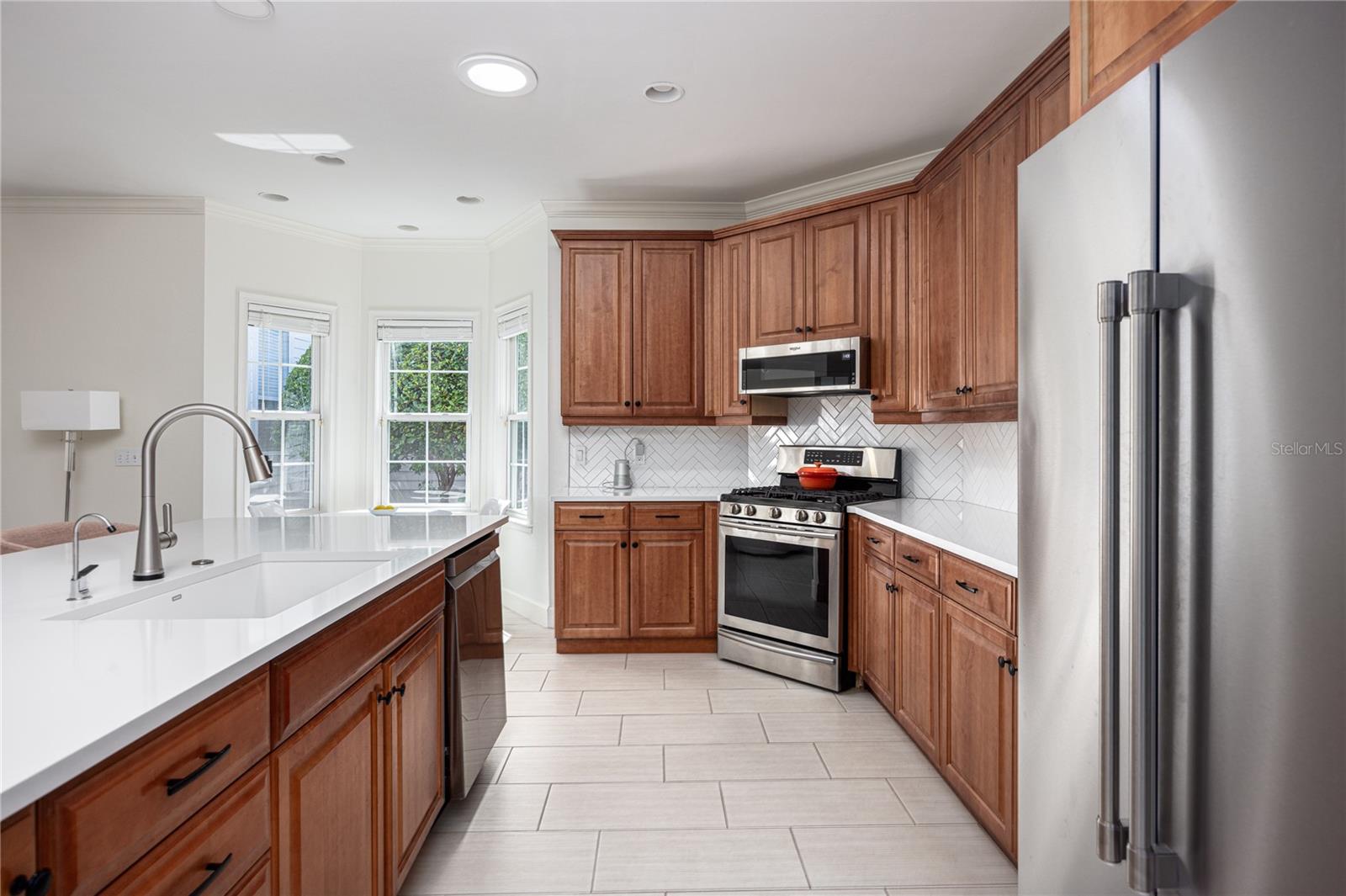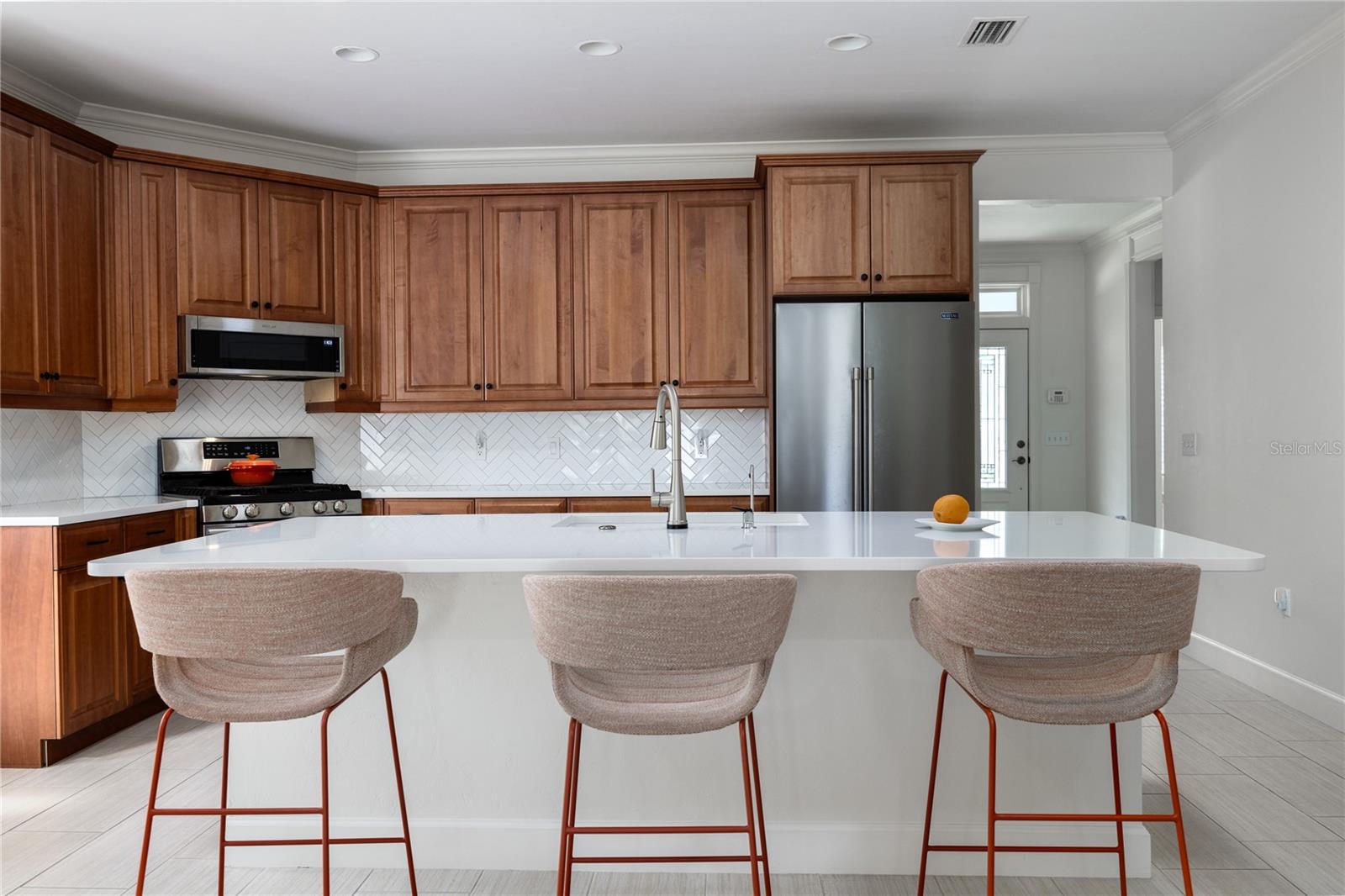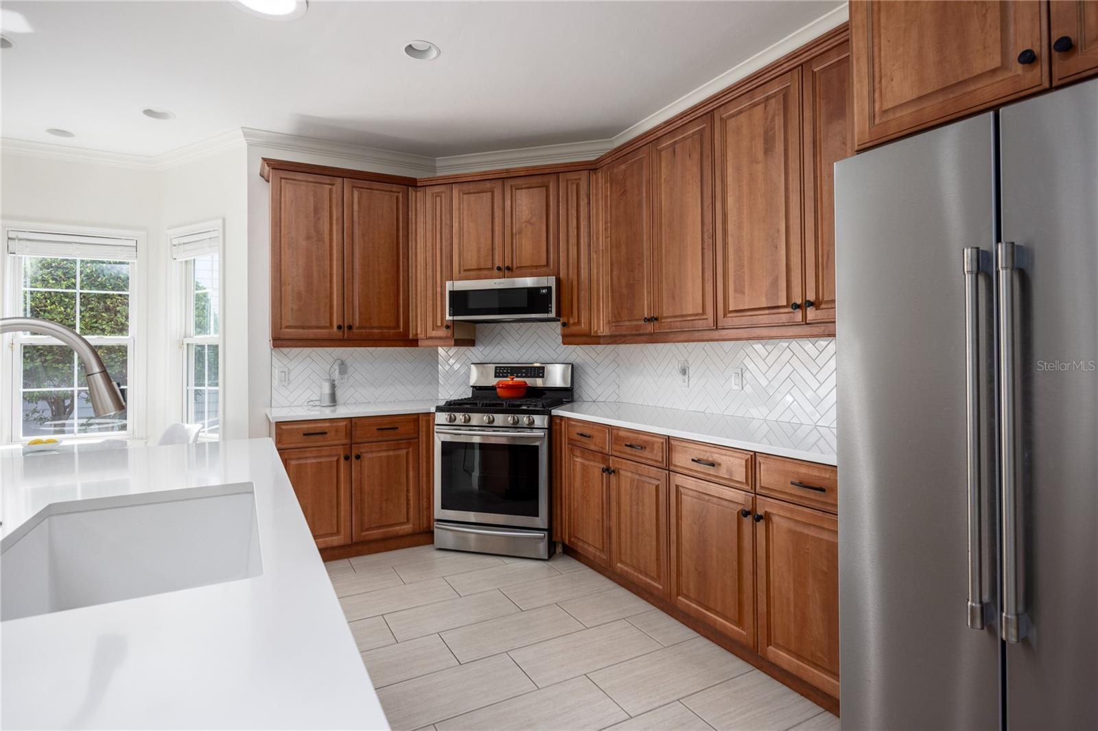 Welcome to the good life! Have you been searching for that perfect home which offers elegant updates, a bright and comfortable layout and just enough easy outdoor living space to enjoy year-round? Are you seeking not just a beautiful home, but also an elevated lifestyle in a community full of amazing amenities? Then you will not want to miss out on this truly stunning and spacious 4-bedroom, 2-bathroom contemporary bungalow nestled in the heart of the fabulous and award-winning Town of Tioga! Picture perfect from the moment you step onto the front porch, this 2,055 square foot home was built in 2005 by Jamie Pridgen and blends the perfect mix of design elements with a light filled open concept kitchen/living area, formal dining room, split bedroom plan, sunroom, three guest bedrooms and spacious primary suite. The expansive and sleek kitchen overlooks the living area and was recently upgraded with gorgeous quartz countertops, herringbone backsplash, stainless appliances, gas range, single basin drop-in sink, modern lighting fixtures and new hardware. It also features a large breakfast bar with additional eat-in space and a built-in computer nook with matching quartz upgrade. Cozy up in the living room to watch the big game or enjoy your morning coffee in the blissful sunroom overlooking the incredibly peaceful garden courtyard out back. With fresh, neutral paint, tons of windows, new solar tubes, light wood-grain tile flooring, high ceilings, crown molding and sliding French doors, this home radiates with elegant finishing touches. Recent upgrades include a new stunning primary bathroom, new carpet in all bedrooms, new roof and water heater in 2023 along with a new HVAC in 2016. The yard is fully fenced with a two-car garage and large interior laundry room! Lastly, Tioga offers an incredible lifestyle with resort style amenities including a community pool, playgrounds, recreational facilities AND a ton of restaurants, retail shops, fitness center and events located just minutes from your door at the premier mixed-use Tioga Town Center. Schedule your private showing TODAY!