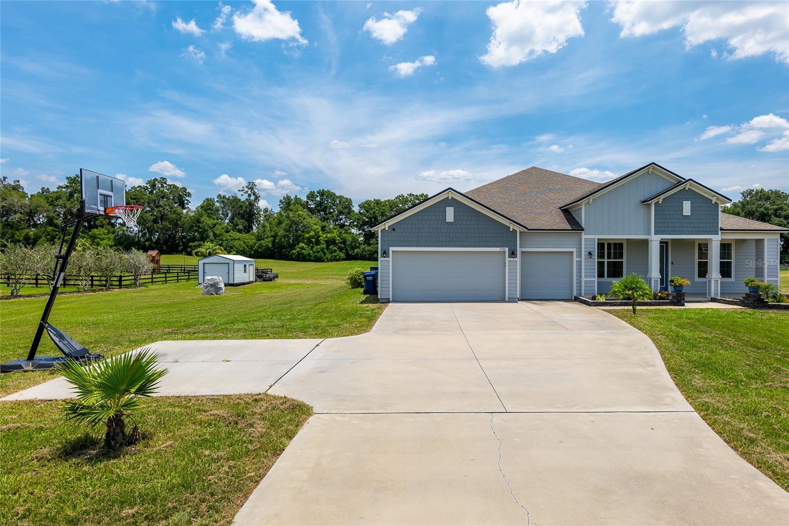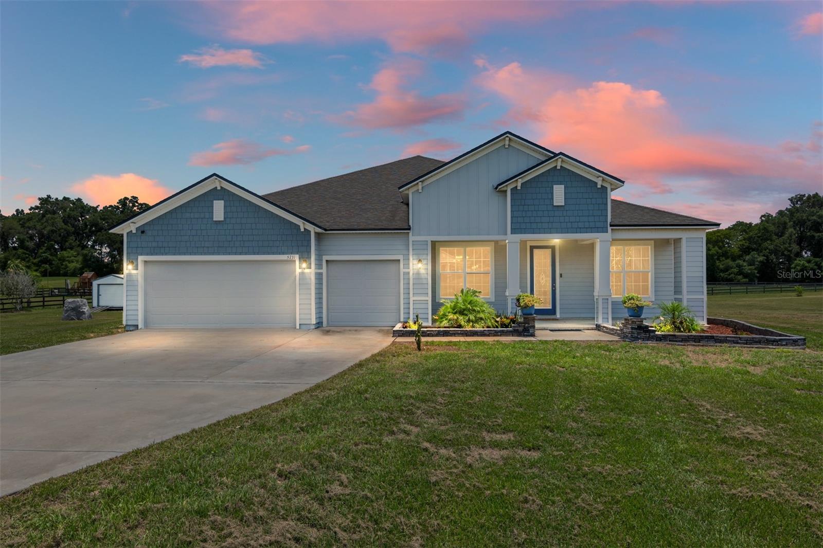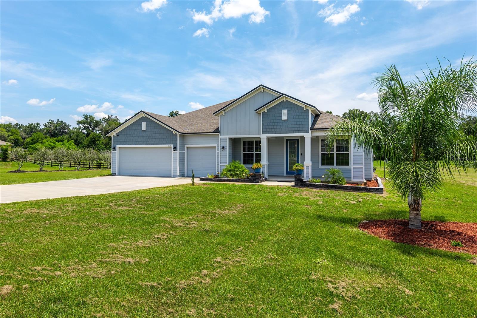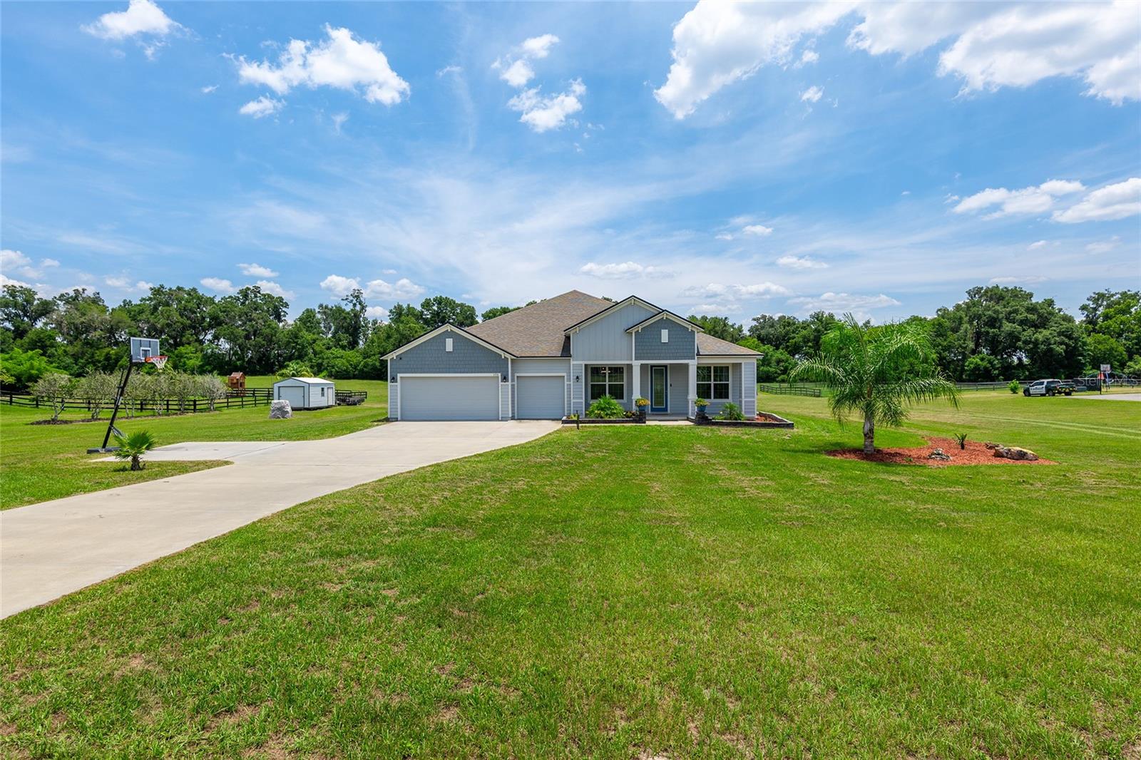 Immerse yourself in tranquility on 2.95 acres in Half Moon Station! This beautifully appointed 4-bedroom, 3-bathroom home, offering 3,100 square feet of living space, provides the perfect blend of privacy and convenience while nestled within a gated community located between Archer and Newberry. The open concept design seamlessly integrates the kitchen, living room, and dining area, creating a perfect flow for entertaining or relaxing. The modern kitchen boasts ample counter space, granite countertops, and stainless steel appliances, making meal prep a breeze. Natural light floods the space, highlighting the home's elegance. The split-bedroom plan offers tranquility and privacy. The primary suite, situated at the back of the house, features a spa-like master bathroom with a walk-in shower, dual vanities, a soaking tub, and spacious walk-in closet, providing a luxurious retreat. Two guest rooms and a guest bath are located at the end of the hall and a fourth bedroom and third bathroom on the other wing offer additional flexibility, ideal for multi-generational living, visitors or a dedicated home office. Step outside and enjoy the tranquility of your 2.95-acre property. The screened lanai overlooks the expansive backyard, perfect for enjoying Florida's sunshine. A fenced area provides a safe haven for your furry friends. And for all your outdoor gear and lawn equipment, a spacious 12 x 20 storage shed offers ample storage space. Additional highlights include a three-car garage with ample storage space for all your needs, plus a tankless water heater and Trane HVAC system to ensure energy efficiency.