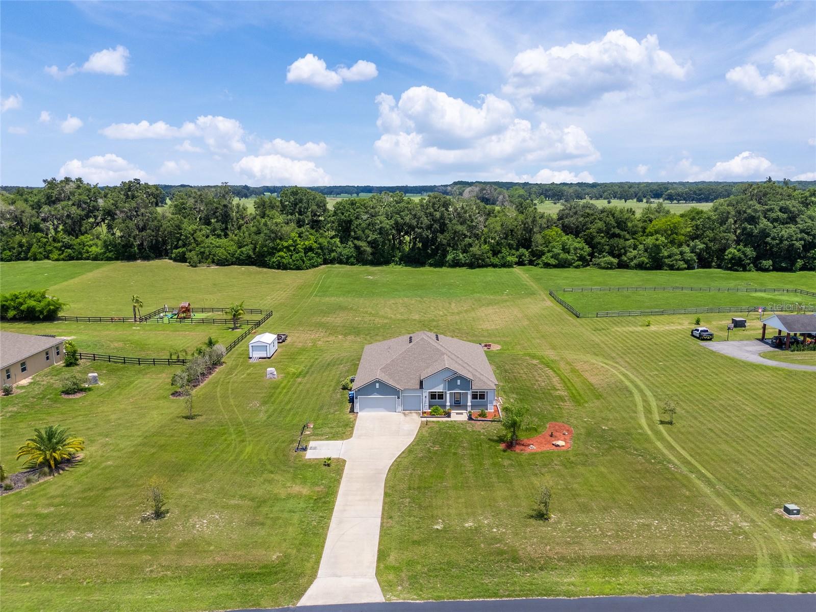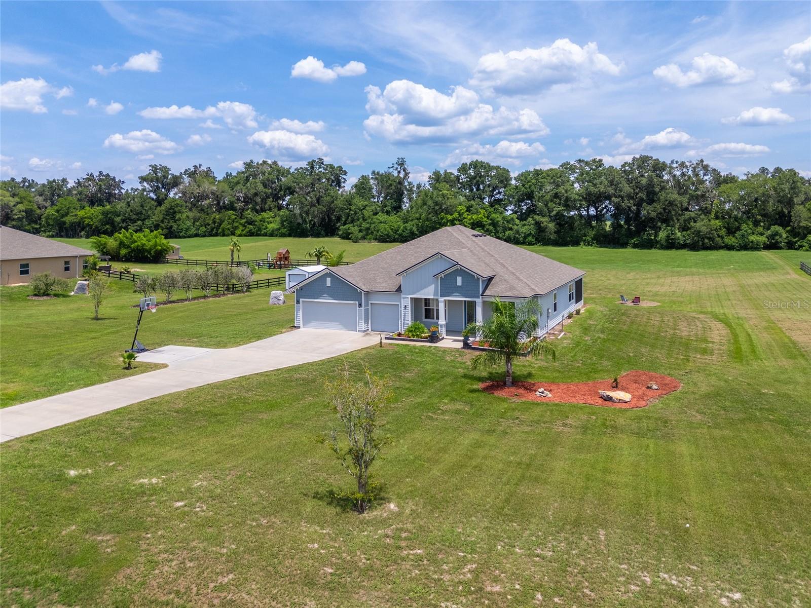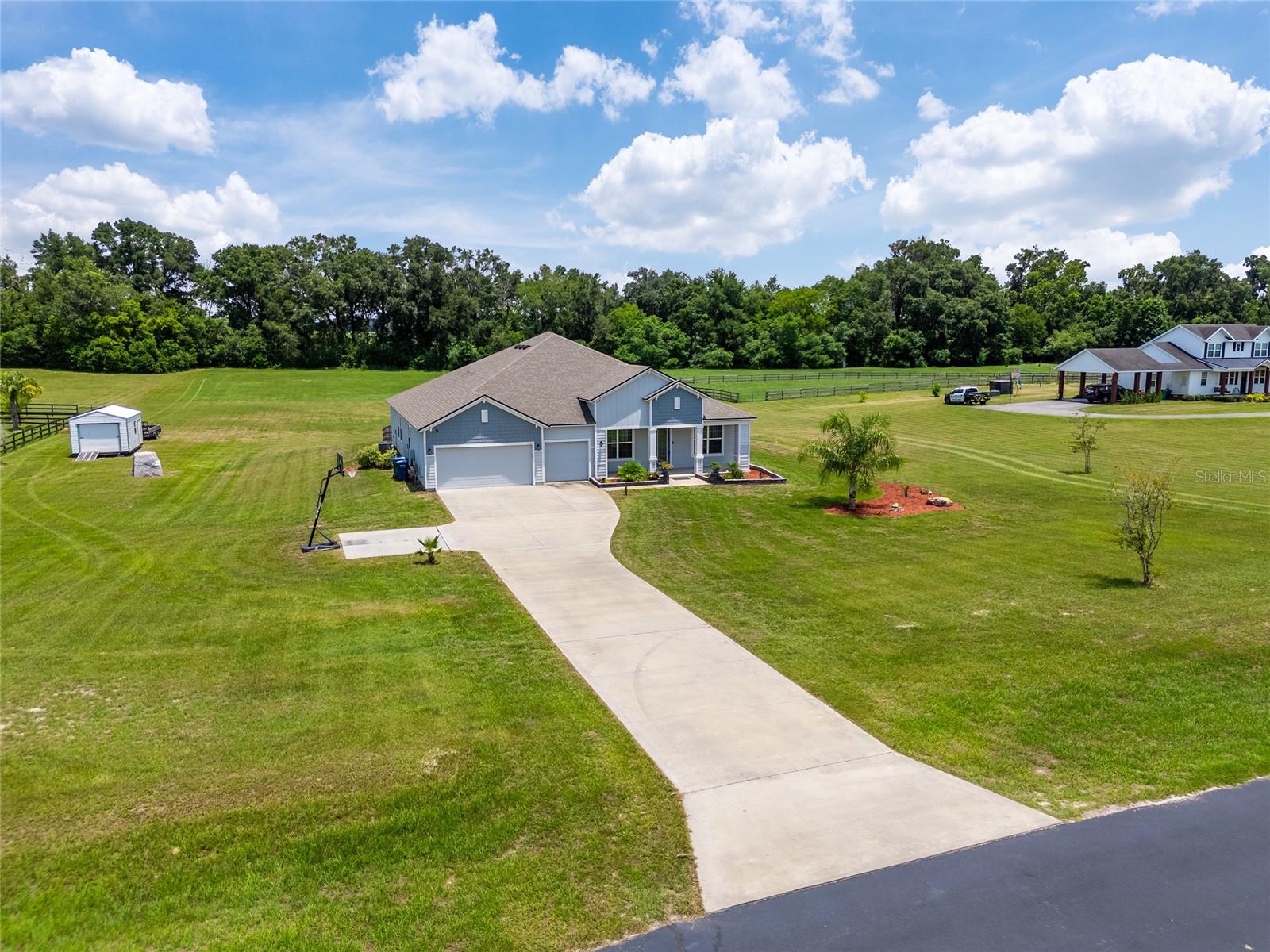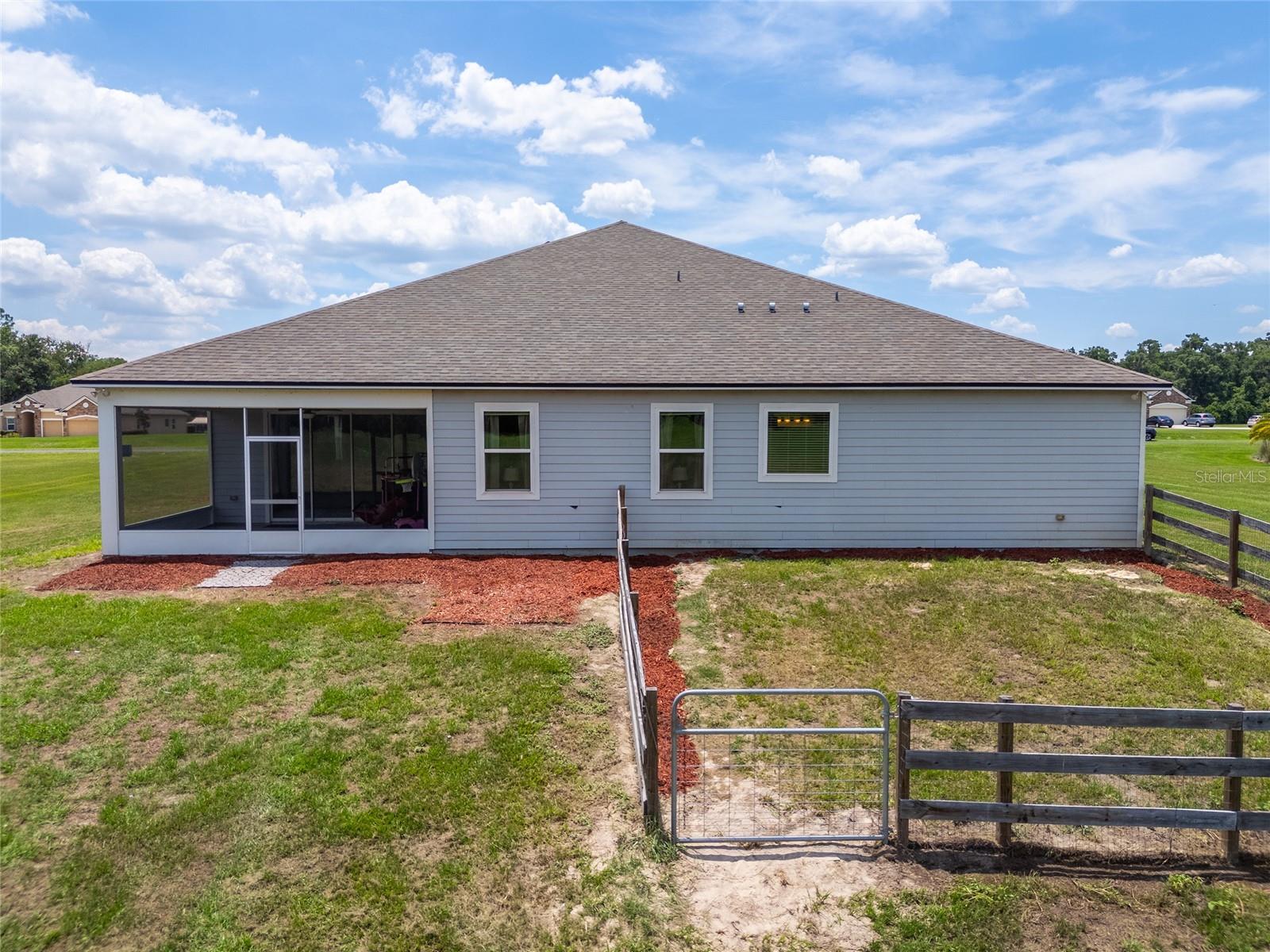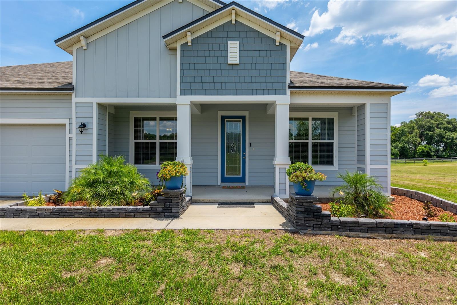 Immerse yourself in tranquility on 2.95 acres in Half Moon Station! This beautifully appointed 4-bedroom, 3-bathroom home, offering 3,100 square feet of living space, provides the perfect blend of privacy and convenience while nestled within a gated community located between Archer and Newberry. The open concept design seamlessly integrates the kitchen, living room, and dining area, creating a perfect flow for entertaining or relaxing. The modern kitchen boasts ample counter space, granite countertops, and stainless steel appliances, making meal prep a breeze. Natural light floods the space, highlighting the home's elegance. The split-bedroom plan offers tranquility and privacy. The primary suite, situated at the back of the house, features a spa-like master bathroom with a walk-in shower, dual vanities, a soaking tub, and spacious walk-in closet, providing a luxurious retreat. Two guest rooms and a guest bath are located at the end of the hall and a fourth bedroom and third bathroom on the other wing offer additional flexibility, ideal for multi-generational living, visitors or a dedicated home office. Step outside and enjoy the tranquility of your 2.95-acre property. The screened lanai overlooks the expansive backyard, perfect for enjoying Florida's sunshine. A fenced area provides a safe haven for your furry friends. And for all your outdoor gear and lawn equipment, a spacious 12 x 20 storage shed offers ample storage space. Additional highlights include a three-car garage with ample storage space for all your needs, plus a tankless water heater and Trane HVAC system to ensure energy efficiency.