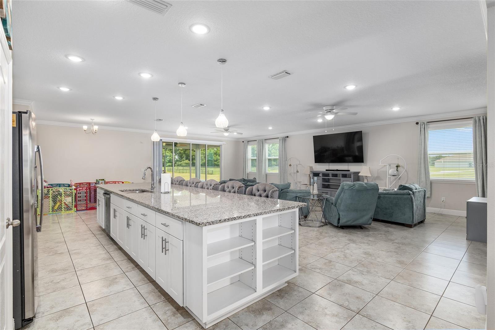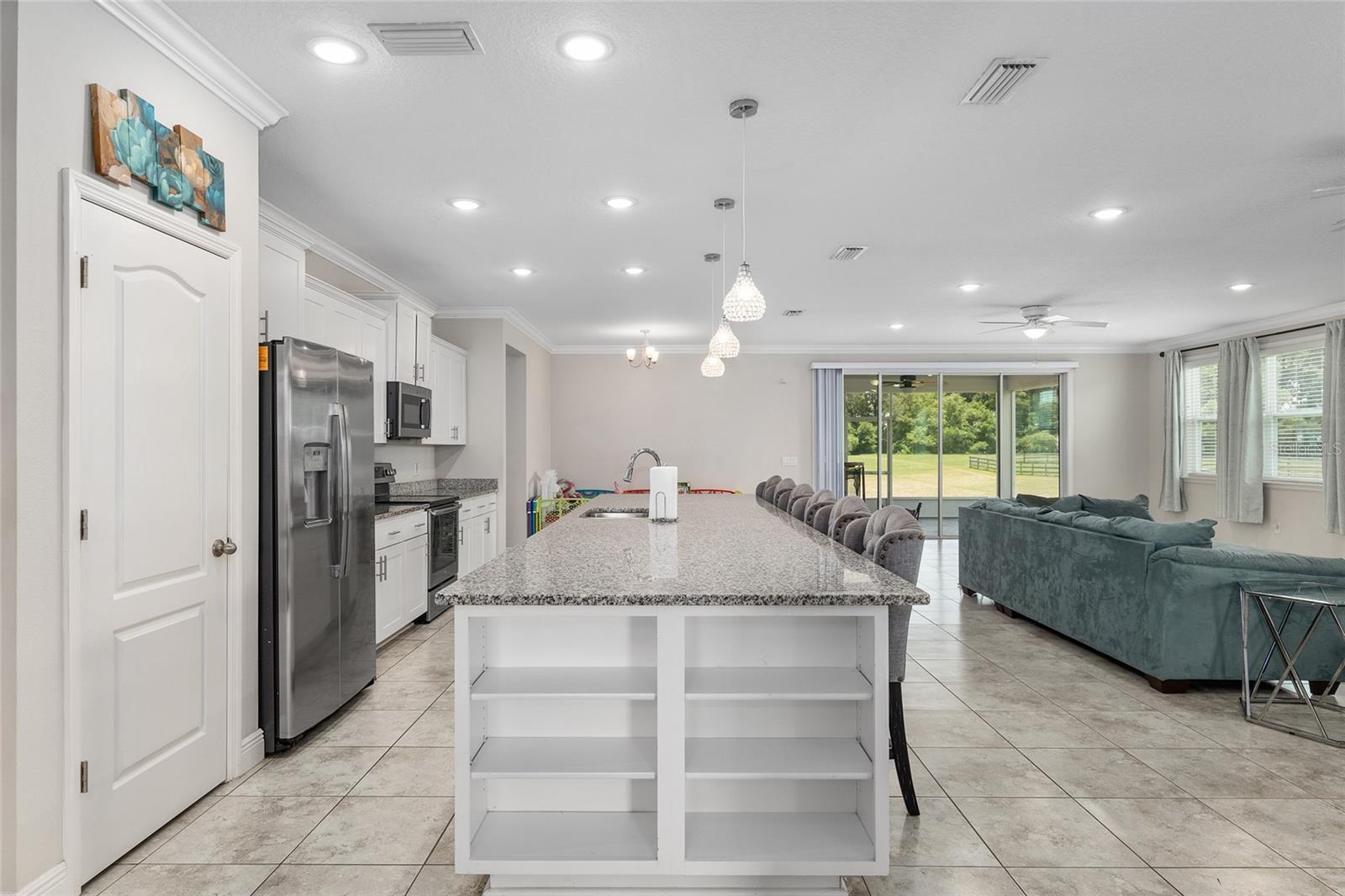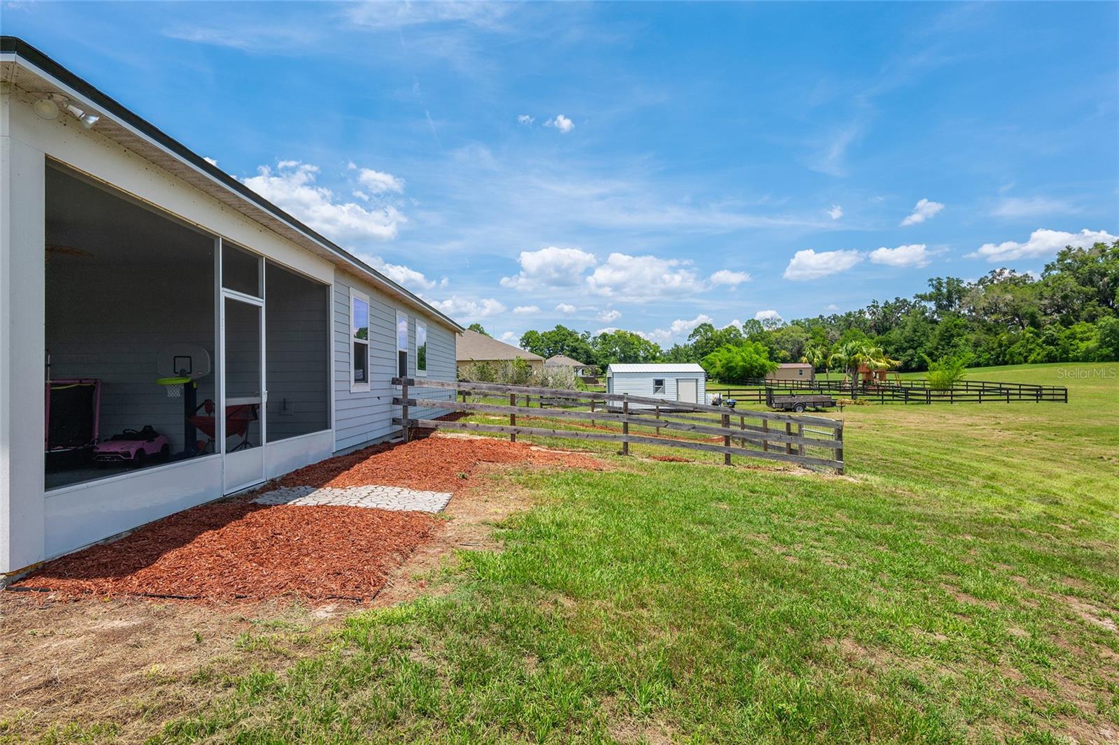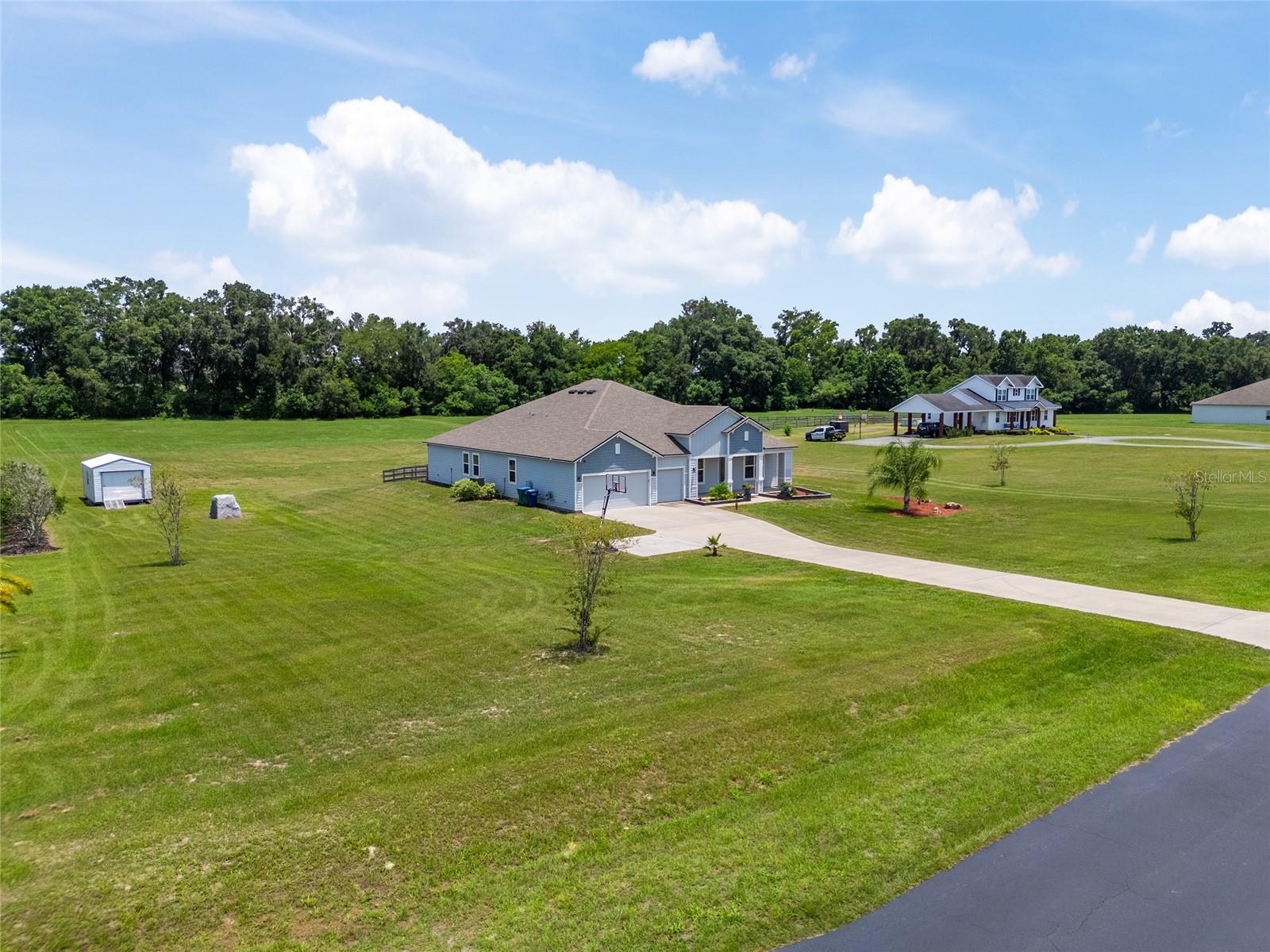 Immerse yourself in tranquility on 2.95 acres in Half Moon Station! This beautifully appointed 4-bedroom, 3-bathroom home, offering 3,100 square feet of living space, provides the perfect blend of privacy and convenience while nestled within a gated community located between Archer and Newberry. The open concept design seamlessly integrates the kitchen, living room, and dining area, creating a perfect flow for entertaining or relaxing. The modern kitchen boasts ample counter space, granite countertops, and stainless steel appliances, making meal prep a breeze. Natural light floods the space, highlighting the home's elegance. The split-bedroom plan offers tranquility and privacy. The primary suite, situated at the back of the house, features a spa-like master bathroom with a walk-in shower, dual vanities, a soaking tub, and spacious walk-in closet, providing a luxurious retreat. Two guest rooms and a guest bath are located at the end of the hall and a fourth bedroom and third bathroom on the other wing offer additional flexibility, ideal for multi-generational living, visitors or a dedicated home office. Step outside and enjoy the tranquility of your 2.95-acre property. The screened lanai overlooks the expansive backyard, perfect for enjoying Florida's sunshine. A fenced area provides a safe haven for your furry friends. And for all your outdoor gear and lawn equipment, a spacious 12 x 20 storage shed offers ample storage space. Additional highlights include a three-car garage with ample storage space for all your needs, plus a tankless water heater and Trane HVAC system to ensure energy efficiency.