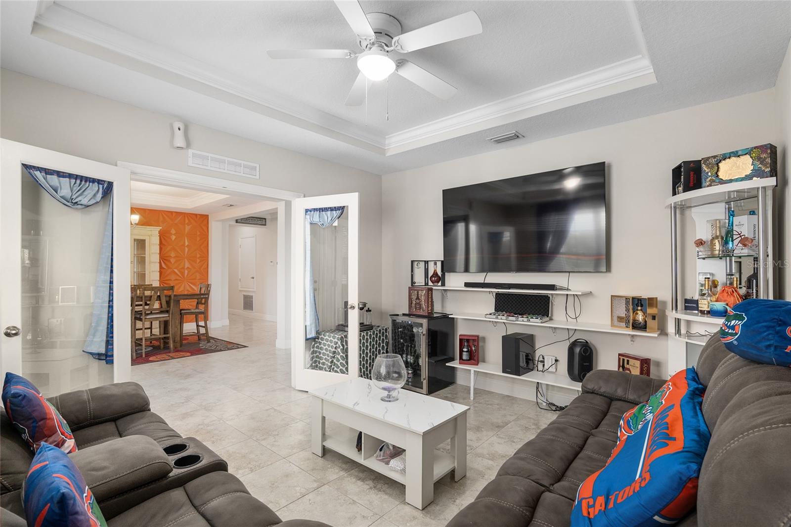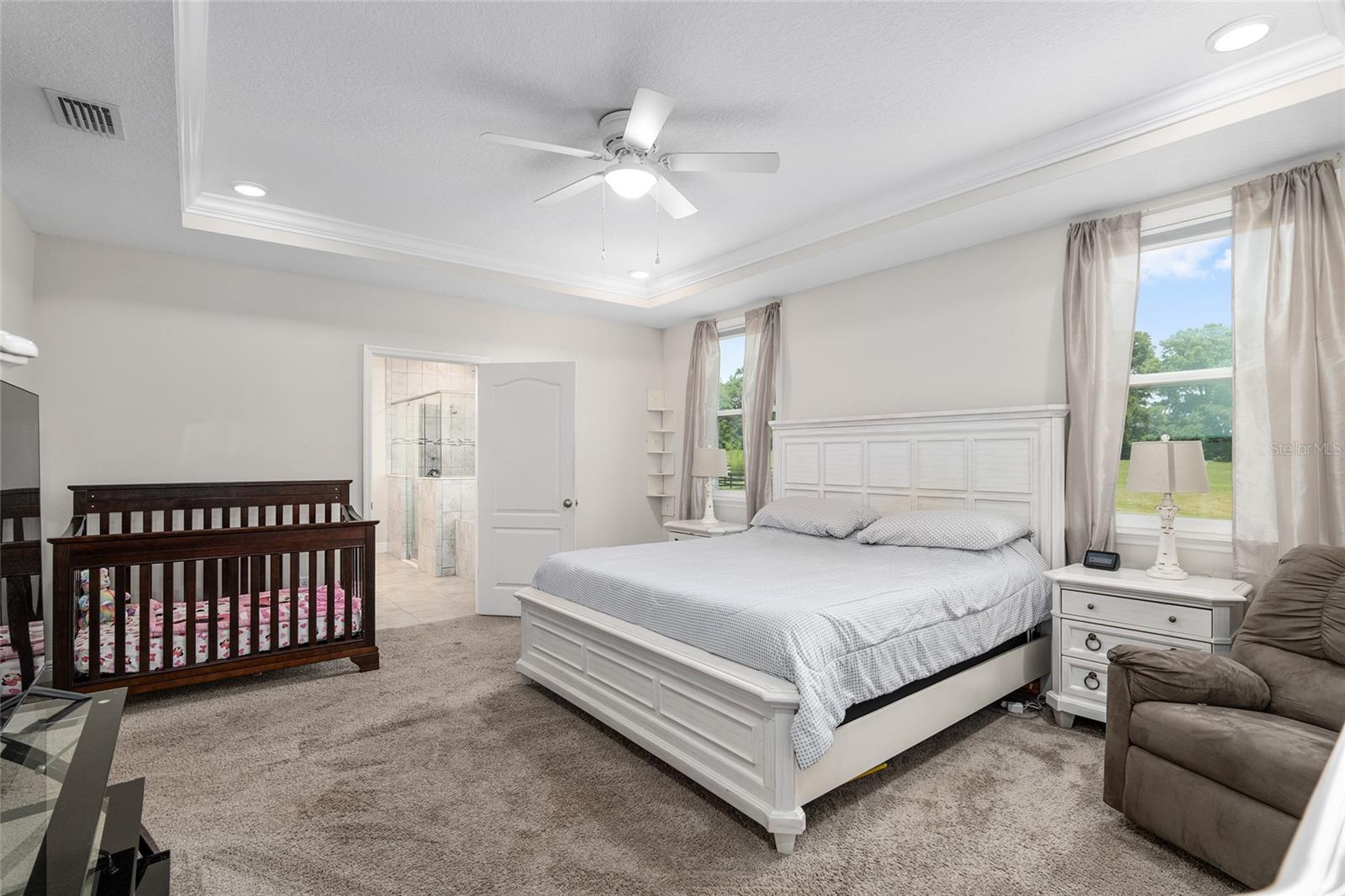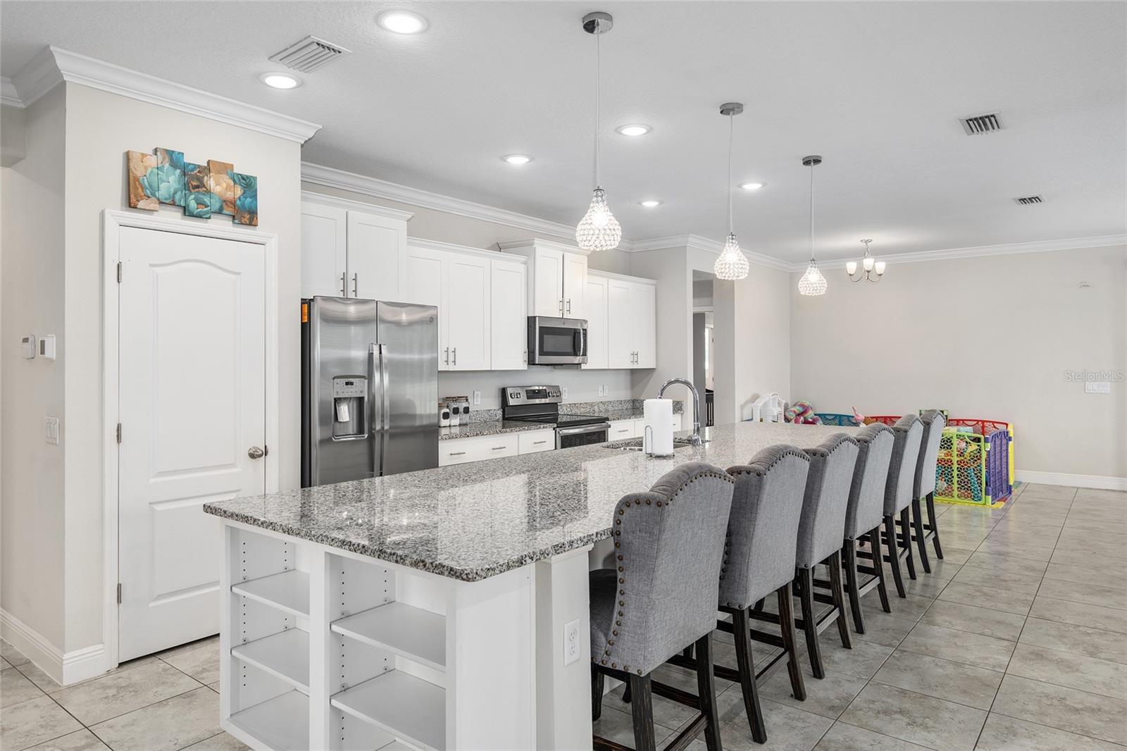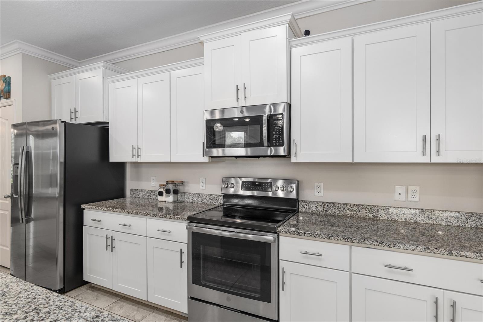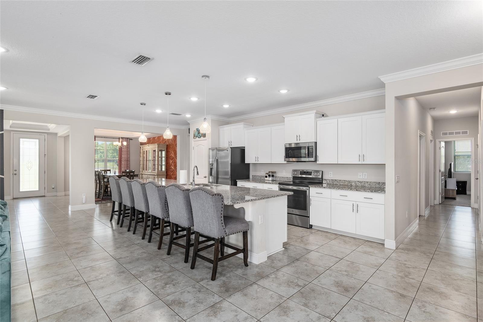 Immerse yourself in tranquility on 2.95 acres in Half Moon Station! This beautifully appointed 4-bedroom, 3-bathroom home, offering 3,100 square feet of living space, provides the perfect blend of privacy and convenience while nestled within a gated community located between Archer and Newberry. The open concept design seamlessly integrates the kitchen, living room, and dining area, creating a perfect flow for entertaining or relaxing. The modern kitchen boasts ample counter space, granite countertops, and stainless steel appliances, making meal prep a breeze. Natural light floods the space, highlighting the home's elegance. The split-bedroom plan offers tranquility and privacy. The primary suite, situated at the back of the house, features a spa-like master bathroom with a walk-in shower, dual vanities, a soaking tub, and spacious walk-in closet, providing a luxurious retreat. Two guest rooms and a guest bath are located at the end of the hall and a fourth bedroom and third bathroom on the other wing offer additional flexibility, ideal for multi-generational living, visitors or a dedicated home office. Step outside and enjoy the tranquility of your 2.95-acre property. The screened lanai overlooks the expansive backyard, perfect for enjoying Florida's sunshine. A fenced area provides a safe haven for your furry friends. And for all your outdoor gear and lawn equipment, a spacious 12 x 20 storage shed offers ample storage space. Additional highlights include a three-car garage with ample storage space for all your needs, plus a tankless water heater and Trane HVAC system to ensure energy efficiency.