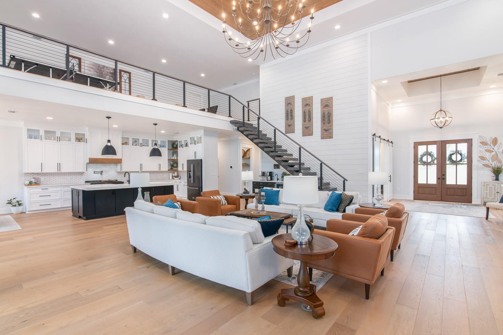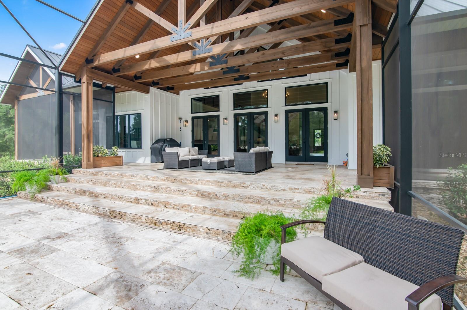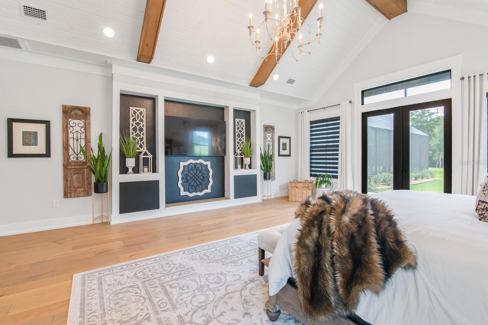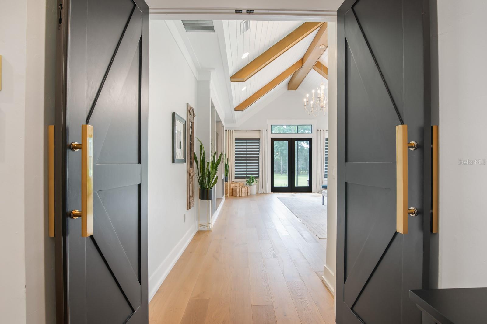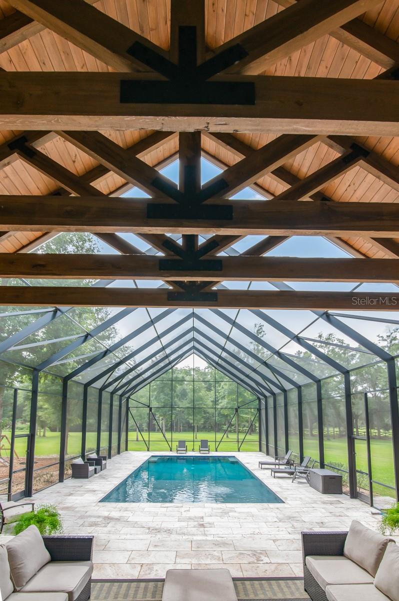 Experience refined country living in this remarkable custom-built home located within the prestigious, gated Charleston neighborhood. Set on over 6 acres, this 4-bedroom, 3.5-bath residence includes a private study, entertainment room, loft, and dedicated storage space—offering luxury and flexibility for any lifestyle. Step inside through an impressive entryway that reveals soaring 23-foot ceilings adorned with cypress tongue-and-groove accents. Rich wood floors flow throughout the home, complemented by a show-stopping staircase featuring floating solid walnut treads. The gourmet kitchen is designed for both entertaining and everyday living, featuring a large center island, high-end gas range, butler’s pantry, and a coffee/wet bar for added convenience. The open-concept layout seamlessly connects to the great room, where walls of glass overlook the spectacular outdoor oasis. The primary suite is a true retreat, complete with vaulted ceilings, private glass doors leading to the pool area, and a spa-inspired en-suite bathroom. Highlights include a glass-enclosed shower, dual vanities, and a dream-worthy custom walk-in closet with built-in cabinetry and direct access to the laundry room. Step outside to your own private paradise: a screened saltwater pool with hand-built cypress trusses and extensive travertine decking—perfect for year-round enjoyment. Additional features include two tankless water heaters, full-house generator hookup, Central vacuum system and water softener. Four-car garage, large underground propane tank and Horse-friendly property. This home offers a rare blend of luxury, functionality, and space—truly a must-see.