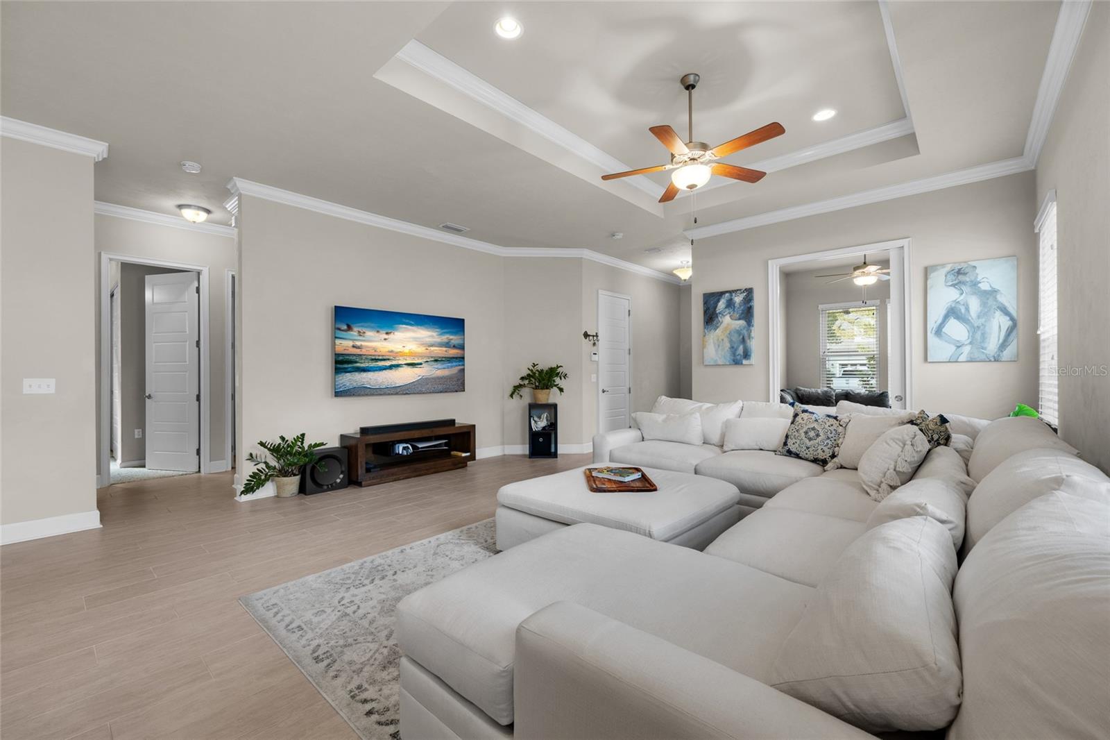 High-Quality Home Built by Robinshore Builders! This is the Arbor Greens home you've been waiting for! From the moment you walk in, you’ll feel the difference in the craftsmanship, the thoughtful design, and the upgrades at every turn. This 3-bedroom, 2-bath plus a private flex room home sits on a beautiful corner lot and is flooded with natural light. The open layout is ideal for entertaining, and the spacious bonus room adds flexibility for a home office, gym, or playroom. Love to cook or entertain? You'll swoon over the exotic Cambria quartz countertops, oversized island, and upgraded gas range. There’s even a built-in wine rack and separate beverage station/coffee bar to elevate your hosting game. Soft-close 42" maple cabinets, walk-in pantry, and stainless appliances complete the chef’s dream kitchen. Luxury features include: 10’ ceilings & 8’ doors throughout, elegant tray ceilings in both the living room and primary suite, wood-look tile for style and easy maintenance, and crown molding and designer finishes throughout. The primary suite is a true retreat with a spa-like en suite bathroom, large shower, double vanities, and a huge walk-in closet. Step out back to your serene screened-in patio which is perfect for morning coffee or unwinding in the evening. This home was built to last with 2x6 exterior framing, blown cellulose insulation, low-e windows, and an engineered post-tension foundation. It's not just beautiful, it's efficient, durable, and thoughtfully constructed. Want a low maintenance lifestyle? The HOA maintains your front and side yard, and the neighborhood features a clubhouse, pool, playground, walking trails, and sidewalks. Zoned for top-rated schools and ideally located just minutes from Publix, Tioga Town Center, I-75, UF, Shands, and more. Bonus offer: Get an additional 1% buyer credit when you use our preferred lender! Don’t miss this standout home in a highly sought-after neighborhood. Schedule your private tour today!