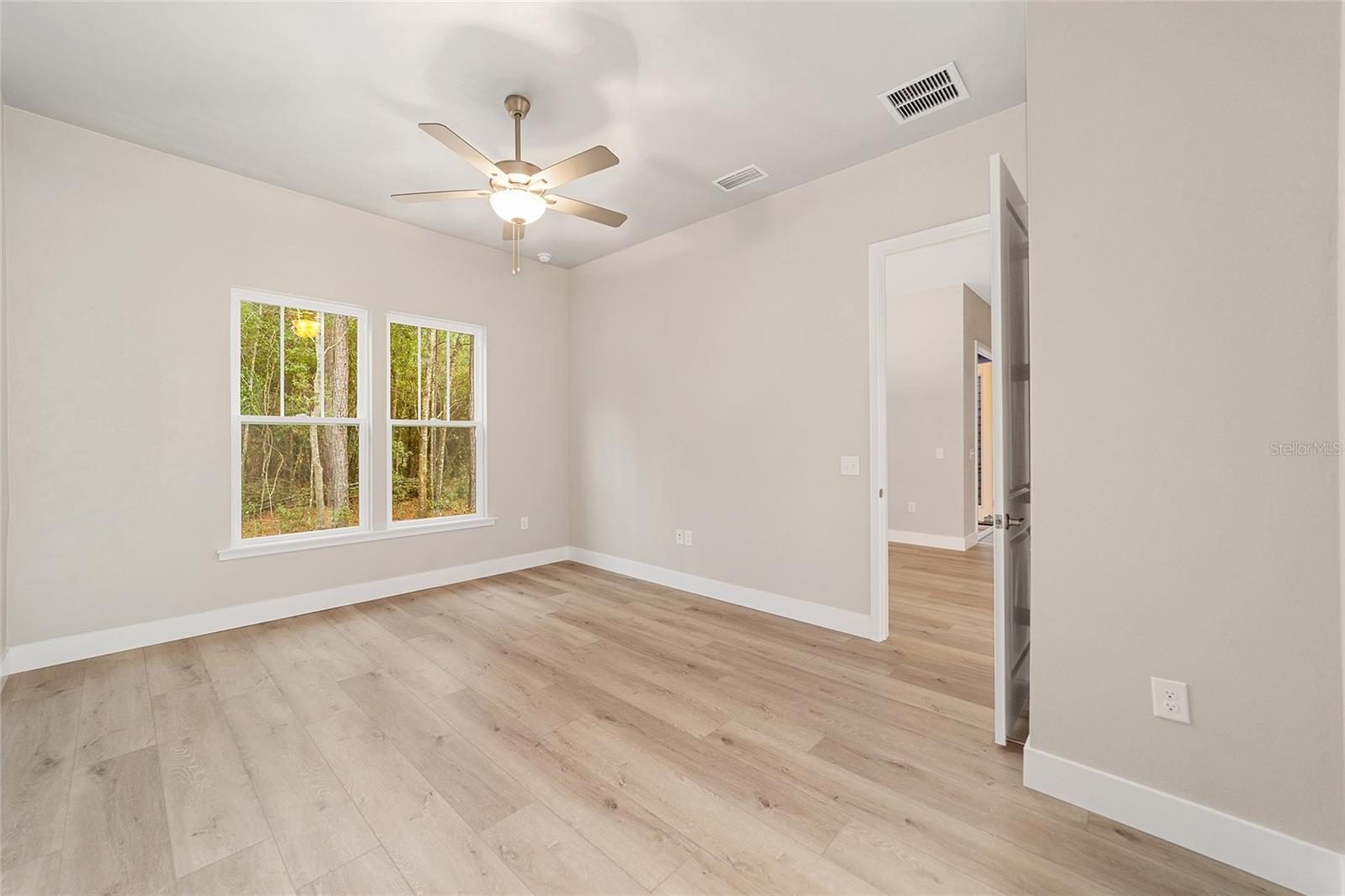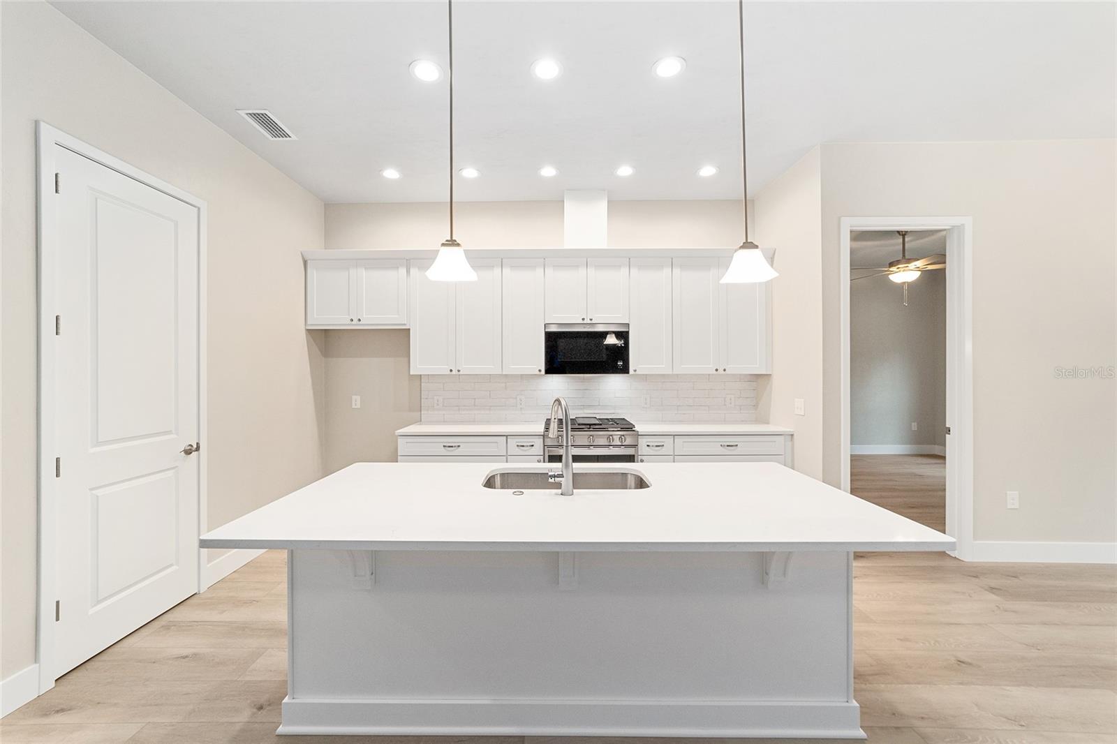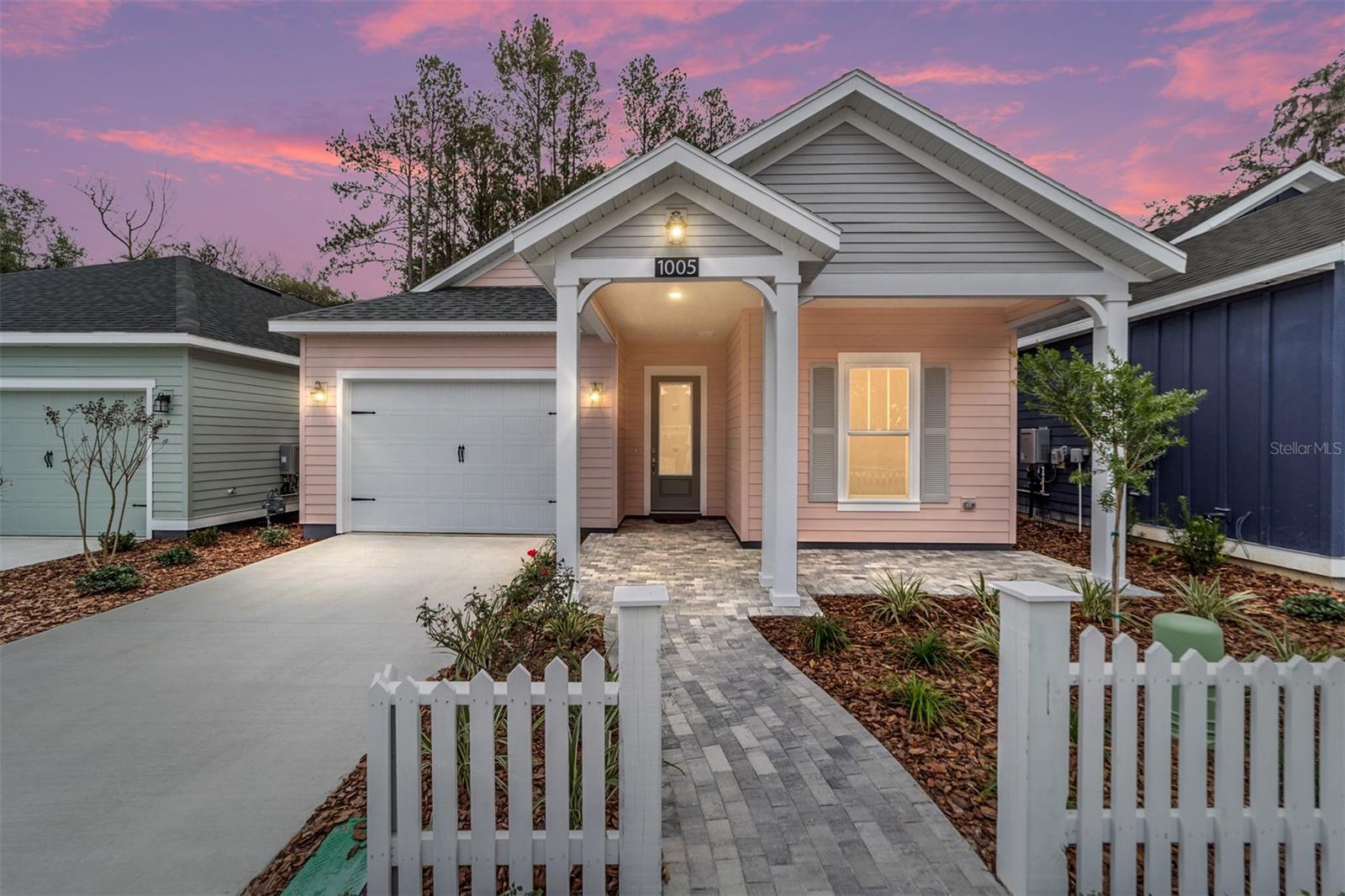 AVAILABLE NOW! NO CDD. Move-in ready NEW construction with a 1% builder credit toward buyer closing costs! The Ramona II Model by the Builder of the Year, Kara Bolton Homes, is a spacious 3 bedroom/2 bath with a 1 1/2-car garage and inviting front porch. The home features wood look luxury plank flooring throughout the entire home. With 10 ft. ceilings and 8 ft. doors, the open floor plan is spacious and inviting. The kitchen features ample lighting, quartz countertops, undermount sink, solid wood cabinets with soft close drawers and stainless-steel appliances including a gas stove, with over the range vented microwave, dishwasher and disposal. The Living Room features trey ceiling and glass doors leading to a covered and screened porch/lanai area, creating an indoor/outdoor living space. The impressive Primary Suite includes a large walk-in closet with en-suite bathroom with an oversized walk-in shower, quartz topped double vanity and water closet. The two additional bedrooms are spacious and comfortable, with a stylish second bath that includes a tiled shower/bath and quartz finishes. Modern move in ready upgrades include window blinds for added privacy, endless hot water from a tankless gas hot water heater, a smart deadbolt, and coach lights on a photocell. Fully landscaped eco-friendly Zoysia sod with irrigation. The impressive exterior includes Hardie board siding and decorative pavers. Low $110 monthly HOA covers COX high speed internet along with access to pool, clubhouse, tennis and pickleball courts, and partial front maintenance. Minutes from shopping and dining, only 4.5 mi to North Florida Regional Hospital, 11 mi to Shands and VA Hospitals and 8 mi to UF. Schedule your showing today! Please verify current school zones with ACSB.