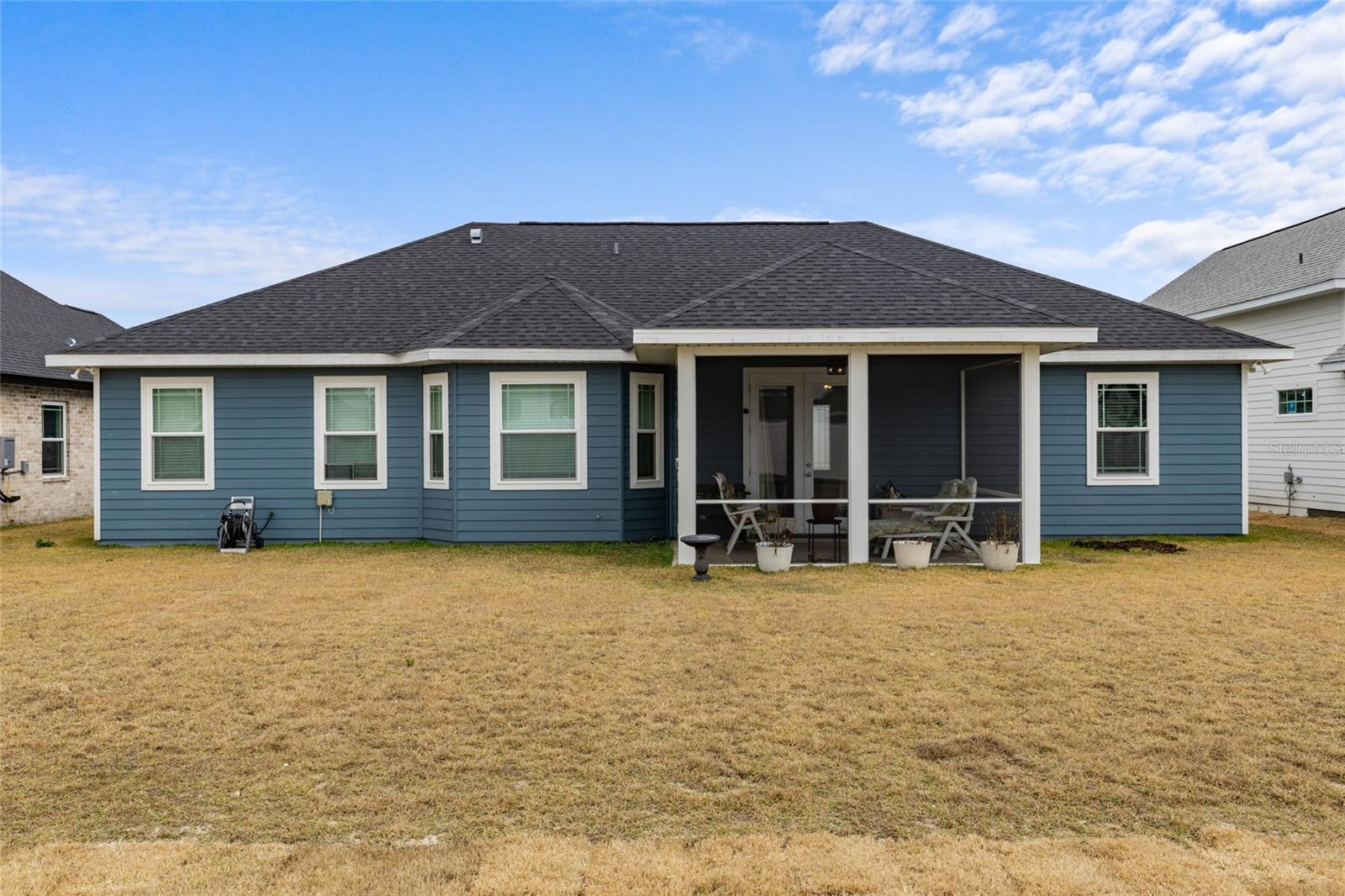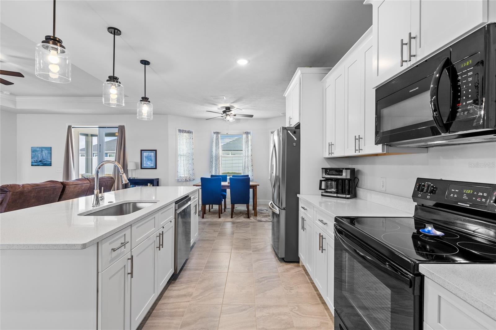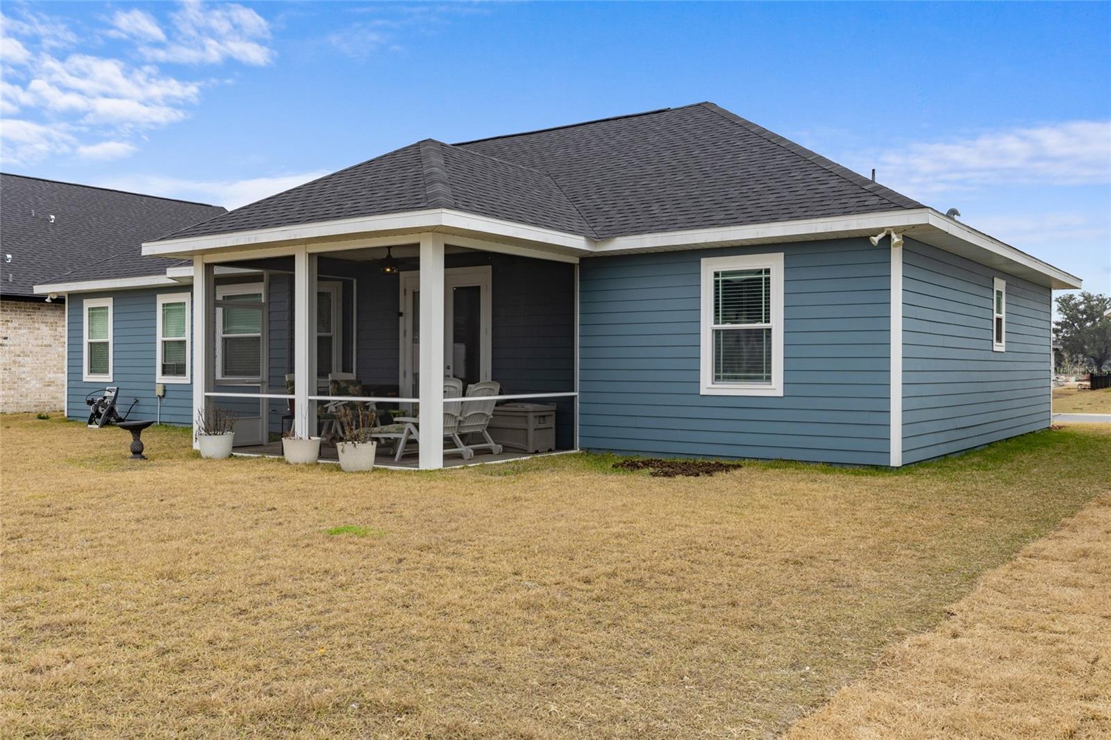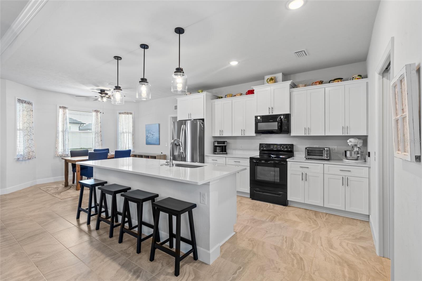 All of the luxury of new construction without the new construction prices or wait time! This gorgeous home is less than 2 years old and is brimming with upgrades throughout. Surrounded by finished homes (no noisy construction next door), on the nicest street in the neighborhood! Inside you’ll find tall ceilings with, upgraded light fixtures, and an abundance of natural light thanks to all of the windows and glass front and back doors. You’ll also notice the upgraded tile floors that stay cool all summer long, and are so easy to clean. The open concept floor plan makes this home feel even more spacious! The upgraded kitchen features a massive island, upgraded quartz counter tops, and all appliances are included (unlike new construction). Off the kitchen is a spacious dining nook that seats up to six, and on the other side of the kitchen/ living room you’ll find a second formal dining area that the current owner uses as a flex space. The king-sized primary suite boasts raised ceilings, a HUGE walk in closet, and an en-suite bathroom with dual sink vanity, shower, and separate bathtub. Across the home are two spacious guest suites separated by the guest bathroom. Off the back of the home is a screen enclosed back porch overlooking the large back yard. This is a home you don’t want to miss!