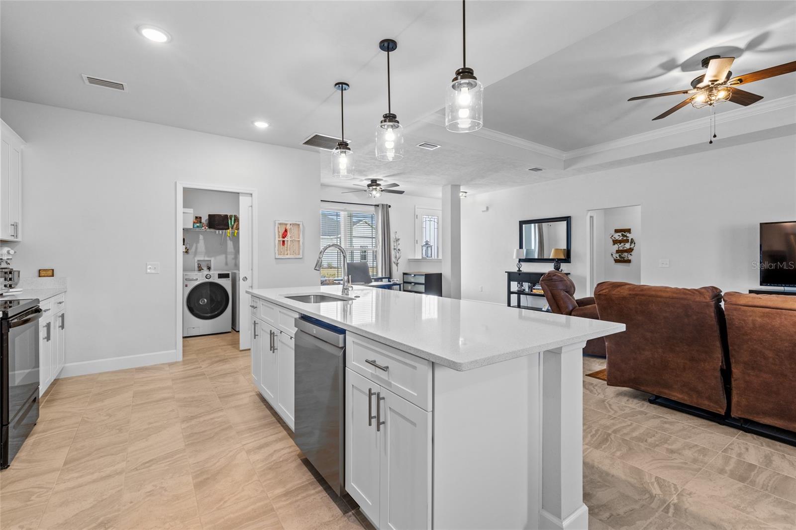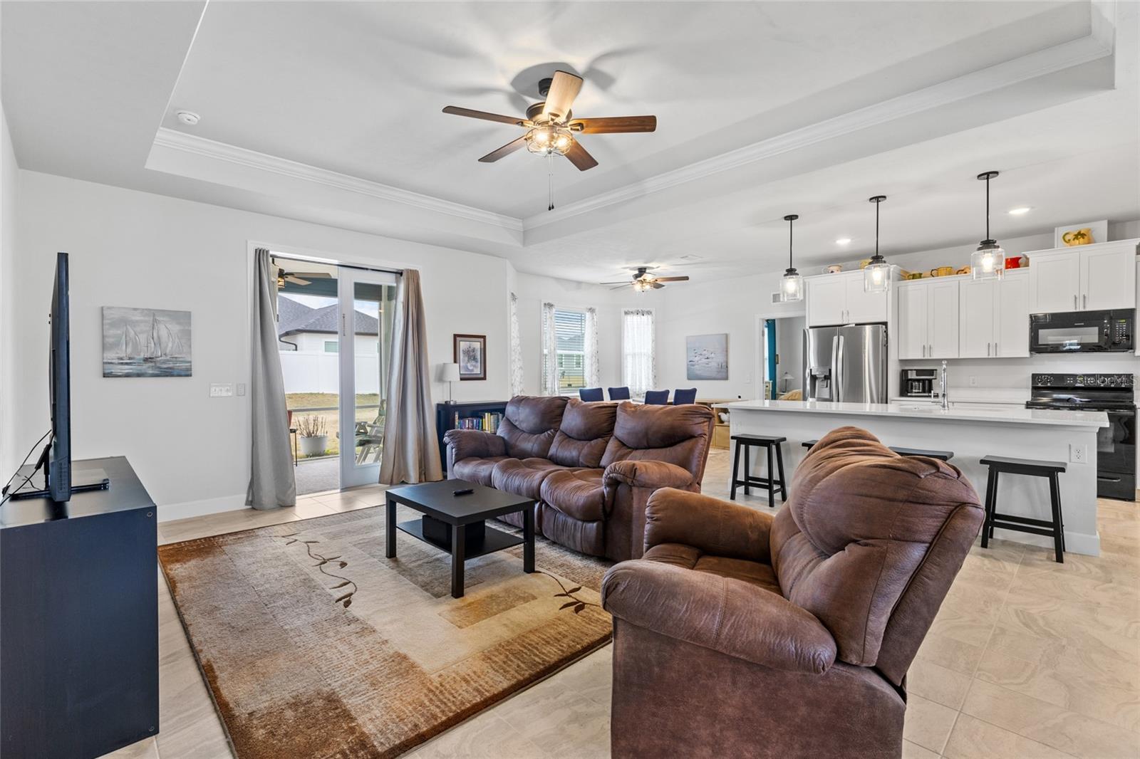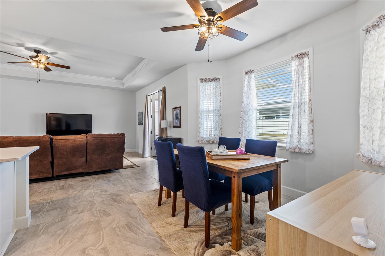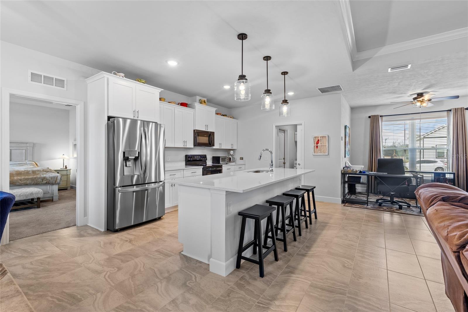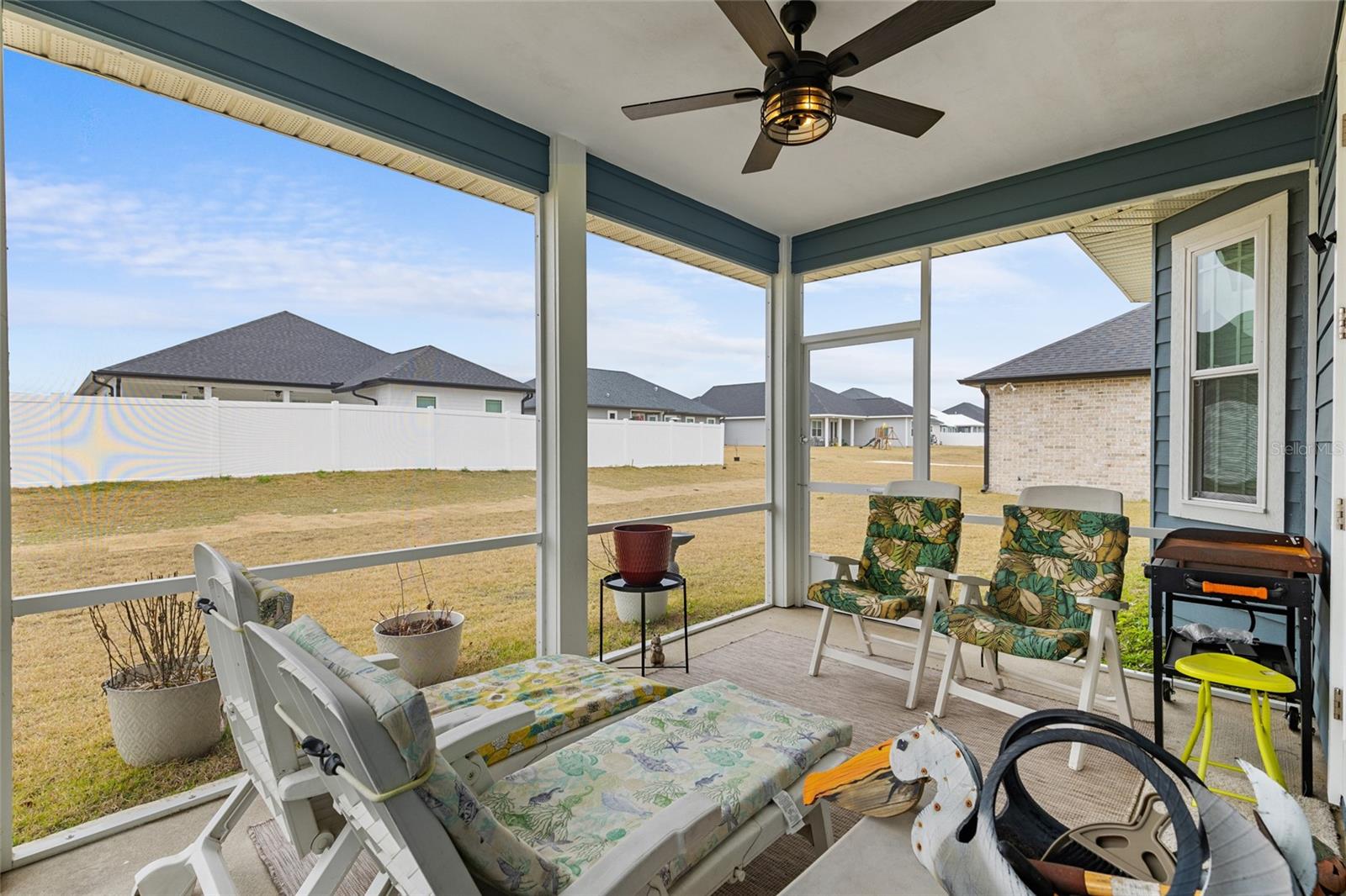 All of the luxury of new construction without the new construction prices or wait time! This gorgeous home is less than 2 years old and is brimming with upgrades throughout. Surrounded by finished homes (no noisy construction next door), on the nicest street in the neighborhood! Inside you’ll find tall ceilings with, upgraded light fixtures, and an abundance of natural light thanks to all of the windows and glass front and back doors. You’ll also notice the upgraded tile floors that stay cool all summer long, and are so easy to clean. The open concept floor plan makes this home feel even more spacious! The upgraded kitchen features a massive island, upgraded quartz counter tops, and all appliances are included (unlike new construction). Off the kitchen is a spacious dining nook that seats up to six, and on the other side of the kitchen/ living room you’ll find a second formal dining area that the current owner uses as a flex space. The king-sized primary suite boasts raised ceilings, a HUGE walk in closet, and an en-suite bathroom with dual sink vanity, shower, and separate bathtub. Across the home are two spacious guest suites separated by the guest bathroom. Off the back of the home is a screen enclosed back porch overlooking the large back yard. This is a home you don’t want to miss!