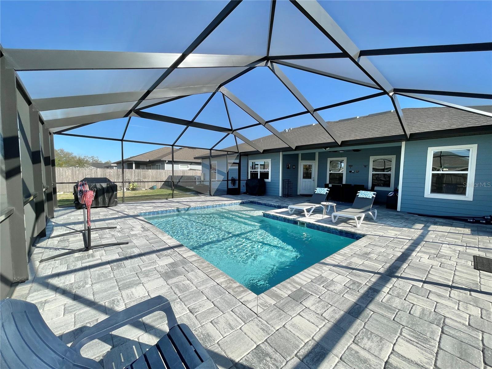 4 Bedroom Pool Home in Newberry Oaks! Discover this spacious 4-bedroom, 2-bathroom home with 2,649 sq. ft. of total space (1,979 sq. ft. heated and cooled) in the desirable Newberry Oaks neighborhood. Enjoy an in-ground saltwater, heated pool with a large screen enclosure and a beautiful pavered patio. The bright, open kitchen features granite countertops, a breakfast bar, breakfast nook, wood cabinets, a tile backsplash, and stainless steel appliances, including a built-in microwave. Laminate floors flow throughout the great room, dining area, foyer, primary bedroom, and breakfast nook, while tile and carpet cover the bathrooms and additional bedrooms. The living room boasts a tray ceiling with crown molding and beam details. The spacious primary bedroom features a tray ceiling with beams, two walk-in closets, a luxury bath with double vanities, a walk-in shower, and a separate soaking tub. Additional highlights include an oversized 8' 2-car garage with an automatic opener, wiring for electric car charger, a new natural gas tankless water heater, Low-E vinyl windows for energy savings, and City of Newberry utilities. Smart home with Lutron electric switches and updated lighting throughout. The large fenced lot offers privacy and plenty of space for outdoor activities. Conveniently located near Champions Park, Easton-Newberry Sports Complex, and the new Publix marketplace, with plenty of retail and commercial growth to follow. No HOA fees. Clay electric, city of Newberry for water and sewer, Florida Public Utilities for natural gas. Call today for an appointment!