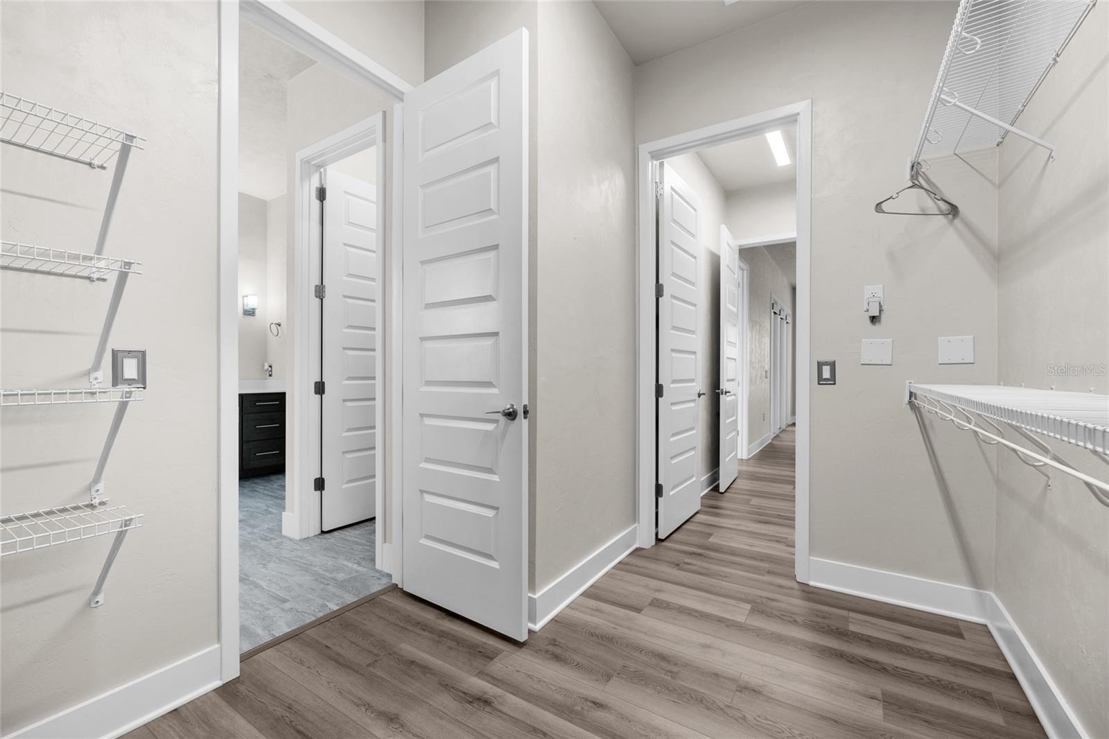 One or more photo(s) has been virtually staged. Welcome home to this turn-key 4 bedroom / 3 bathroom plus office located in Fairway Pointe the heart of Jonesville. Pride in ownership shines through with this three-way split, open floorplan spanning over 2350 square feet of living space. Streams of natural light flood in through the numerous windows and office skylights, showcasing the 10 foot ceilings and 8 foot doors with rich brown-toned luxury vinyl plank flooring in the main living areas. Great room features trey ceiling and crown molding which encompasses the designated dining and living areas all with great views of the lanai and open green space. Kitchen boasts quartz countertops, gas range, tiled backsplash, built-in oven/microwave and plenty of soft-close cabinets and drawers for all your culinary needs. Large functional island with additional storage, trash pull-out, breakfast bar seating, plus a large walk-in pantry. The primary bedroom is robust in size accented with trey ceiling and crown molding, additionally providing direct access to screened lanai through glass door, the en-suite bathroom boasts glass enclosed shower with inset niche, separate double vanity with granite countertops, window, water closet and linen closet. Continuing the seamless transition of the primary suite is a large walk-thru closet which connects the closet directly to the laundry room. The split floorplan features the two additional bedrooms both with built-in closets and conveniently located second full bath with large granite vanity and tub/shower combo. Large hallway linen closet providing additional storage. Finishing the three-way split floorplan is a private fourth bedroom featuring an en-suite bathroom with single granite vanity, tub/shower combo, transom window and walk-in closet. The versatile private office/flex space with two access points has 2 skylights and can be transformed to meet your needs. Bring the outside-in when you open the French doors to the covered screened lanai which overlooks the expansive green space and provides outdoor blinds for additional privacy. Yard is fully fenced with additional patio area and features pup-friendly turf for easy clean up and stays looking fresh and continuously green (no grass). 2 car garage with attic access, flooring has been added for easy storage of all those seasonal items. Tankless hot water heater, irrigation, HOA fee includes partial front yard maintenance, high-speed COX internet, pool, clubhouse, covered outdoor pavilion, tennis and pickleball courts. NO CDD fee! Located in prime location and walkable to grocery, dining, and more. Just a quick commute to I-75, entertainment, fitness facilities, schools and medical.