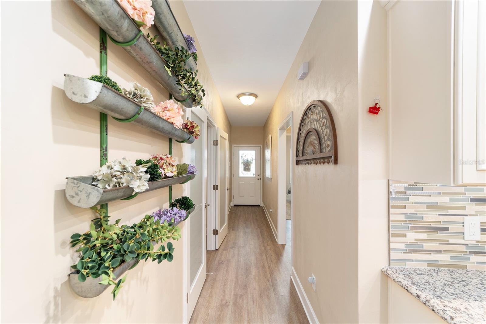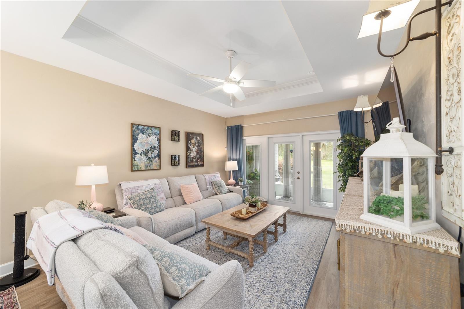 Welcome to Villas of West End, where style, comfort, and convenience come together. This 2 Bedroom, 2 Bathroom Townhome PLUS an Office/Flex space (complete with frosted French doors) offers over 1,500 square feet of thoughtfully designed living. Originally built in 2019 as a Custom- Kara Bolton Model home, it showcases upgrades and details that set it apart. Step inside to find Luxury Vinyl Plank flooring throughout—No Carpet anywhere! The Open-concept layout features a spacious Great room with a tray ceiling, perfect for both living and dining. The Chef’s kitchen is a standout with SS appliances, Granite countertops, tiled backsplash, recessed lighting, and a breakfast bar for casual dining. The huge Primary suite overlooks the private backyard greenery and includes an En suite bathroom with a walk-in shower, plus a large walk-in closet that connects directly to the laundry room. The Split floor plan offers privacy, with a secondary bedroom and bathroom on the opposite side of the home. Enjoy the Florida lifestyle year-round from the screened-in back patio, taking in serene views of the expansive green space and nature. Additional highlights include a covered front porch, beautifully landscaped entry, and a one-car garage. Living in Villas of West End means maintenance-free living, with HOA covering exterior and lawn care. Community amenities include two sparkling pools, a clubhouse, outdoor pavilion, tennis and pickleball courts, plus weekly activities and programs for residents. All of this just minutes to the Town of Tioga, Gainesville Health & Fitness, shopping, restaurants, Jonesville, and easy access to I-75. This is the perfect blend of modern finishes, low-maintenance living, and resort-style amenities. Don’t miss your chance to call this move-in-ready villa home!