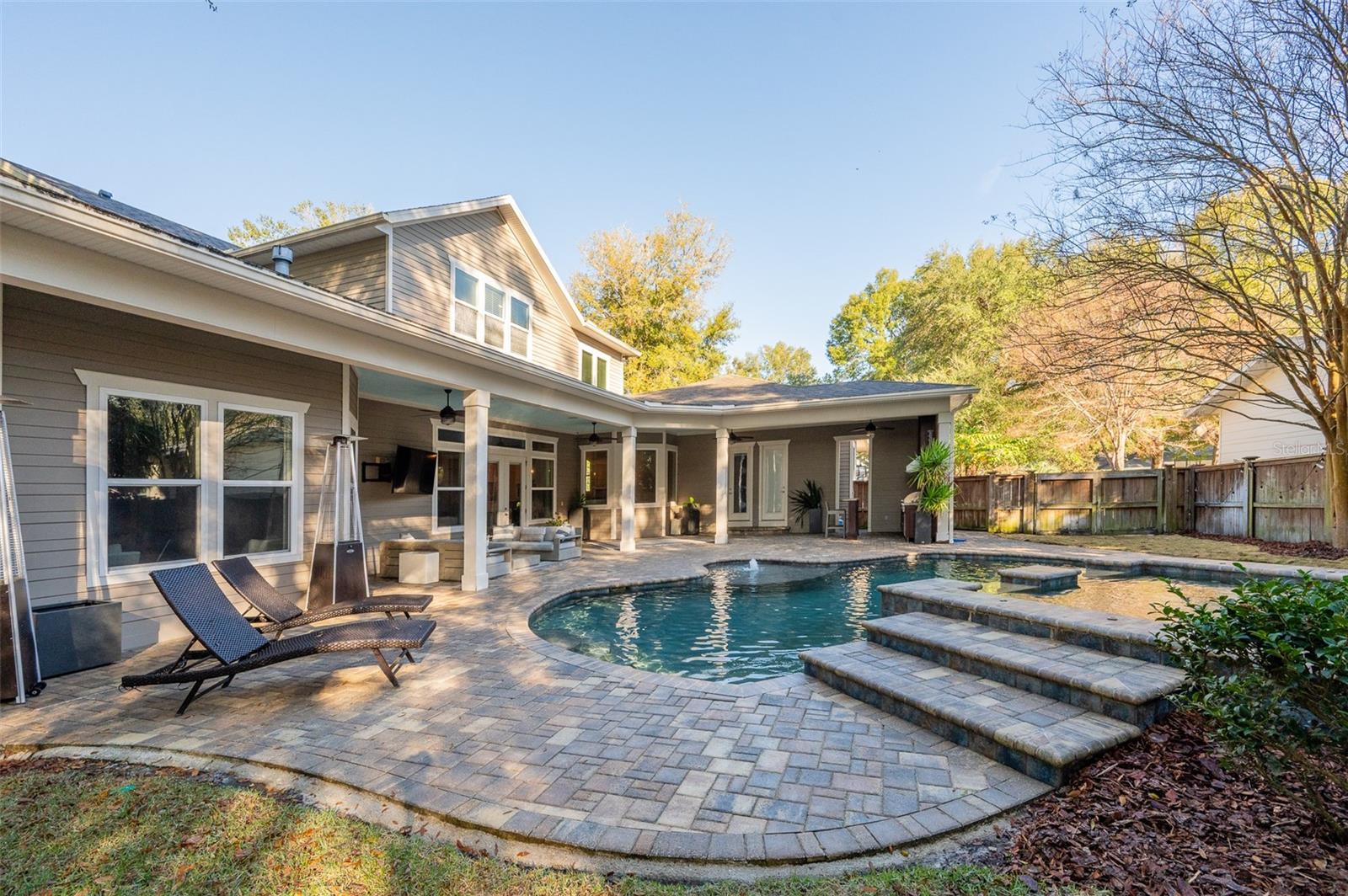 Step into this stunning former Pridgen Parade POOL Home that boasts 4 Bedrooms, 3.5 Bathrooms PLUS a STUDY (w/closet), formal sitting/dining room, HUGE Media Room and AC'd 3 car garage with gym equipment! This home showcases extensive custom trim work, coffered ceilings, and even a "hidden" trimmed door for secret storage. Whether you are hosting a formal dinner or a casual movie night, the flow is perfection—complete with a pass-through Butler/wine bar and a massive great room featuring built-in surround sound. The chef-inspired kitchen is the true heart of the home, boasting a massive island, gas cooking, a farmhouse sink, and a walk-in pantry designed to keep your counters clutter-free. Just off the kitchen, the arrival center keeps life organized with a built-in desk and drop zone. Retreat to the main-floor primary suite, a private sanctuary featuring a sitting area with pool views, two oversized custom closets, and a spa-like bathroom that defines luxury. Upstairs, the entertainment continues in a huge media room with a full entertainment center. Three additional bedrooms—all with walk-in closets and solid shelving—ensure everyone has their own space, including a dedicated en-suite and a smart Jack-and-Jill bath layout. The outdoor living space is a dream come true on a premium, fully fenced lot. Spend your weekends lounging by the pool and hot tub, rinsing off in the outdoor shower, or grilling in your summer kitchen. All of this is nestled in the heart of Town of Tioga, just steps away from world-class tennis courts, trails, and the vibrant shops and restaurants of the Town Center.