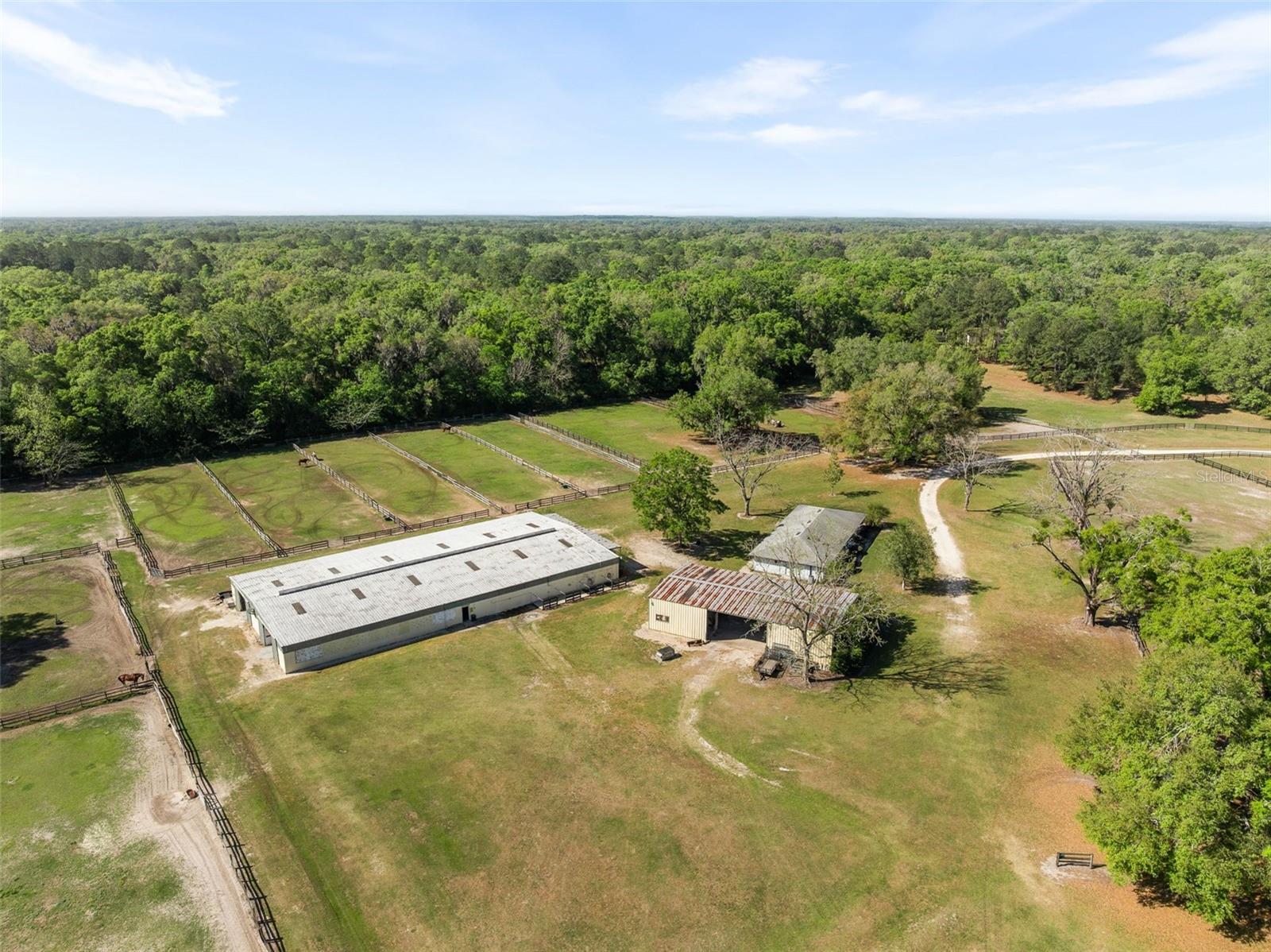 Rare opportunity to acquire a true large scale equestrian property in the heart of Newberry and Jonesville. Situated on 37 acres in highly desirable Marlboro Farms, this 40 stall facility offers a level of infrastructure, functionality, and location that is increasingly difficult to find in Alachua County, approximately 45 minutes from the World Equestrian Center. At the center of the property is a substantial concrete block barn with metal roof and truss construction, built for durability, safety, and long term use. The barn includes 40 stalls, automatic waterers, multiple tack and feed rooms, a fly system, six wash racks including one with hot water, and an efficient layout designed for daily operation. The property features 17 irrigated paddocks with automatic waterers, providing consistent grass and allowing for year round rotation. Additional equestrian improvements include a 150 x 250 irrigated arena with footing, a grass jump field, and an 80 foot round pen with observation deck. A 3,000 square foot metal equipment building with approximately 25 foot ceilings provides substantial storage and operational support. The residential component includes a duplex totaling approximately 2,700 square feet, with a 3 bedroom 1 bath unit and a 1 bedroom 1 bath unit, along with a separate office and bathroom. This allows for staff housing, rental income, or on site management, with the option to build a custom primary residence. Located less than a mile from Publix, Tractor Supply, and restaurants, and just minutes to the Town of Tioga, UF, and Santa Fe College, this property is a rare combination of scale, convenience, and usability within a rapidly growing area. In addition to its current use as a working equestrian facility, the property offers long term flexibility. With the existing plat, there may be potential for additional homesites, subject to county approval, creating further opportunity for future use or investment. Large properties of this scale and capability are rare in this location. This offering presents an opportunity for a trainer, investor, or owner occupant to operate an income producing equestrian business, create a private estate, or capitalize on future potential. Owner financing available.
