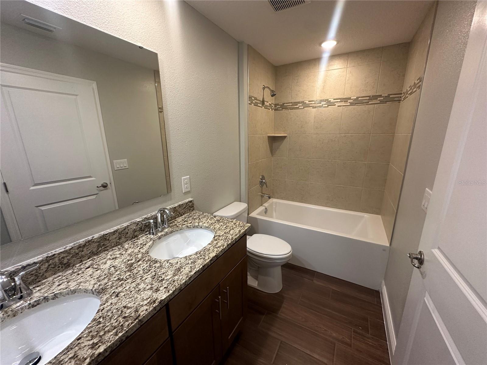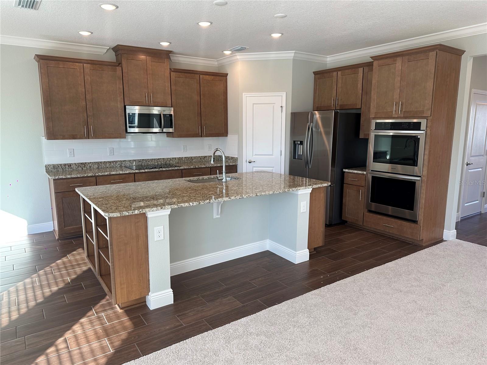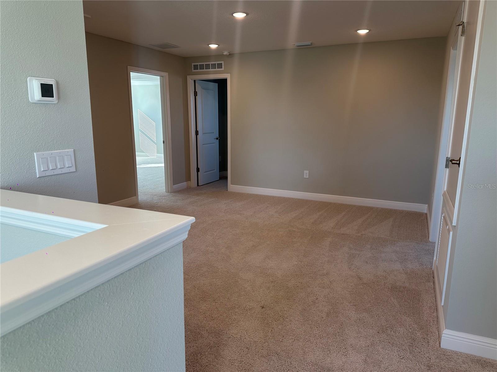 Move in READY! Welcome to the Carlisle, a two-story single-family home designed for comfortable and efficient living. The Carlisle floor plan offers exceptional living space, with 9' ceilings enhancing the open and airy feel throughout the home. The main level features a den with double French doors perfect for a home office, study, or play area, and a guest suite downstairs with its own private bath, offering convenience and privacy. Storage is abundant, with walk-in closets, a walk-in pantry, and an extra spacious garage to keep everything organized. The second floor boasts five bedrooms and additional spaces for gathering, gaming, exercise equipment or work stations, The master suite is a true retreat, complete with a soaking tub, a large shower, and a huge walk-in closet. The full-size laundry room is conveniently located upstairs for easy access. Enjoy outdoor living on the extended back patio, perfect for relaxing or entertaining. This home is landscaped for beautiful curb appeal and features Energy STAR windows and appliances for energy efficiency. With Architectural Shingles providing durability and style, this home is ready to meet your needs. For added convenience and security, this home comes with Ring Video Doorbell, a Smart Thermostat, and a Keyless Entry Smart Door Lock, making it the perfect blend of modern technology and comfort. This popular Carlisle plan is designed to offer both luxury and practicality. Don’t miss the opportunity to make it your own!
