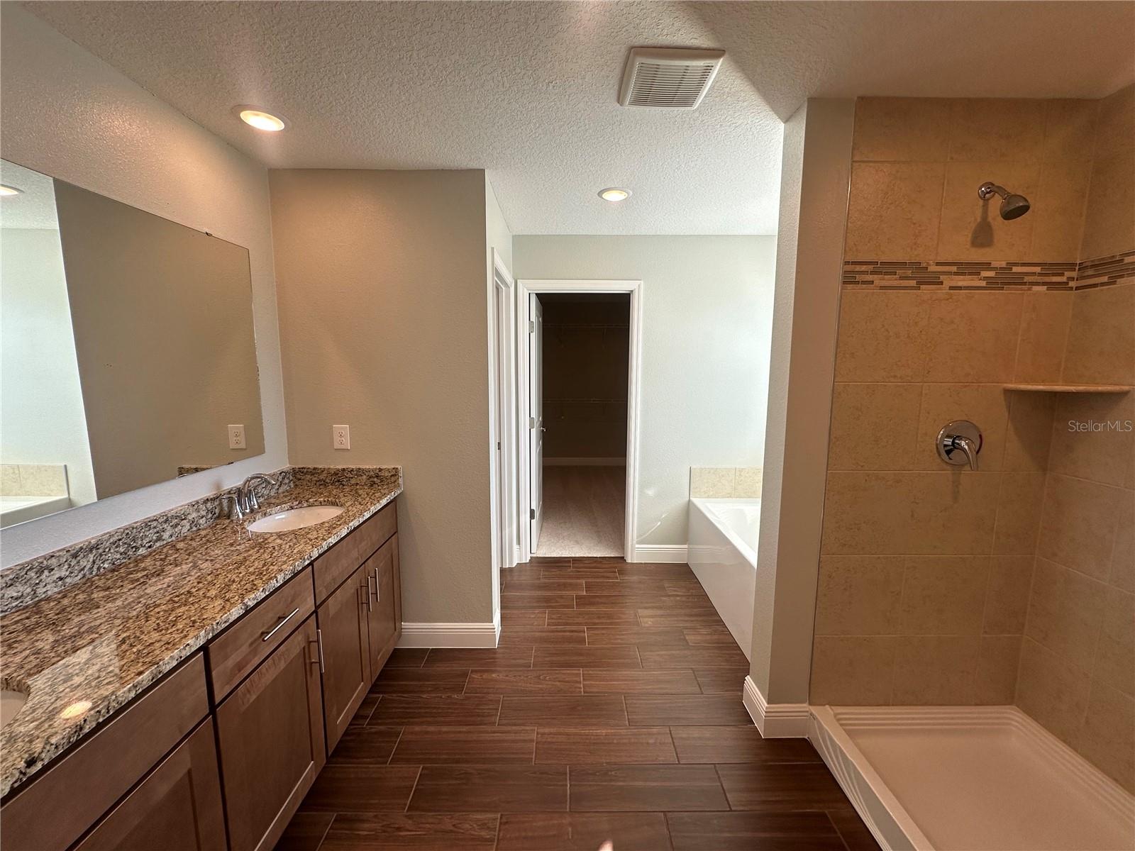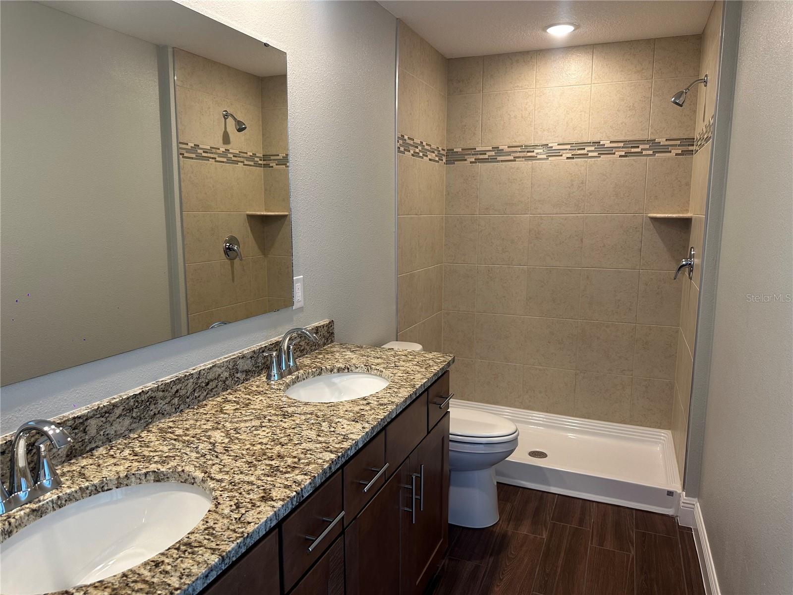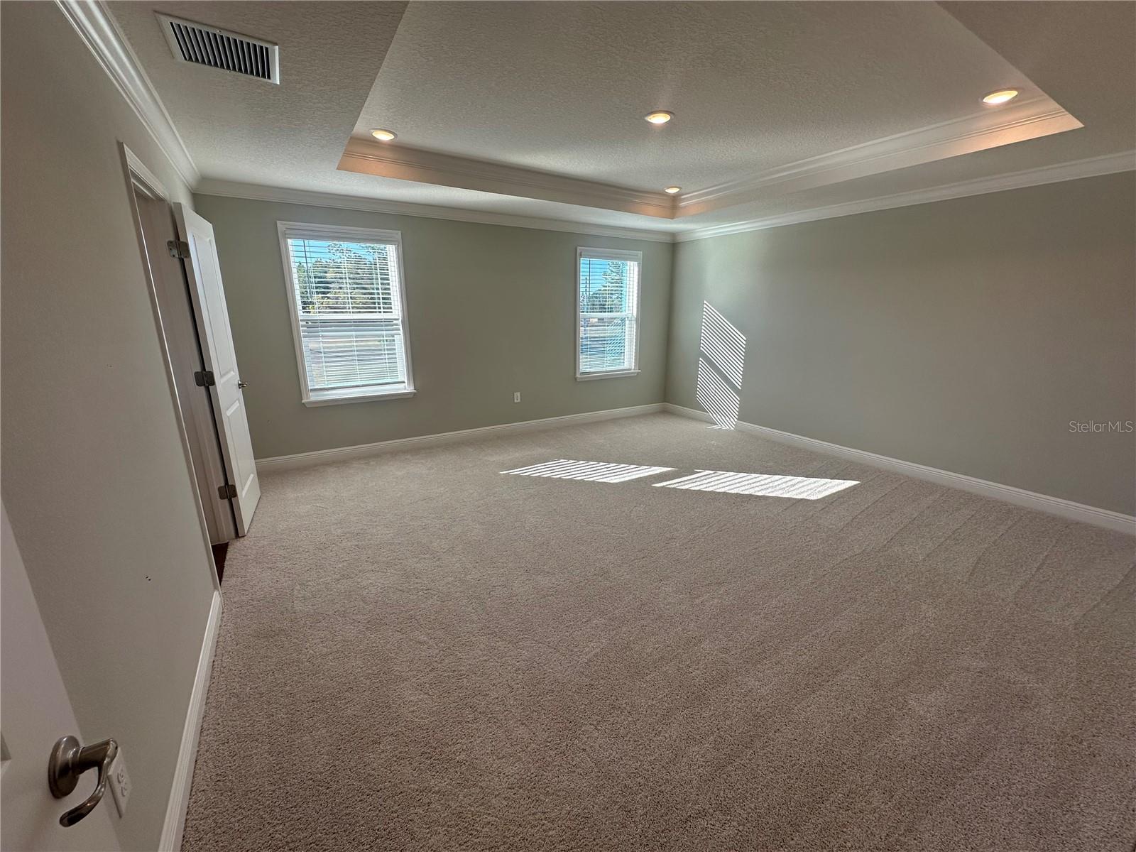 Move in READY! Welcome to the Carlisle, a two-story single-family home designed for comfortable and efficient living. The Carlisle floor plan offers exceptional living space, with 9' ceilings enhancing the open and airy feel throughout the home. The main level features a den with double French doors perfect for a home office, study, or play area, and a guest suite downstairs with its own private bath, offering convenience and privacy. Storage is abundant, with walk-in closets, a walk-in pantry, and an extra spacious garage to keep everything organized. The second floor boasts five bedrooms and additional spaces for gathering, gaming, exercise equipment or work stations, The master suite is a true retreat, complete with a soaking tub, a large shower, and a huge walk-in closet. The full-size laundry room is conveniently located upstairs for easy access. Enjoy outdoor living on the extended back patio, perfect for relaxing or entertaining. This home is landscaped for beautiful curb appeal and features Energy STAR windows and appliances for energy efficiency. With Architectural Shingles providing durability and style, this home is ready to meet your needs. For added convenience and security, this home comes with Ring Video Doorbell, a Smart Thermostat, and a Keyless Entry Smart Door Lock, making it the perfect blend of modern technology and comfort. This popular Carlisle plan is designed to offer both luxury and practicality. Don’t miss the opportunity to make it your own!