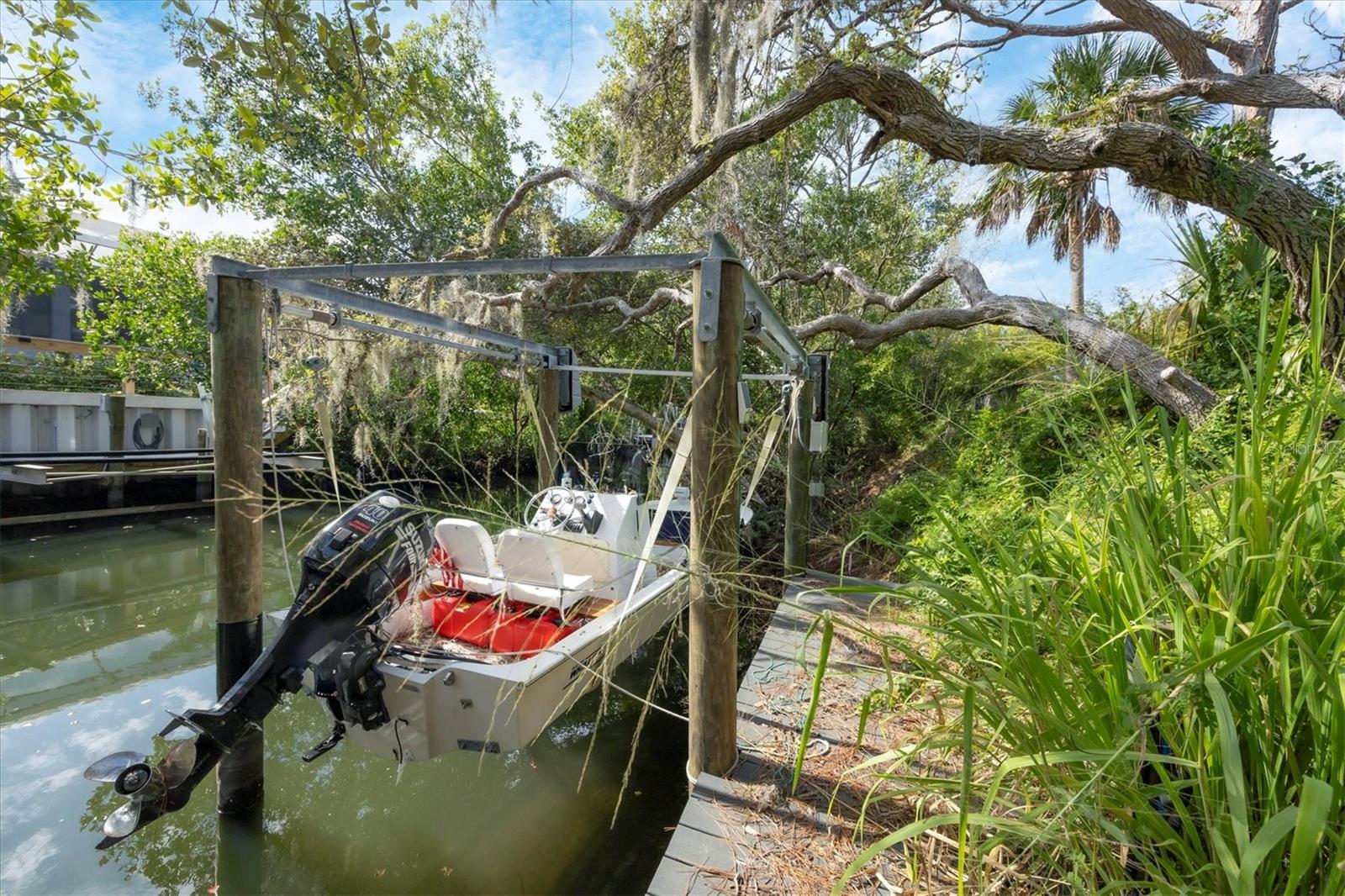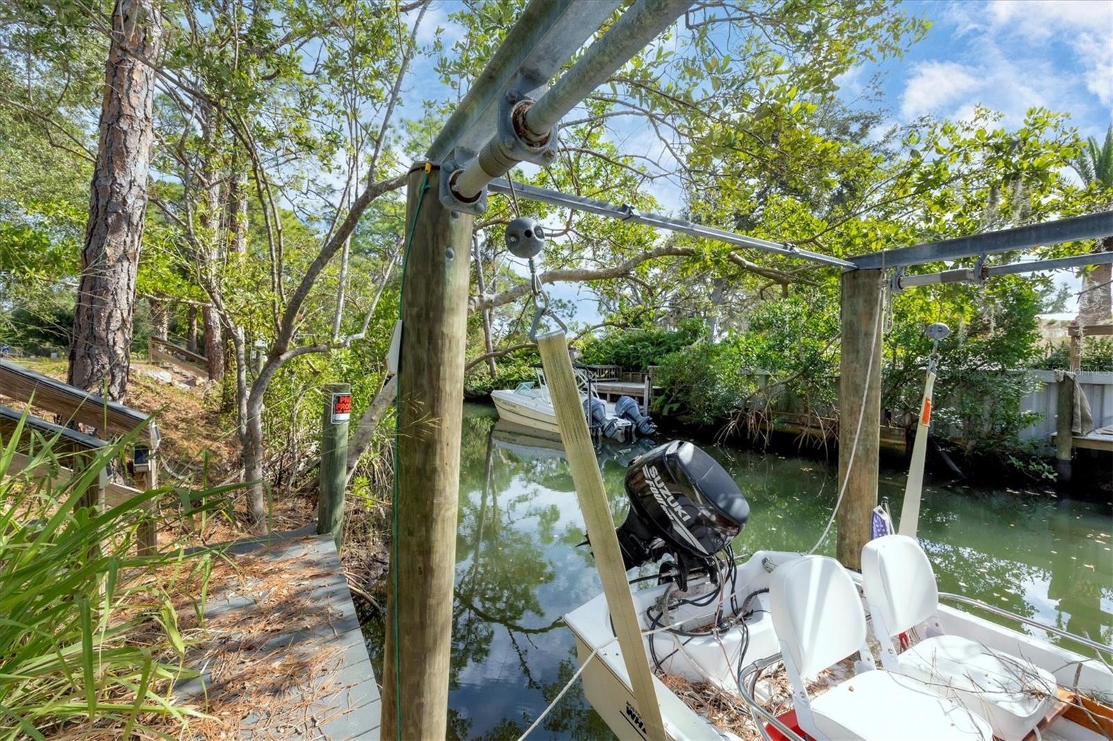 Rarely available- an oversized (16,000+ sq ft) private waterfront lot on saltwater, boatable canal west of Route 41. The lot is ready for your dream home and your boat! lot has a 4'x20' composite dock with a 6,000-pound lift installed. You can be at the Gulf of Mexico by boat in about 15 minutes! There is one fixed bridge (Albee Road Bridge) to the gulf with clearance sufficient for many boats... it ranges from 7'-9' based on the tide. OR you can drop a kayak or paddleboard in the canal and explore the canals that meander through this area of Nokomis. This is YOUR opportunity to build your dream home! You can use the builder of your choice and there are no timeframe constraints about when you build. No HOA or CDD! Your new property is located in Nokmis between quaint Venice and bustling Sarasota, so you are removed from major traffic yet have great options for restaurants, entertainment, beaches, and more. Publix, Post Office, and shopping are all within one mile. Beautiful Nokomis Beach on Casey Key is only 1.5 miles away, perfect for swimming in the beautiful waters of the Gulf of Mexico or relaxing on the beach with your favorite beverage to watch the beautiful Gulf sunsets. Nokomis Beach also offers many activities... yoga and fitness classes on the beach, a playground, Drum Circles, and so much more. There is nearby access to the Legacy Trail where you can bike, run, or walk to downtown Venice, only about 2.5 miles, or head north to Sarasota. This is it! the perfect place where you can live the dream in your custom-built home in Southwest Florida!