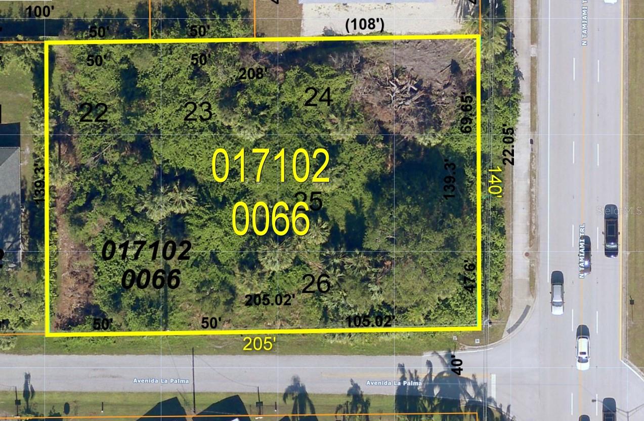 ATTENTION BUILDERS, INVESTORS, and ENTREPENEURS. 140’ FRONTAGE ON U.S. 41 (TAMIAMI TRAIL) and 205' FRONTAGE ON AVENIDA LA PALMA. Zoned RMF3(13 units/acre). Main Artery with lots of traffic.