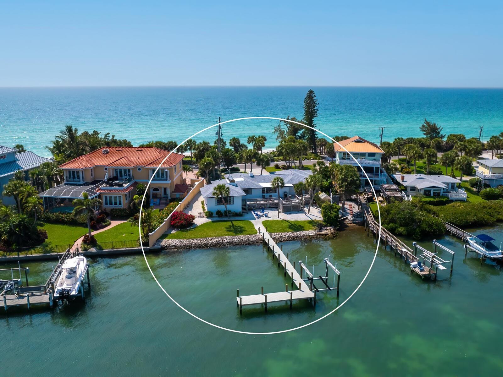 Build your dream home on this rare, half-acre gulf-to-bay property featuring approximately 98 feet of direct Gulf of America and Intracoastal Waterway frontage, complete with your private beach. A charming beach cottage offers a comfortable place to stay while you plan your custom estate. Existing dock with a 10,000-pound boat lift, installed in 2021, provides access to some of the deepest boating water in the area, ideal for all your water adventures. Bring your architect and builder to create a one-of-a-kind coastal retreat on one of Florida’s most exclusive barrier islands, where privacy, natural beauty and luxury living meet.