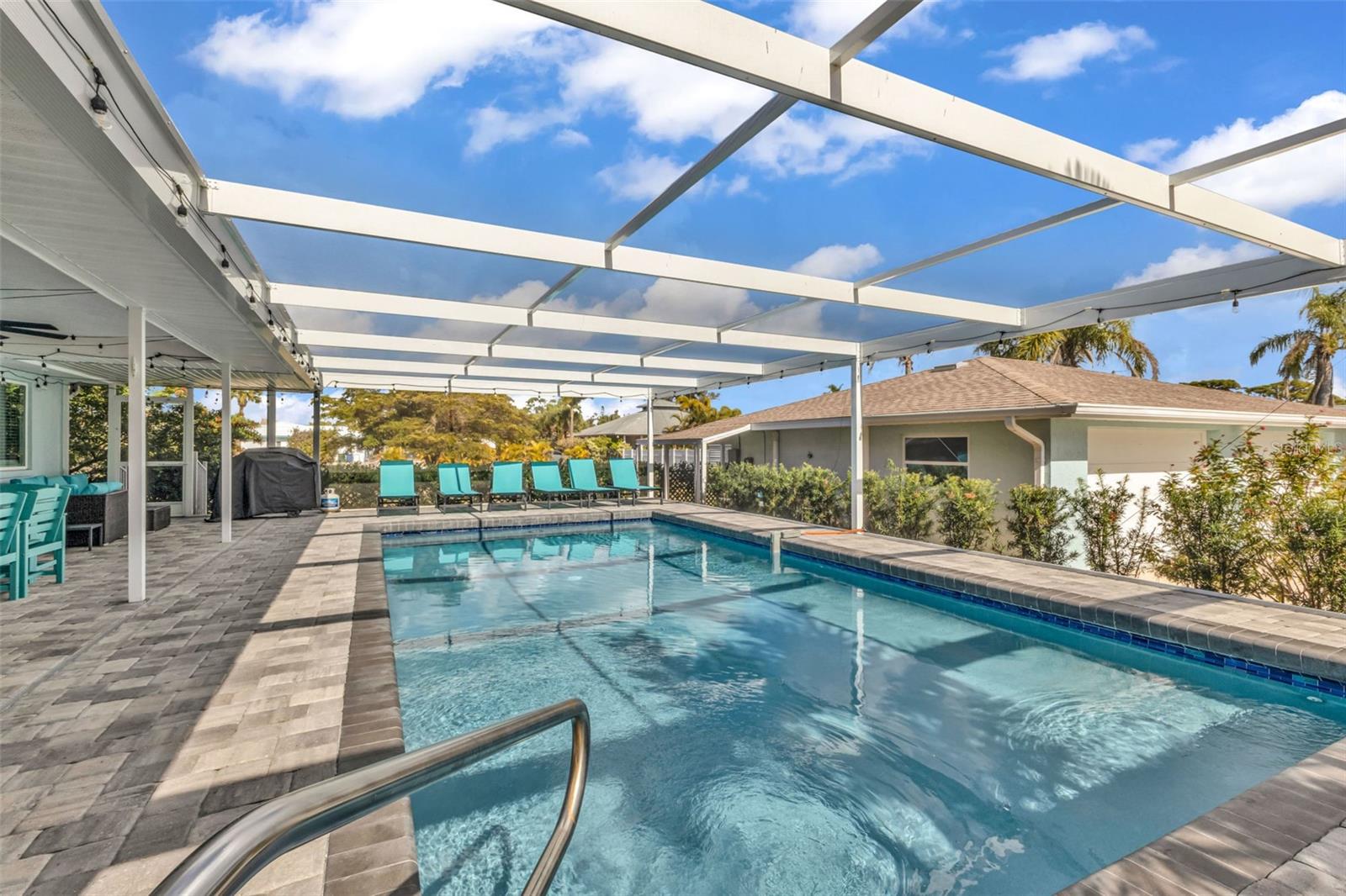 Gunite, Heated, In Ground, Lighting, Screen Enclosure, Solar Cover, Solar Power Pump