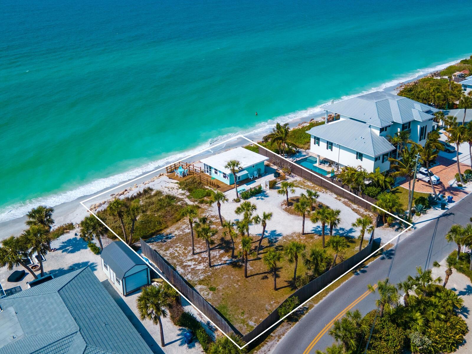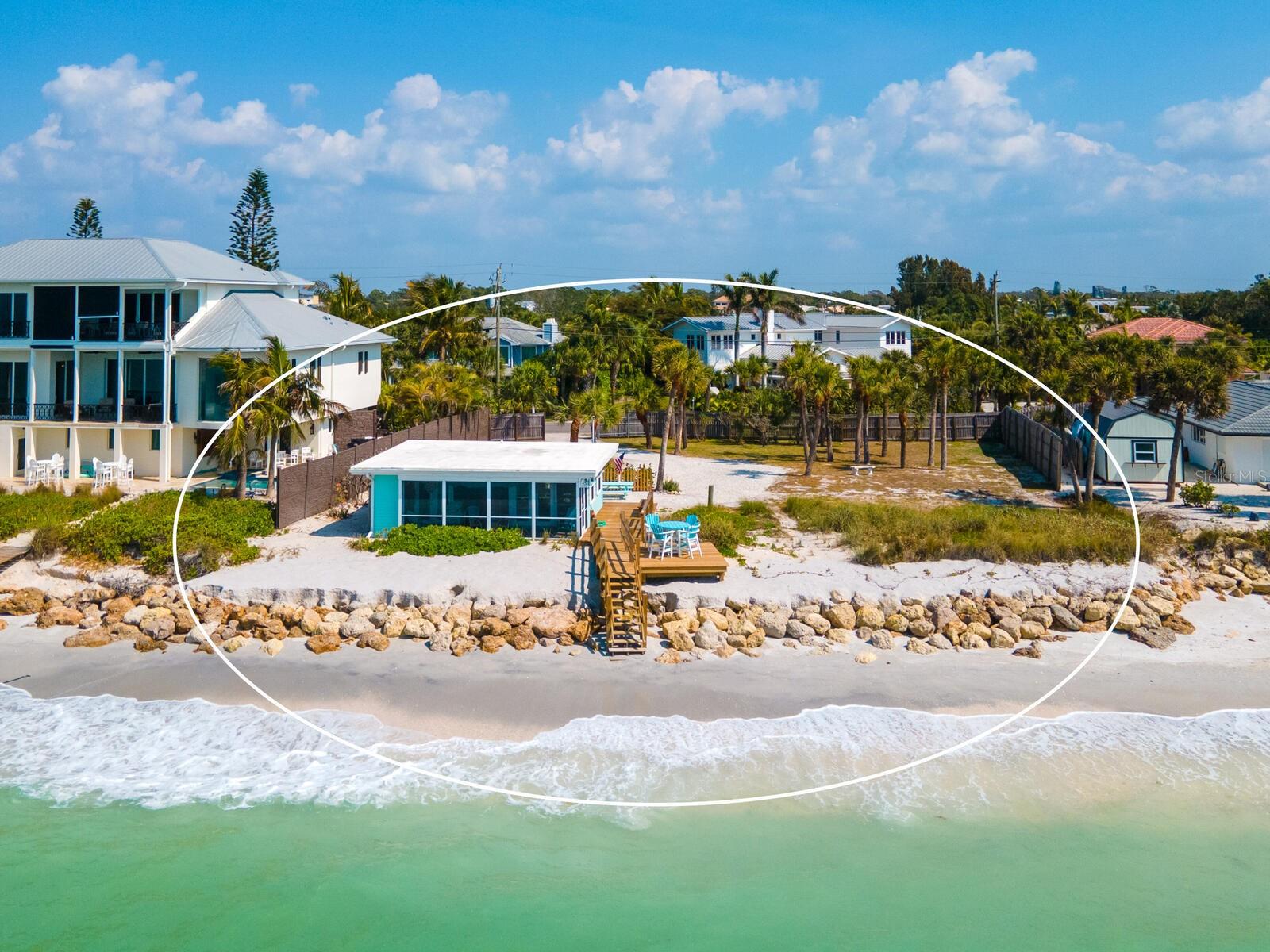 If you’ve ever dreamed of living on the beach, collecting shells on the shore and watching the sunset and stars come out every night, this may be your dream come true. Nearly half an acre and 108 feet of frontage on the Gulf of Mexico is prime for building your dream home. New home plans designed by renowned Naples architects, Stofft Cooney, and recently granted a Sarasota County variance, many of the challenges of building on the beach have already been overcome. Enjoy the current little one-bedroom cottage in the near term and realize an amazing new home on this beautiful site. Due to the building code on barrier islands, renovations to the existing structure are very limited and adding on to the current structure impossible. Perfectly situated between the cities of Sarasota and Venice, come see why those that are lucky enough to call Casey Key home know that this is a very special place. Close to restaurants, shopping, marinas, golf and tennis.