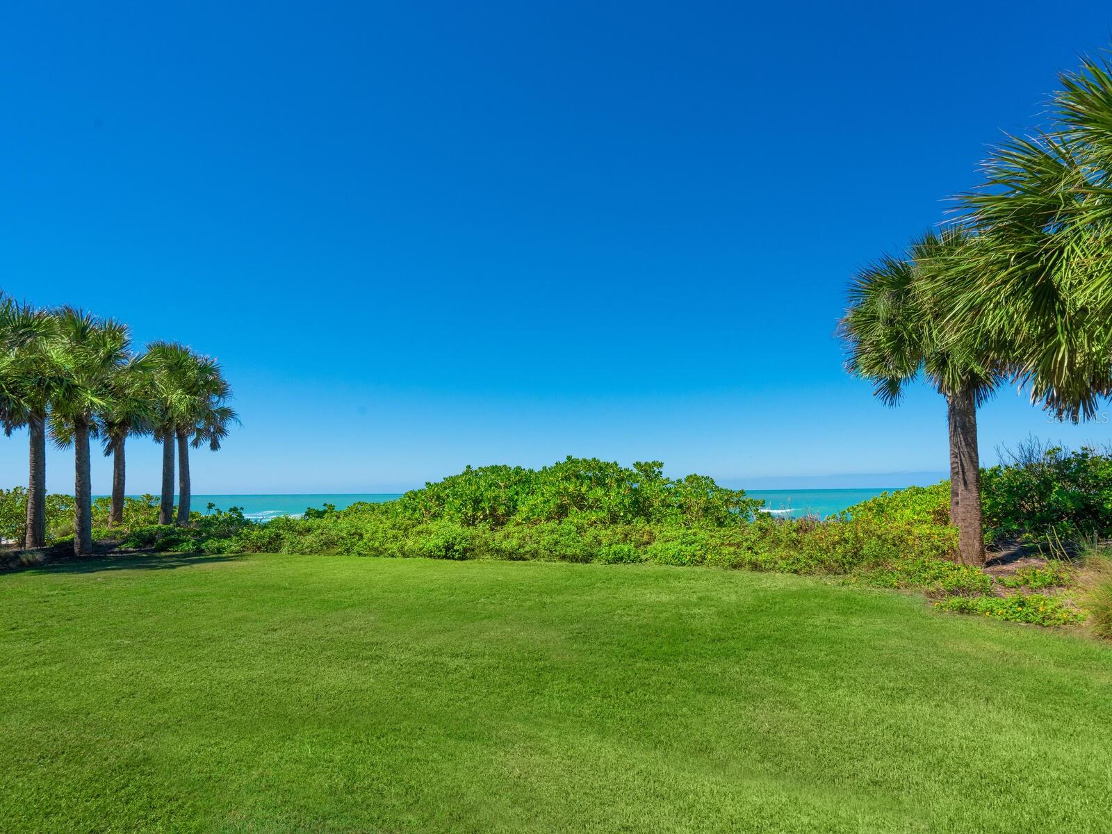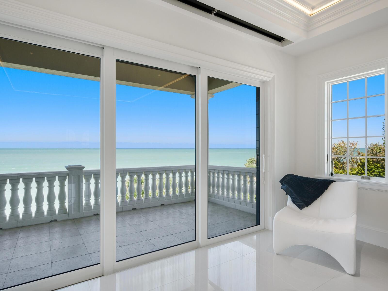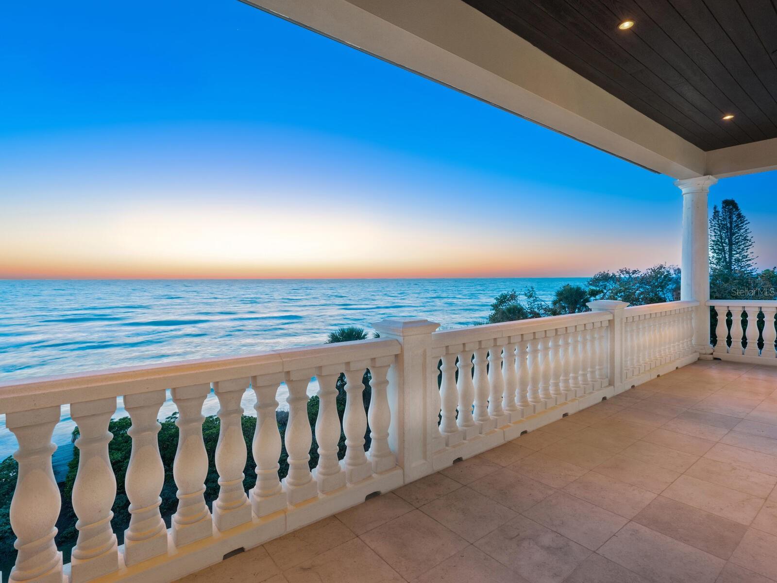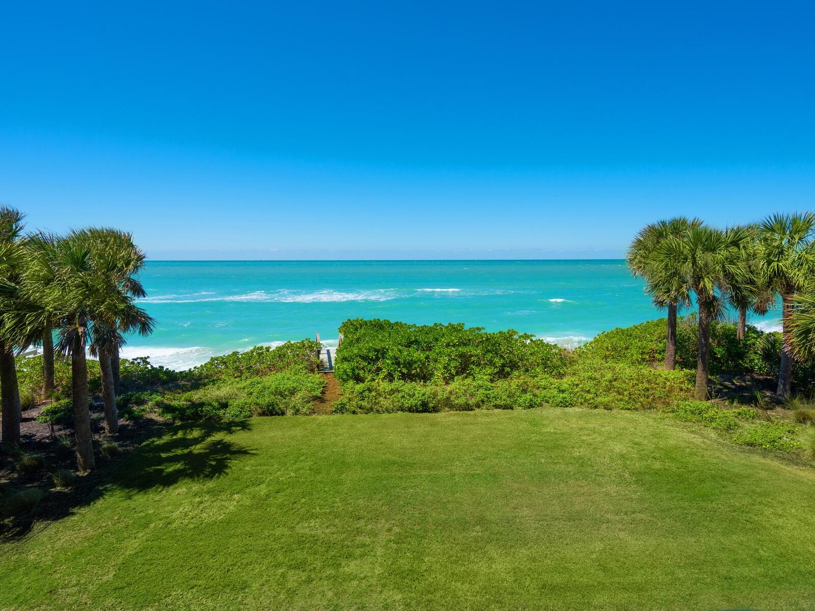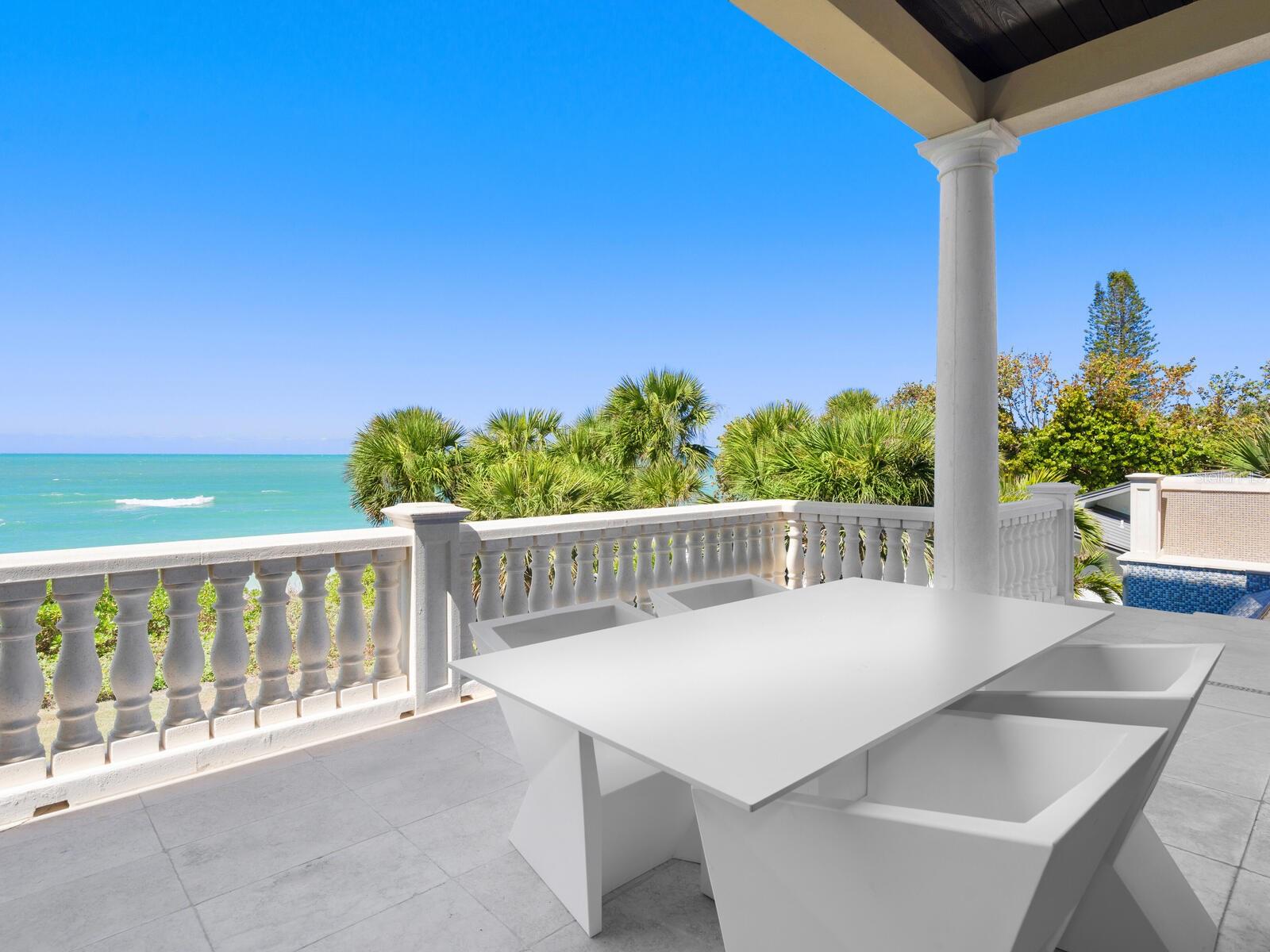 Refined elegance in a near-perfect location just steps from the white sandy beach, this 2018-built Casey Key gulf front estate has it all. Upon entering through the custom wood-arched double doors one may be taken aback by the juxtaposition of the traditional exterior and dramatic clean lined interior that gives way to breathtaking views of the gentle blue waters of the Gulf of Mexico. Towering ceilings and expansive walls of glass maximize the water vistas while the use of unique finishes and custom design elements create an impressive yet comfortable feeling throughout. Designed for entertaining, the home's main living areas are open to terracing outdoor spaces creating a seamless functional flow inside and out that accentuates the true island lifestyle. The gourmet kitchen is completely open to the adjacent dining area and great room and includes custom Italian Cucina cabinetry, Dekton counters, galley sink, a large rectangular island with counter height seating, and an appliance package featuring cabinet front Miele refrigerator, freezer, and dishwasher, two Bosch double wall ovens and Induction cooktop, and a Sharp microwave built into the island. The open infinity pool is just off the great room and is the perfect spot to relax after a day on the beach or to take in a stunning sunset. There is a pool bath accessible from the pool deck. The main living level also features a state-of-the-art media room with seating for seven, a guest suite, a powder room, and a butler’s pantry. The second living level boasts a spa-like owner’s retreat with a private terrace, a sitting area, a walk-through closet, dual vanities, a water closet, free-standing tub, and a frameless glass-enclosed shower with multiple shower heads. There are two additional guest suites and a large laundry room on this level as well. The lower level features a walkout to a private back yard and an enormous amount of storage space. A Creston home automation system, full house Generac generator, three-stop elevator, gas fireplace, motorized screens, motorized sliding glass door, hidden linear air conditioning vents, and two, two-car garages complete this incredible home.