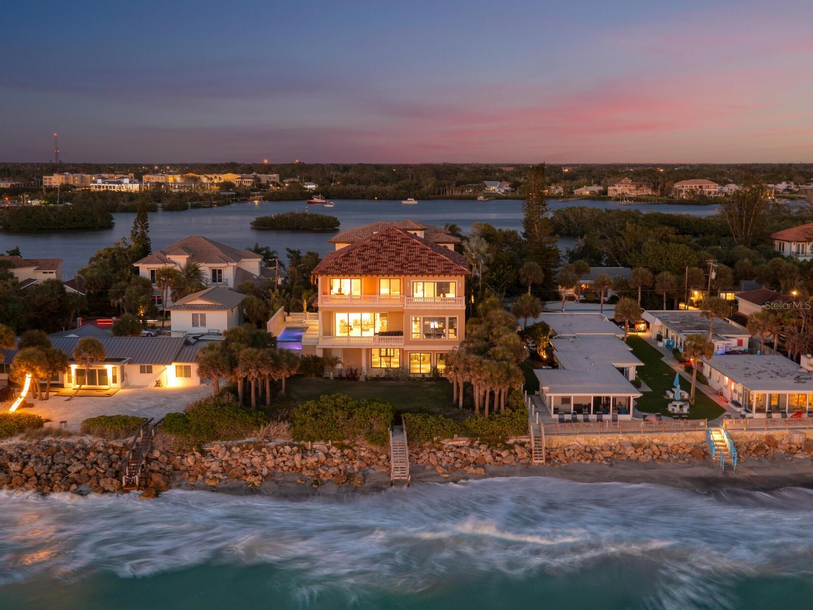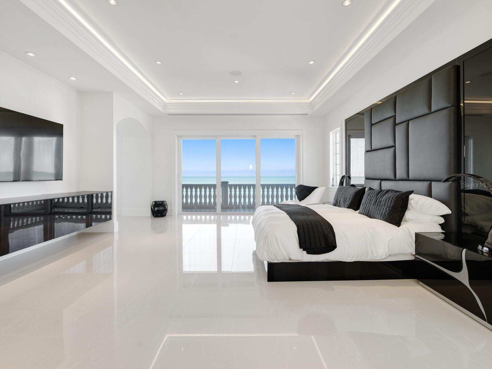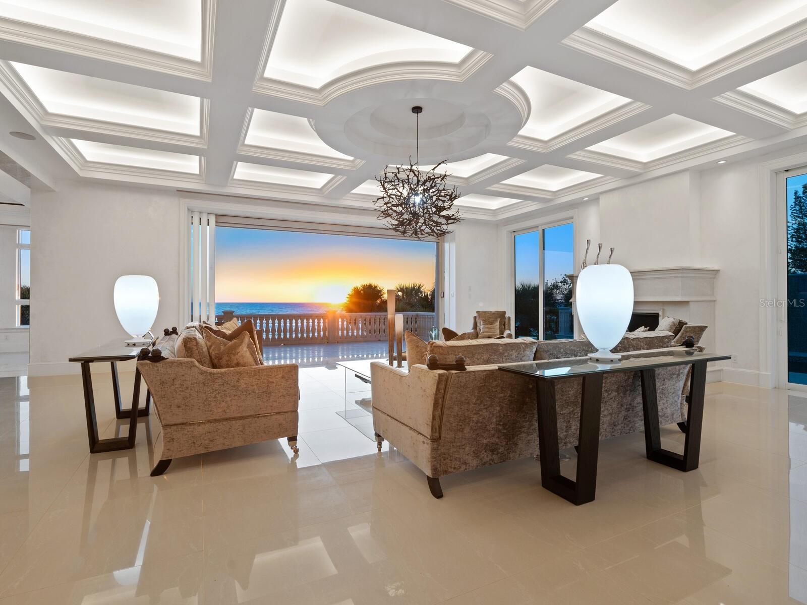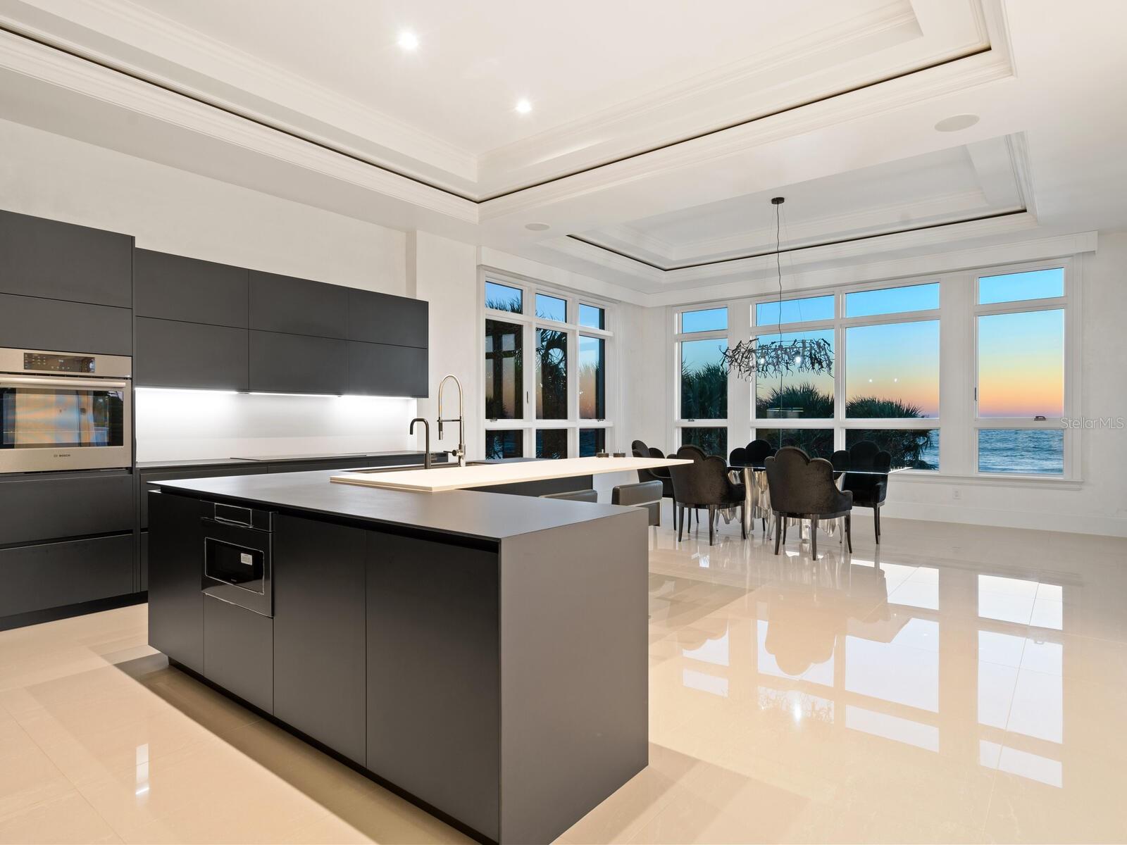 Refined elegance in a near-perfect location just steps from the white sandy beach, this 2018-built Casey Key gulf front estate has it all. Upon entering through the custom wood-arched double doors one may be taken aback by the juxtaposition of the traditional exterior and dramatic clean lined interior that gives way to breathtaking views of the gentle blue waters of the Gulf of Mexico. Towering ceilings and expansive walls of glass maximize the water vistas while the use of unique finishes and custom design elements create an impressive yet comfortable feeling throughout. Designed for entertaining, the home's main living areas are open to terracing outdoor spaces creating a seamless functional flow inside and out that accentuates the true island lifestyle. The gourmet kitchen is completely open to the adjacent dining area and great room and includes custom Italian Cucina cabinetry, Dekton counters, galley sink, a large rectangular island with counter height seating, and an appliance package featuring cabinet front Miele refrigerator, freezer, and dishwasher, two Bosch double wall ovens and Induction cooktop, and a Sharp microwave built into the island. The open infinity pool is just off the great room and is the perfect spot to relax after a day on the beach or to take in a stunning sunset. There is a pool bath accessible from the pool deck. The main living level also features a state-of-the-art media room with seating for seven, a guest suite, a powder room, and a butler’s pantry. The second living level boasts a spa-like owner’s retreat with a private terrace, a sitting area, a walk-through closet, dual vanities, a water closet, free-standing tub, and a frameless glass-enclosed shower with multiple shower heads. There are two additional guest suites and a large laundry room on this level as well. The lower level features a walkout to a private back yard and an enormous amount of storage space. A Creston home automation system, full house Generac generator, three-stop elevator, gas fireplace, motorized screens, motorized sliding glass door, hidden linear air conditioning vents, and two, two-car garages complete this incredible home.