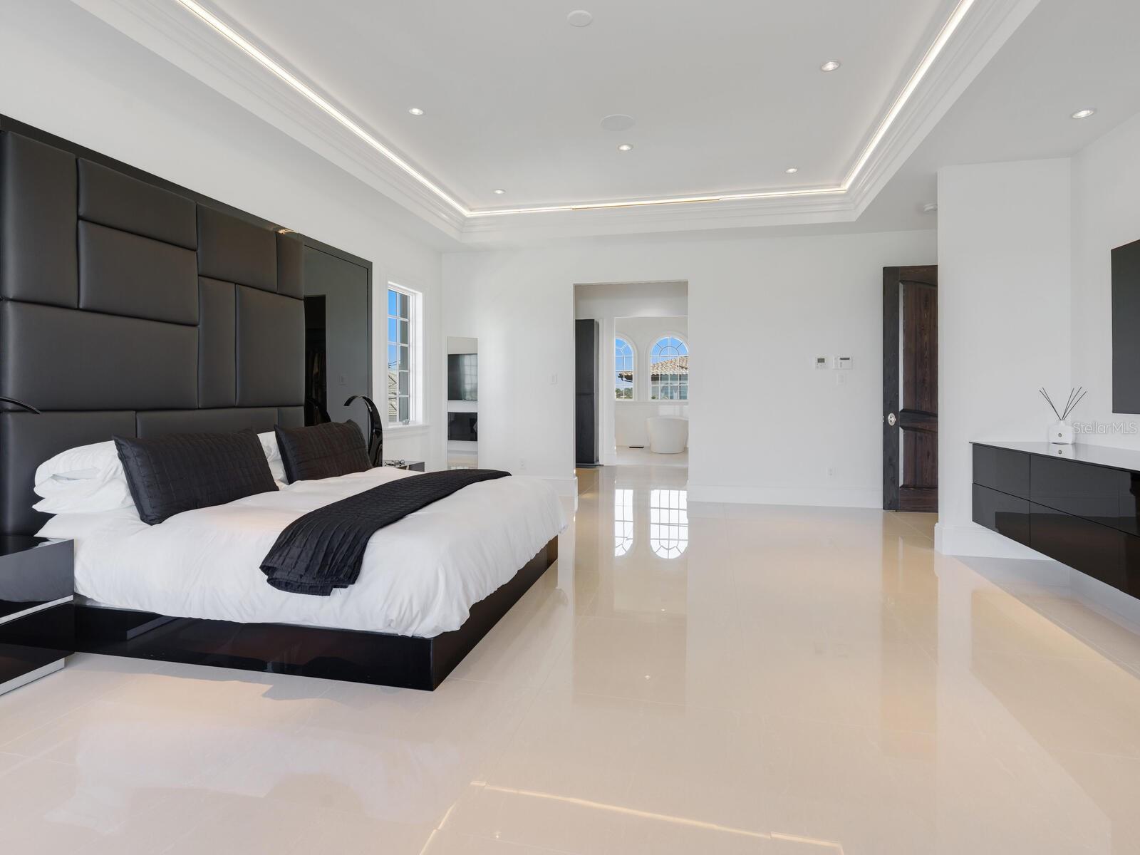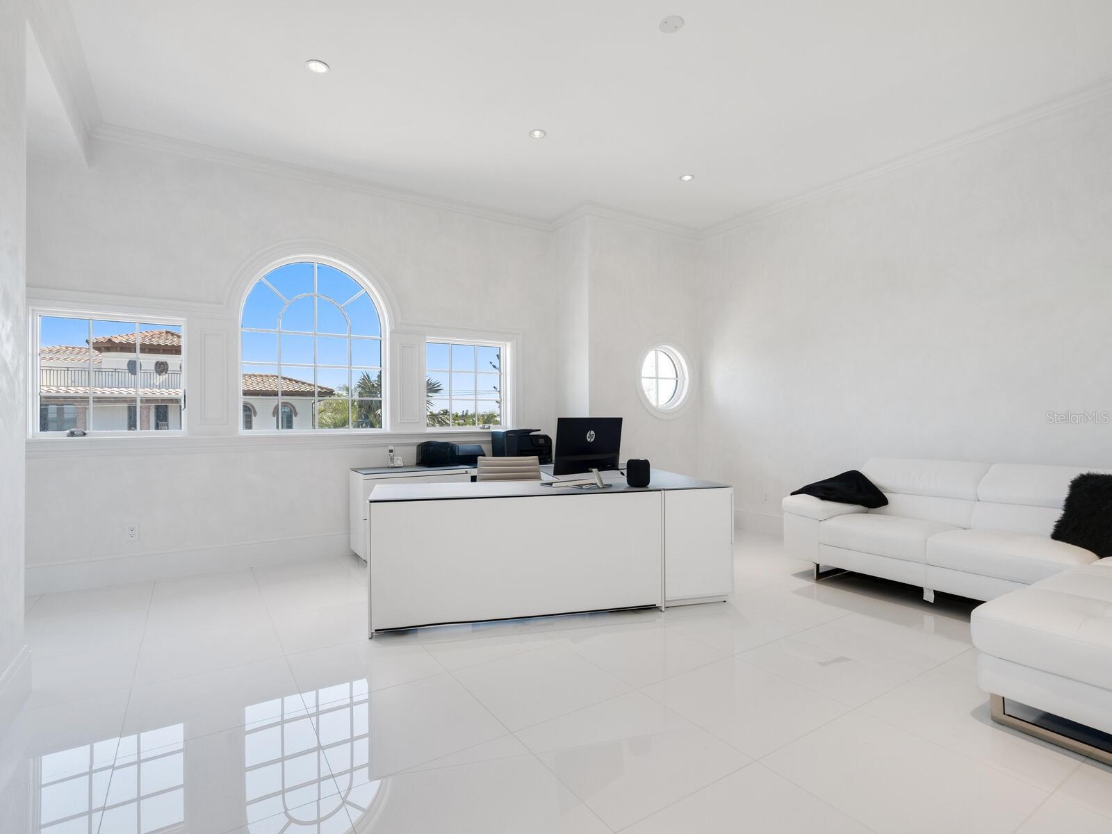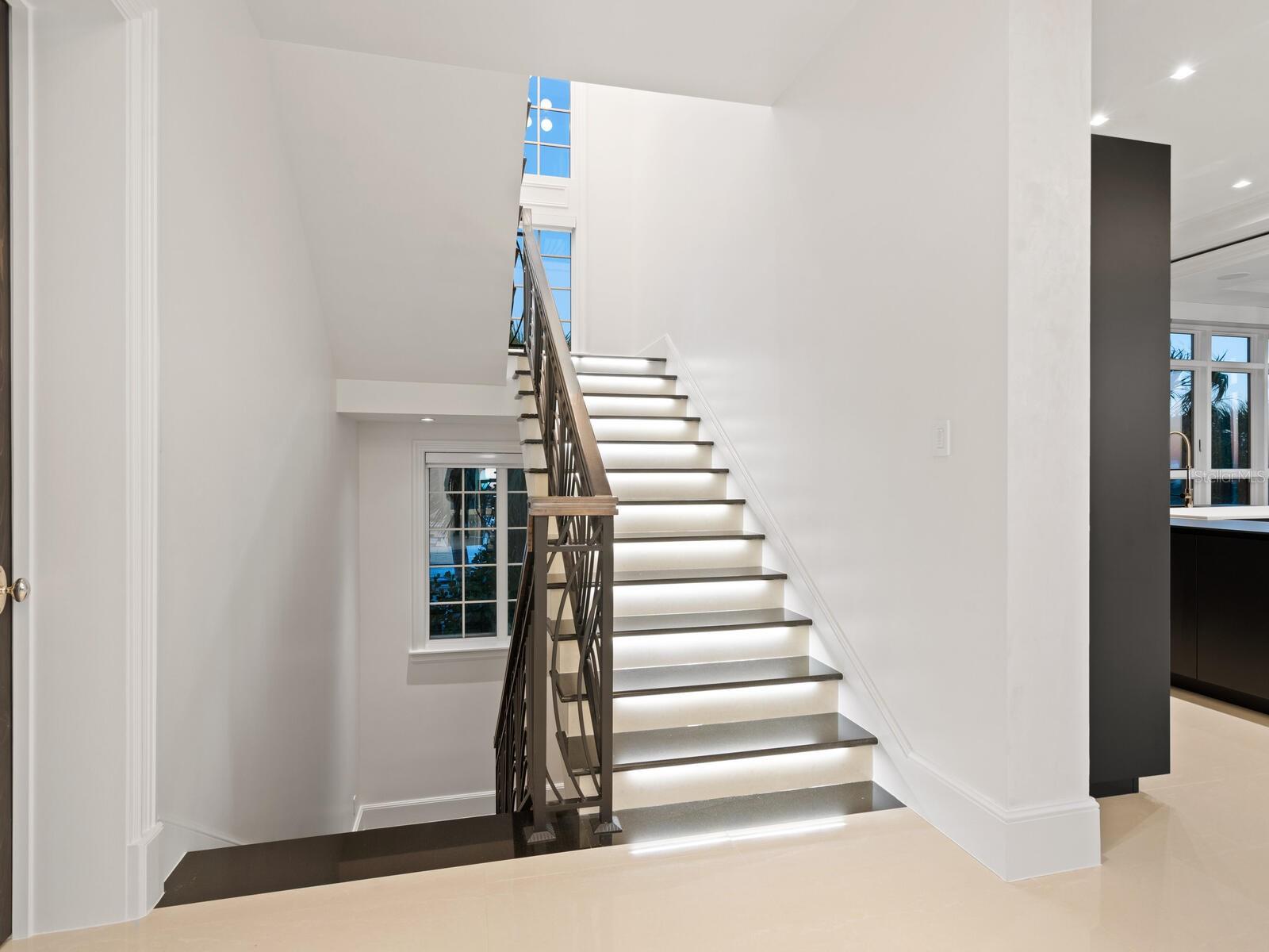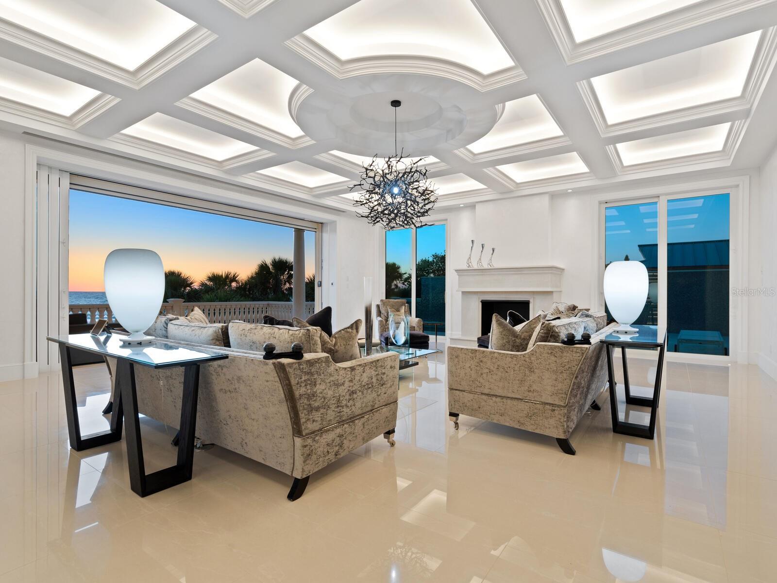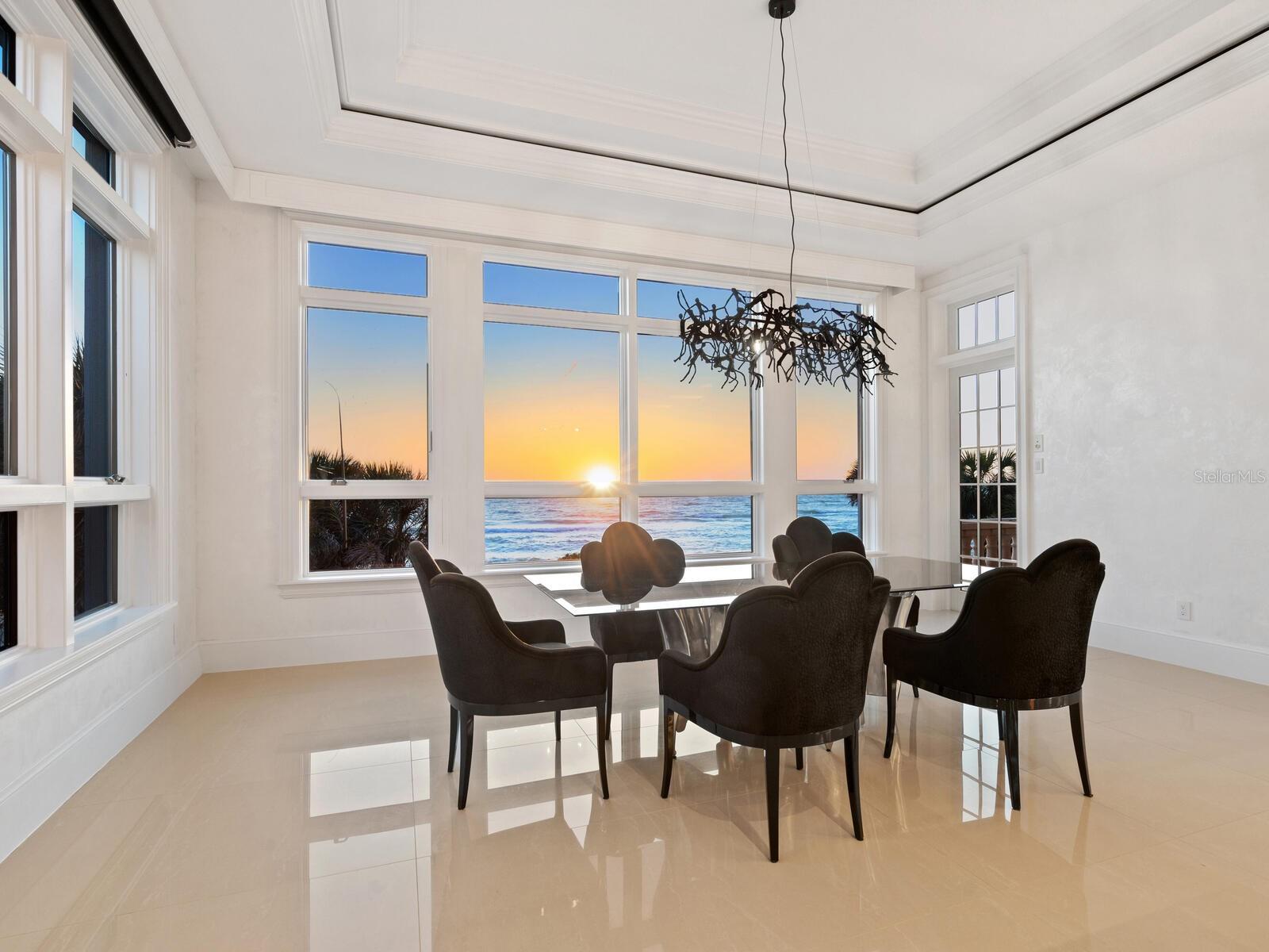 Refined elegance in a near-perfect location just steps from the white sandy beach, this 2018-built Casey Key gulf front estate has it all. Upon entering through the custom wood-arched double doors one may be taken aback by the juxtaposition of the traditional exterior and dramatic clean lined interior that gives way to breathtaking views of the gentle blue waters of the Gulf of Mexico. Towering ceilings and expansive walls of glass maximize the water vistas while the use of unique finishes and custom design elements create an impressive yet comfortable feeling throughout. Designed for entertaining, the home's main living areas are open to terracing outdoor spaces creating a seamless functional flow inside and out that accentuates the true island lifestyle. The gourmet kitchen is completely open to the adjacent dining area and great room and includes custom Italian Cucina cabinetry, Dekton counters, galley sink, a large rectangular island with counter height seating, and an appliance package featuring cabinet front Miele refrigerator, freezer, and dishwasher, two Bosch double wall ovens and Induction cooktop, and a Sharp microwave built into the island. The open infinity pool is just off the great room and is the perfect spot to relax after a day on the beach or to take in a stunning sunset. There is a pool bath accessible from the pool deck. The main living level also features a state-of-the-art media room with seating for seven, a guest suite, a powder room, and a butler’s pantry. The second living level boasts a spa-like owner’s retreat with a private terrace, a sitting area, a walk-through closet, dual vanities, a water closet, free-standing tub, and a frameless glass-enclosed shower with multiple shower heads. There are two additional guest suites and a large laundry room on this level as well. The lower level features a walkout to a private back yard and an enormous amount of storage space. A Creston home automation system, full house Generac generator, three-stop elevator, gas fireplace, motorized screens, motorized sliding glass door, hidden linear air conditioning vents, and two, two-car garages complete this incredible home.