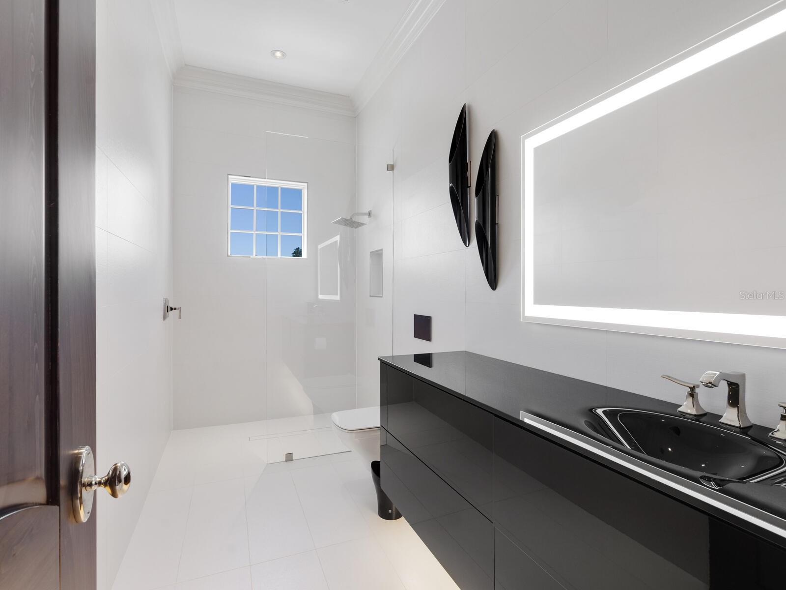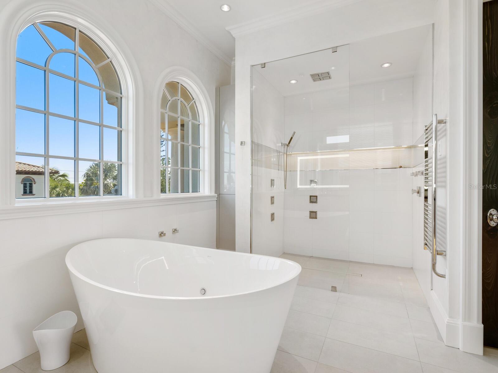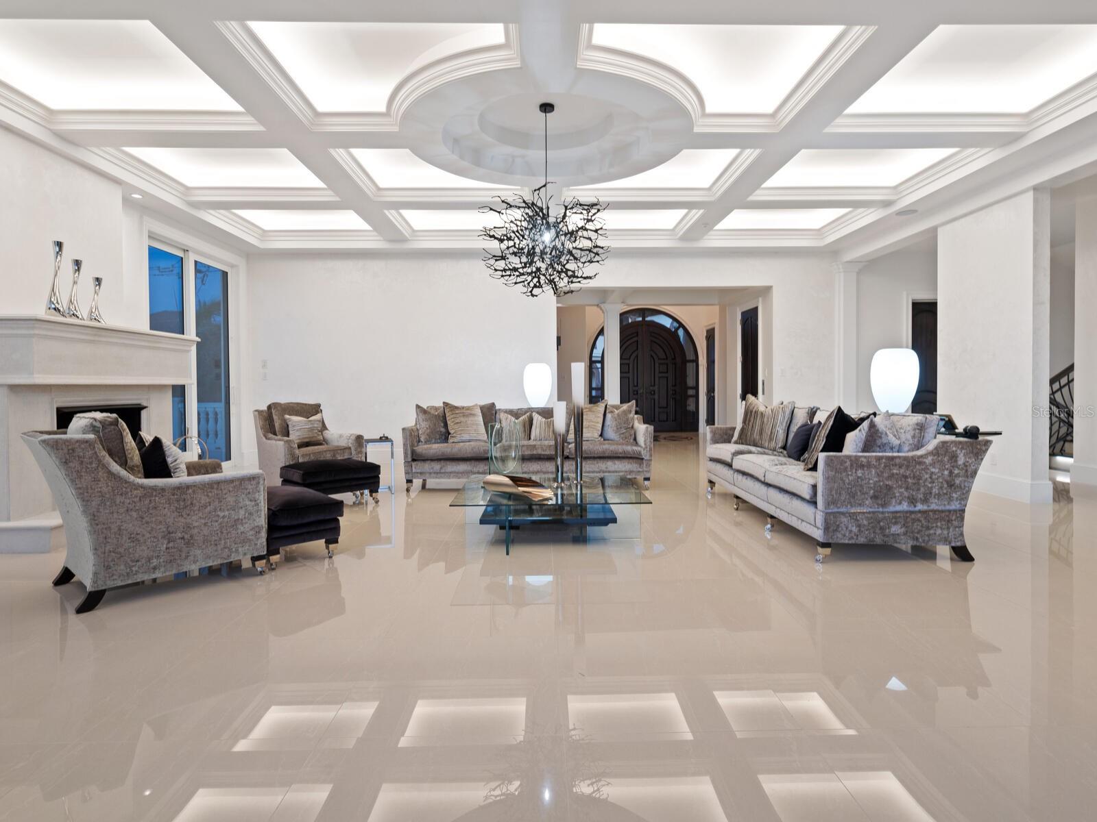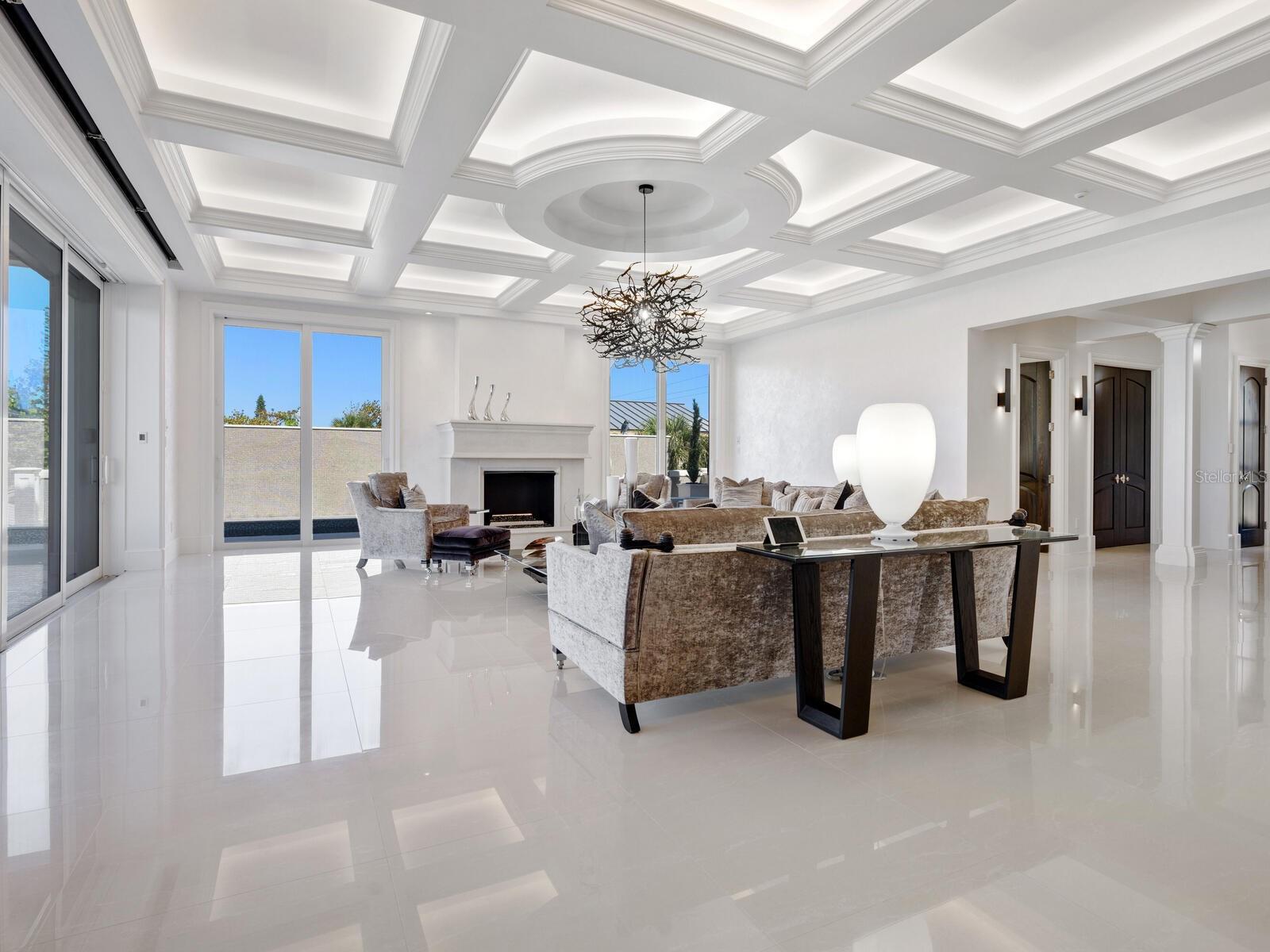 Refined elegance in a near-perfect location just steps from the white sandy beach, this 2018-built Casey Key gulf front estate has it all. Upon entering through the custom wood-arched double doors one may be taken aback by the juxtaposition of the traditional exterior and dramatic clean lined interior that gives way to breathtaking views of the gentle blue waters of the Gulf of Mexico. Towering ceilings and expansive walls of glass maximize the water vistas while the use of unique finishes and custom design elements create an impressive yet comfortable feeling throughout. Designed for entertaining, the home's main living areas are open to terracing outdoor spaces creating a seamless functional flow inside and out that accentuates the true island lifestyle. The gourmet kitchen is completely open to the adjacent dining area and great room and includes custom Italian Cucina cabinetry, Dekton counters, galley sink, a large rectangular island with counter height seating, and an appliance package featuring cabinet front Miele refrigerator, freezer, and dishwasher, two Bosch double wall ovens and Induction cooktop, and a Sharp microwave built into the island. The open infinity pool is just off the great room and is the perfect spot to relax after a day on the beach or to take in a stunning sunset. There is a pool bath accessible from the pool deck. The main living level also features a state-of-the-art media room with seating for seven, a guest suite, a powder room, and a butler’s pantry. The second living level boasts a spa-like owner’s retreat with a private terrace, a sitting area, a walk-through closet, dual vanities, a water closet, free-standing tub, and a frameless glass-enclosed shower with multiple shower heads. There are two additional guest suites and a large laundry room on this level as well. The lower level features a walkout to a private back yard and an enormous amount of storage space. A Creston home automation system, full house Generac generator, three-stop elevator, gas fireplace, motorized screens, motorized sliding glass door, hidden linear air conditioning vents, and two, two-car garages complete this incredible home.