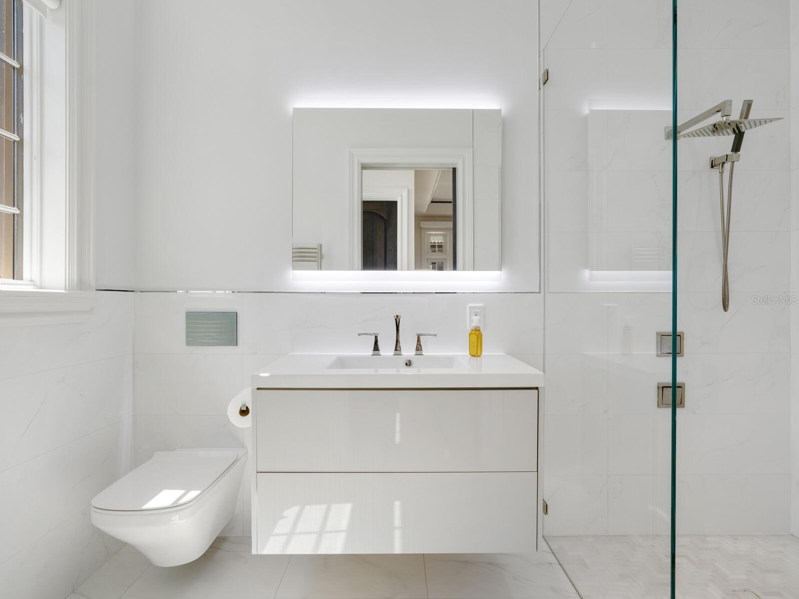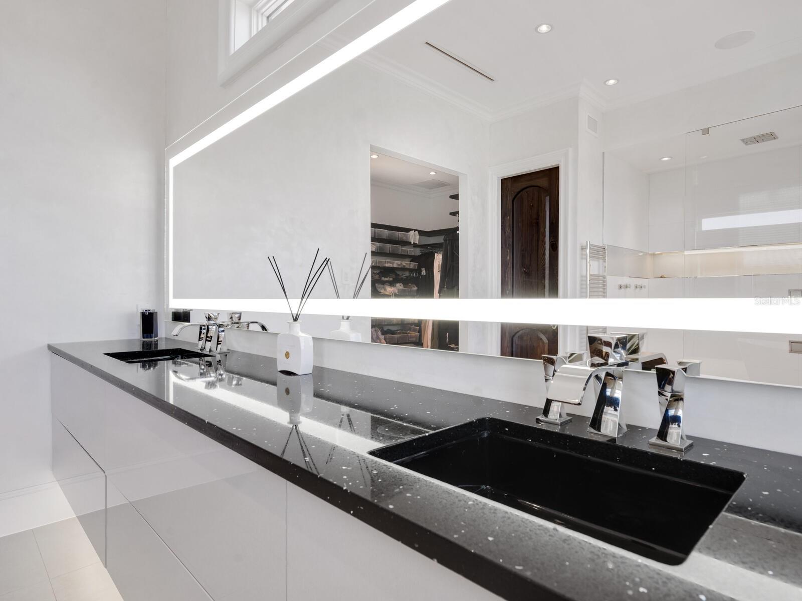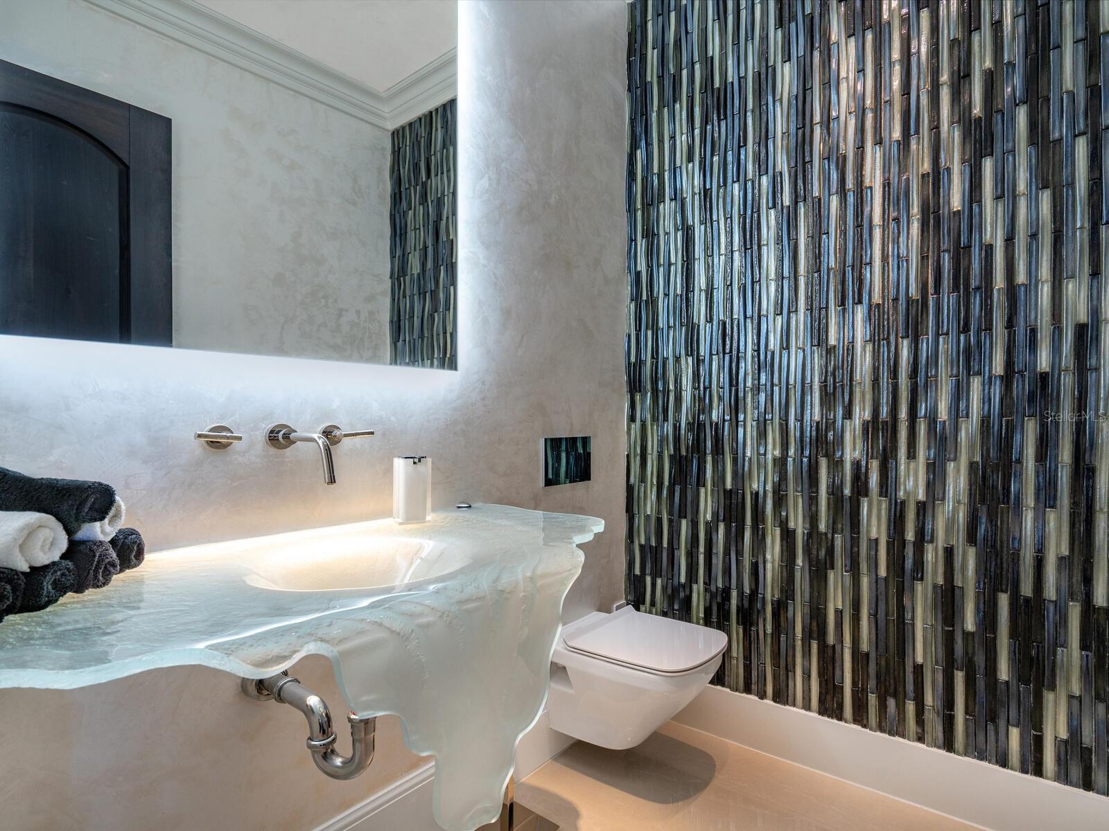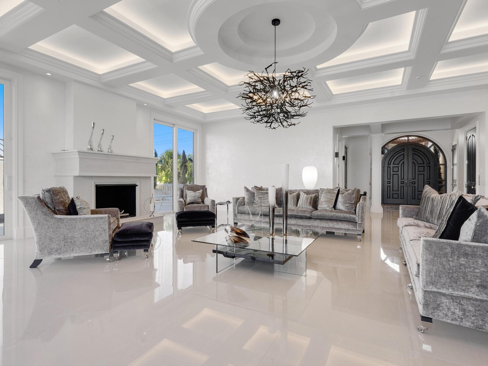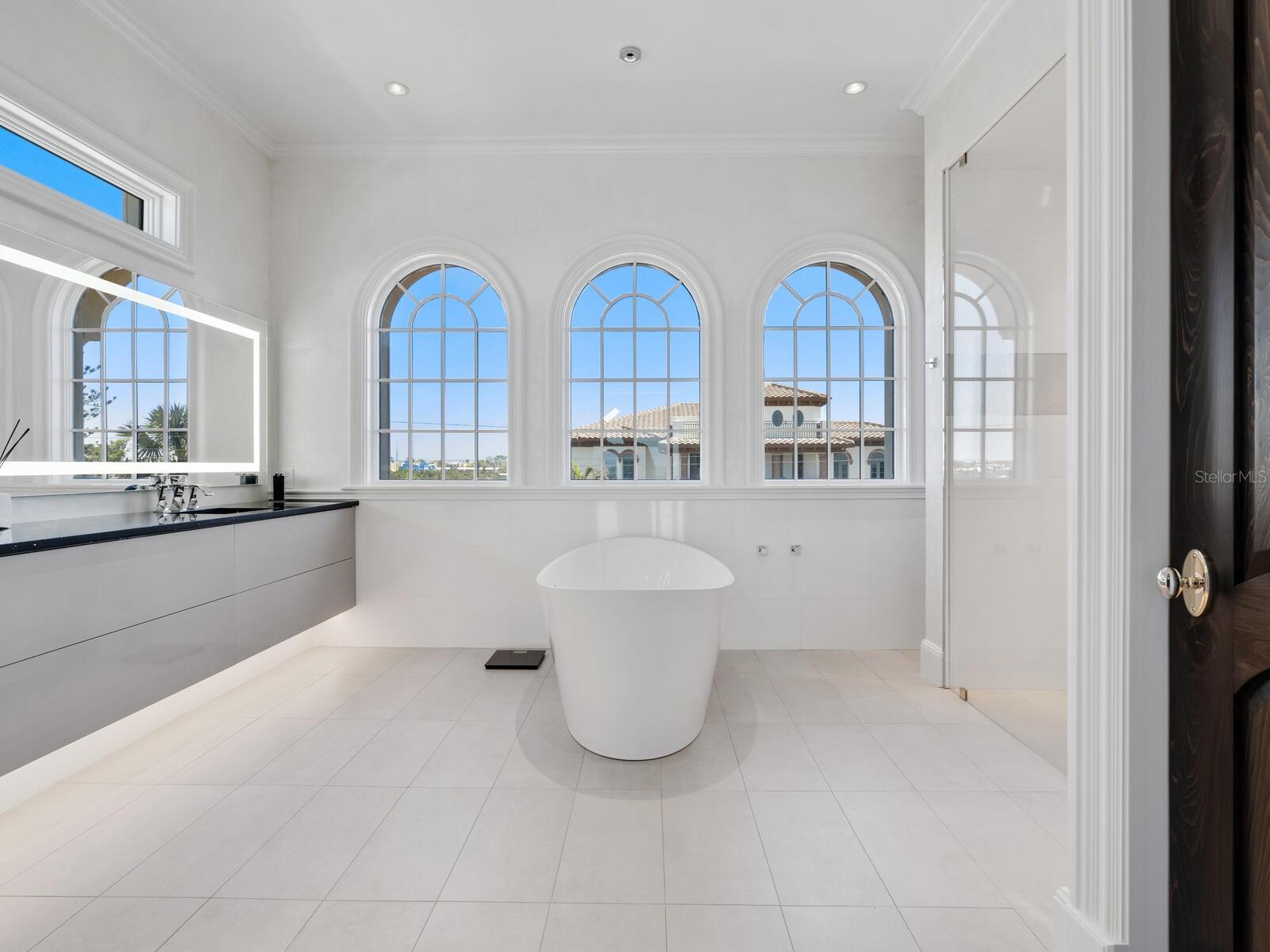 Refined elegance in a near-perfect location just steps from the white sandy beach, this 2018-built Casey Key gulf front estate has it all. Upon entering through the custom wood-arched double doors one may be taken aback by the juxtaposition of the traditional exterior and dramatic clean lined interior that gives way to breathtaking views of the gentle blue waters of the Gulf of Mexico. Towering ceilings and expansive walls of glass maximize the water vistas while the use of unique finishes and custom design elements create an impressive yet comfortable feeling throughout. Designed for entertaining, the home's main living areas are open to terracing outdoor spaces creating a seamless functional flow inside and out that accentuates the true island lifestyle. The gourmet kitchen is completely open to the adjacent dining area and great room and includes custom Italian Cucina cabinetry, Dekton counters, galley sink, a large rectangular island with counter height seating, and an appliance package featuring cabinet front Miele refrigerator, freezer, and dishwasher, two Bosch double wall ovens and Induction cooktop, and a Sharp microwave built into the island. The open infinity pool is just off the great room and is the perfect spot to relax after a day on the beach or to take in a stunning sunset. There is a pool bath accessible from the pool deck. The main living level also features a state-of-the-art media room with seating for seven, a guest suite, a powder room, and a butler’s pantry. The second living level boasts a spa-like owner’s retreat with a private terrace, a sitting area, a walk-through closet, dual vanities, a water closet, free-standing tub, and a frameless glass-enclosed shower with multiple shower heads. There are two additional guest suites and a large laundry room on this level as well. The lower level features a walkout to a private back yard and an enormous amount of storage space. A Creston home automation system, full house Generac generator, three-stop elevator, gas fireplace, motorized screens, motorized sliding glass door, hidden linear air conditioning vents, and two, two-car garages complete this incredible home.